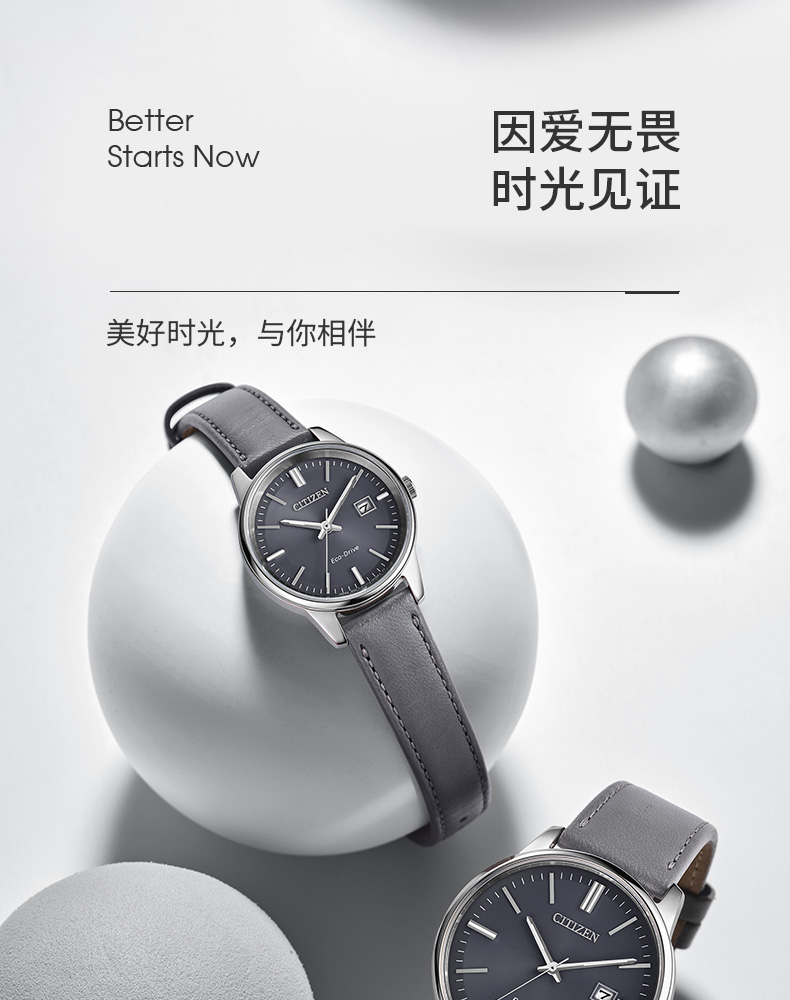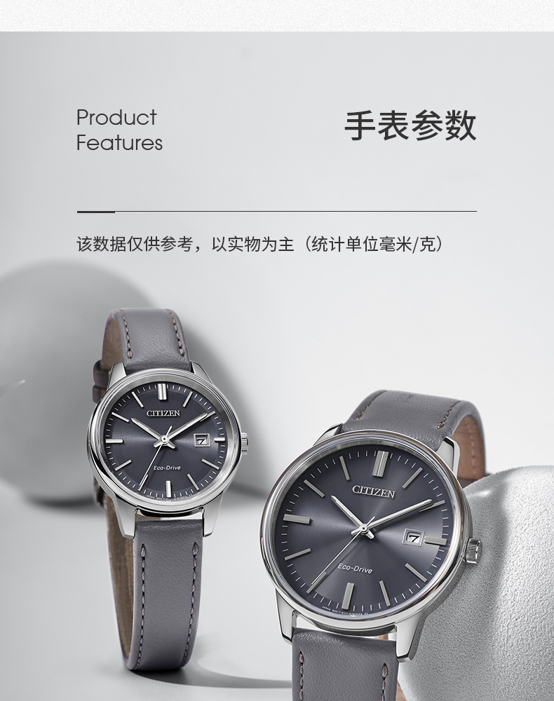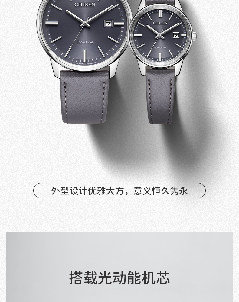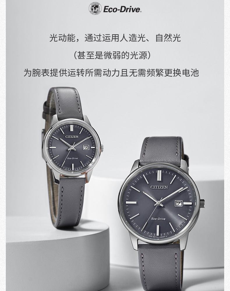 西铁城日本官方正品时尚简约表盘皮带光动能情侣女士手表EW2660-14X