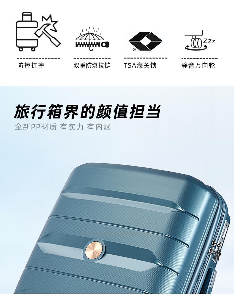 摔不烂行李箱全新PP拉杆箱行李箱 大容量拉链箱20寸登记密码箱