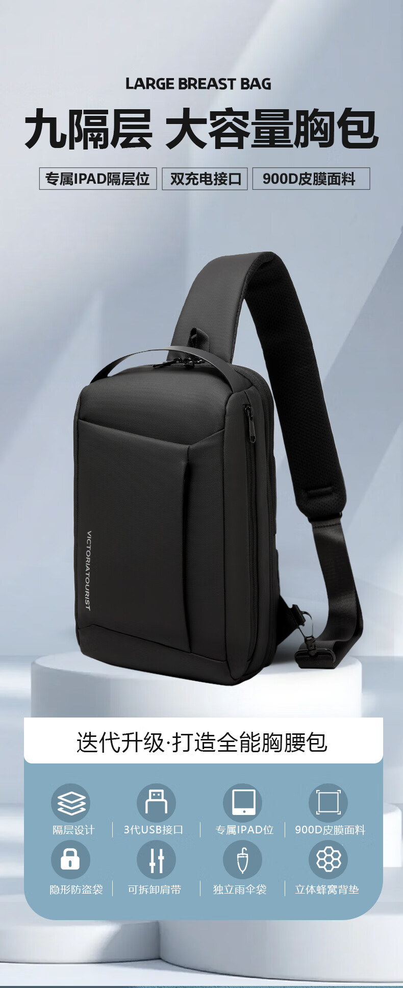 维多利亚旅行者潮流骑行斜挎包胸包5085