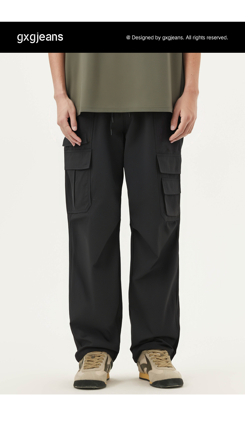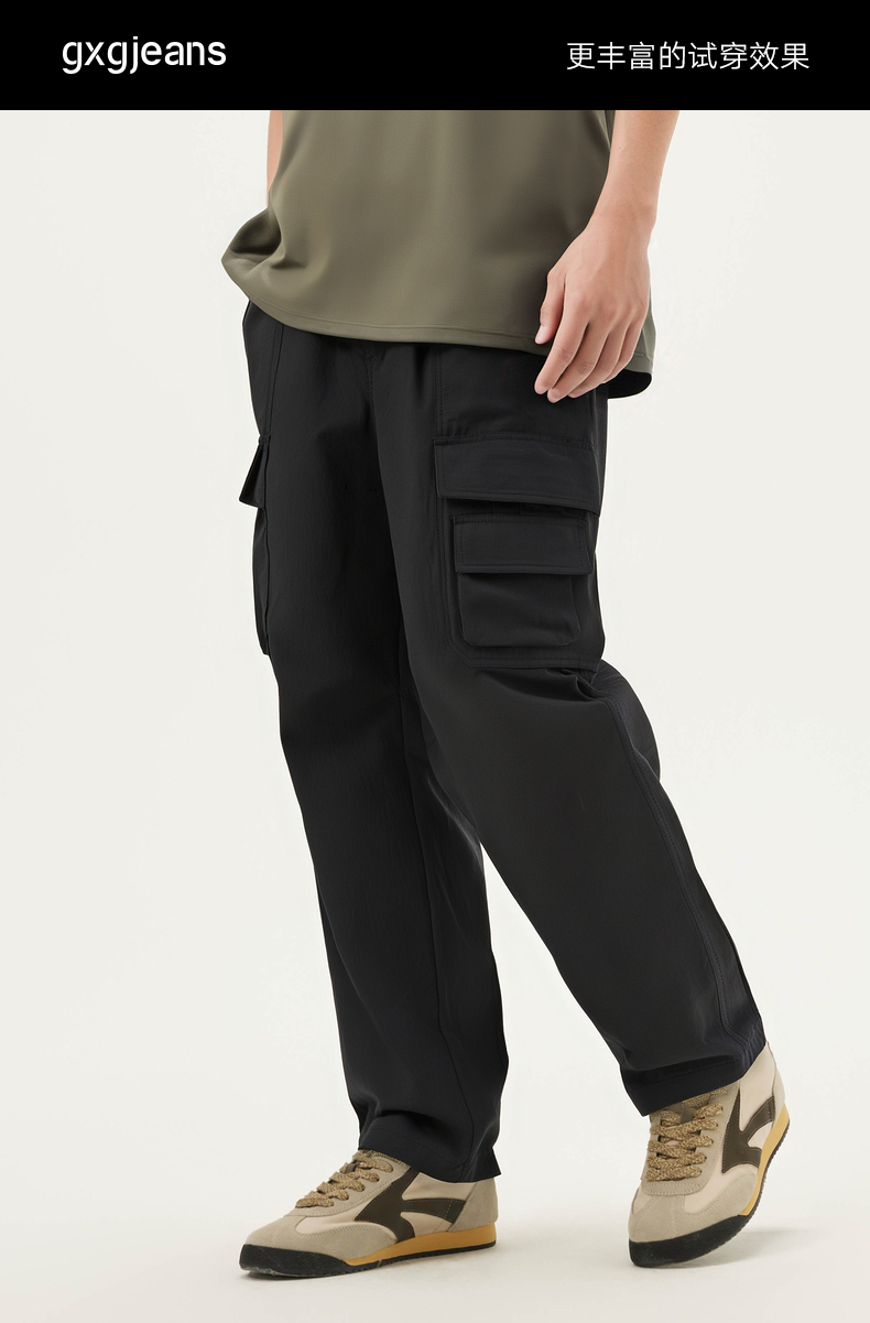 gxg.jeans男装 黑色口袋设计休闲美式工装裤长裤男 25年春热卖