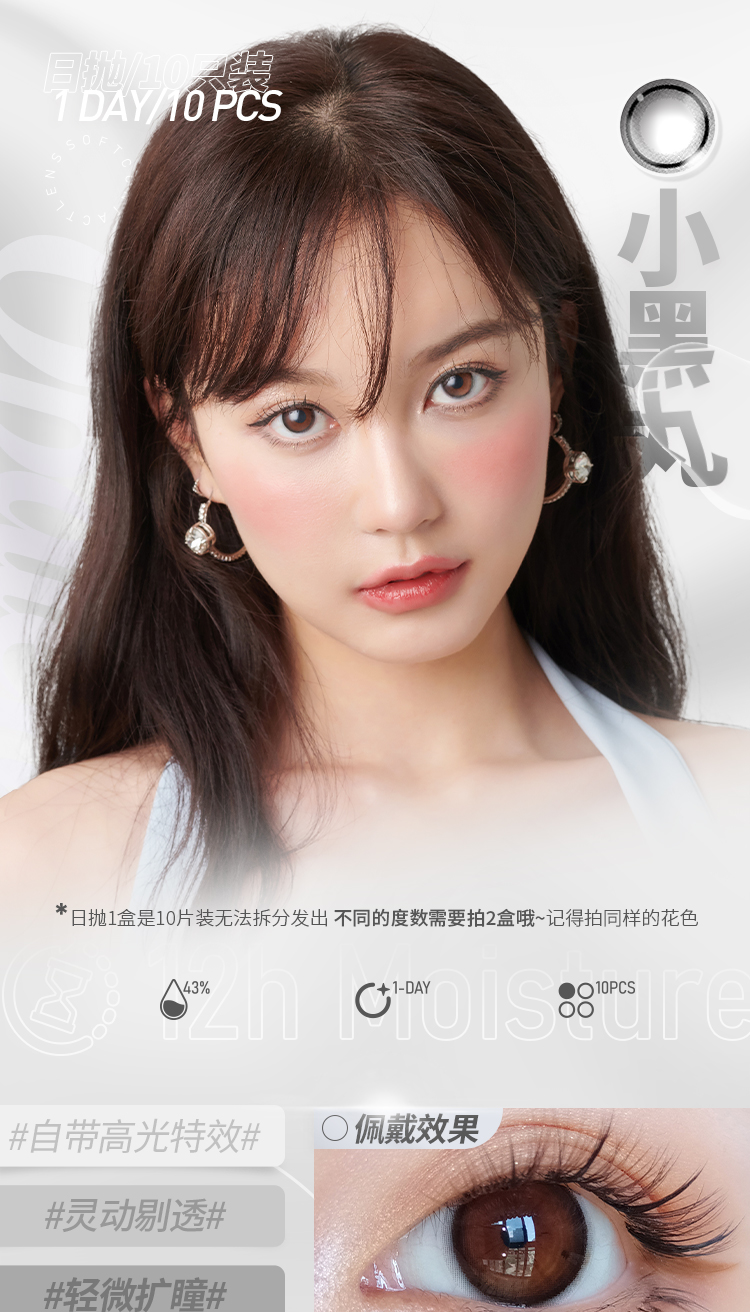 Obalens小黑丸百搭自然美瞳日抛网红款大直径14.2mm非离子隐形近视眼镜水润无感10片装