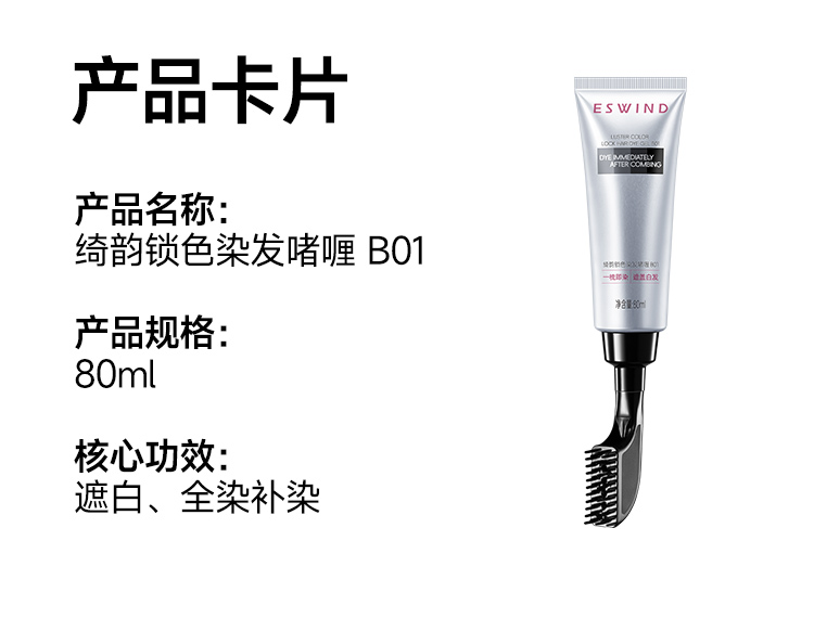 Eswind伊风 黑色梳染啫喱80ml 遮盖白发神器 敏感头皮适用 72小时发货