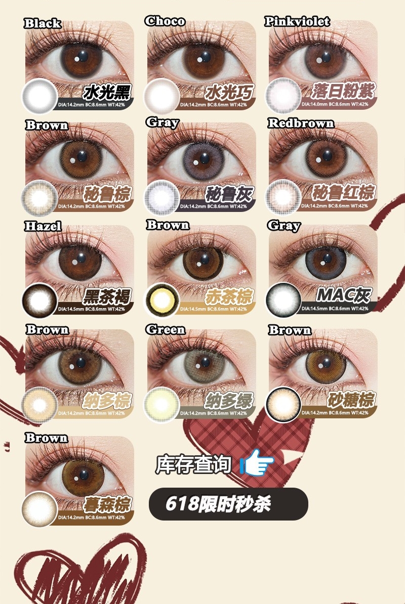 镜片材质: 硅水凝胶年抛