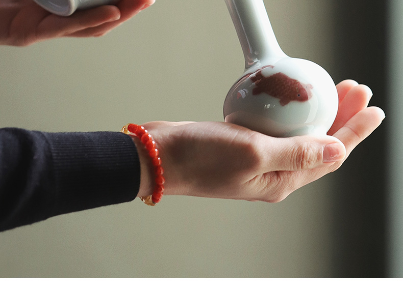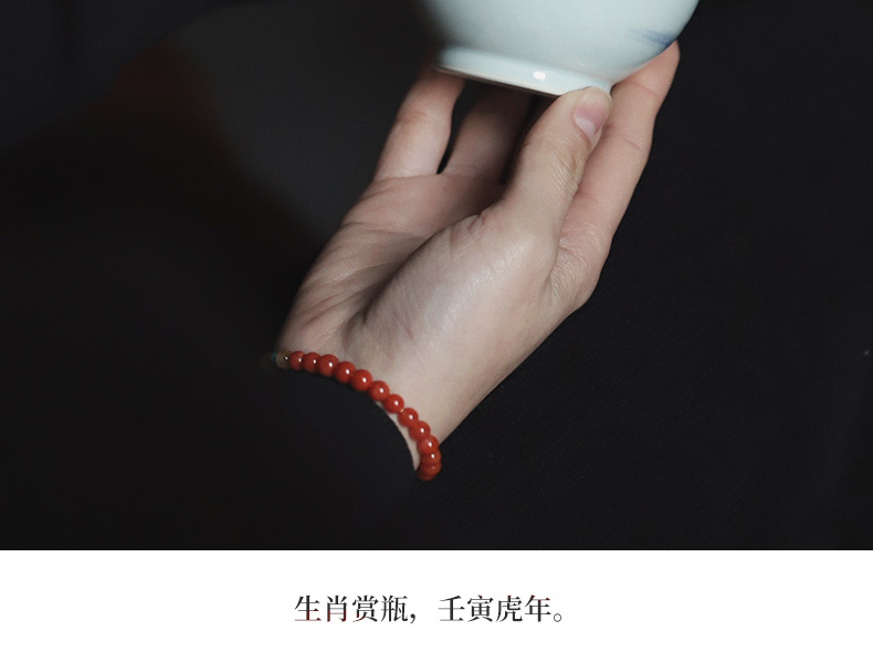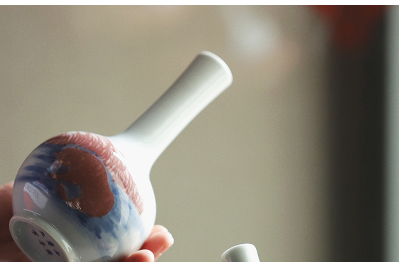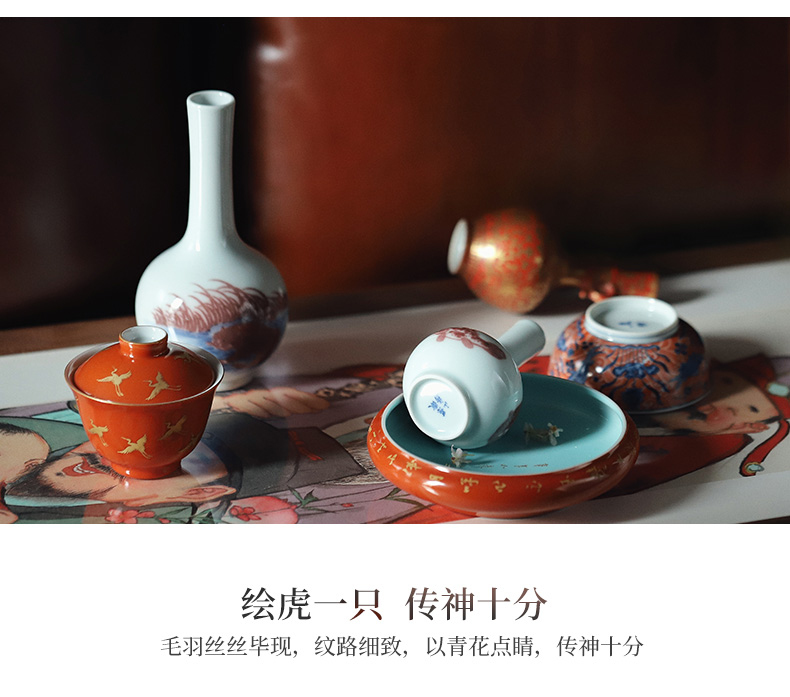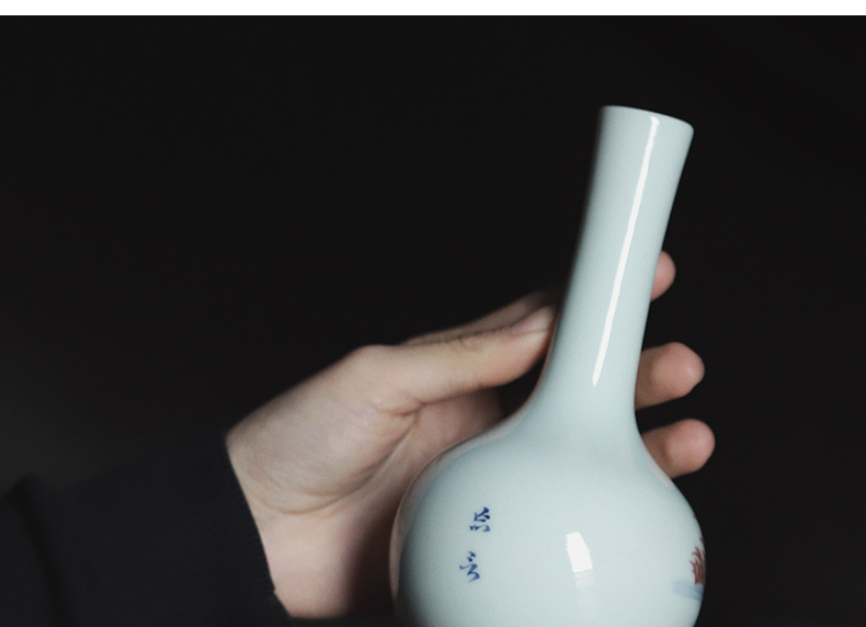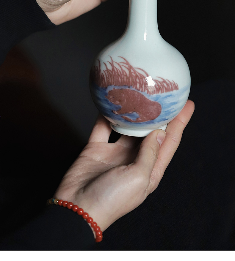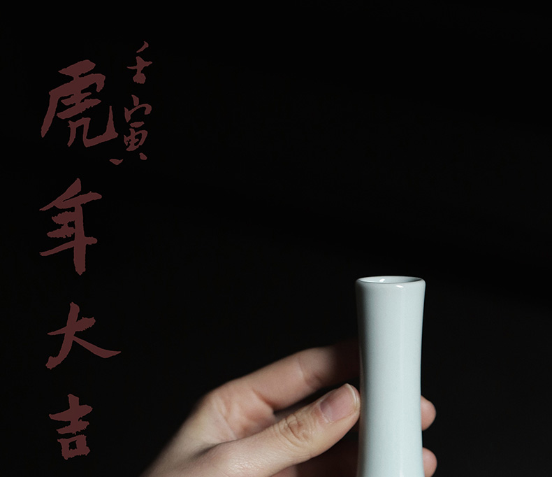 景德镇忘言造物新年手绘青花釉里红壬寅虎年大吉小花瓶赏瓶摆件 口径2.5cm 高16.3cm 腹径8.5cm