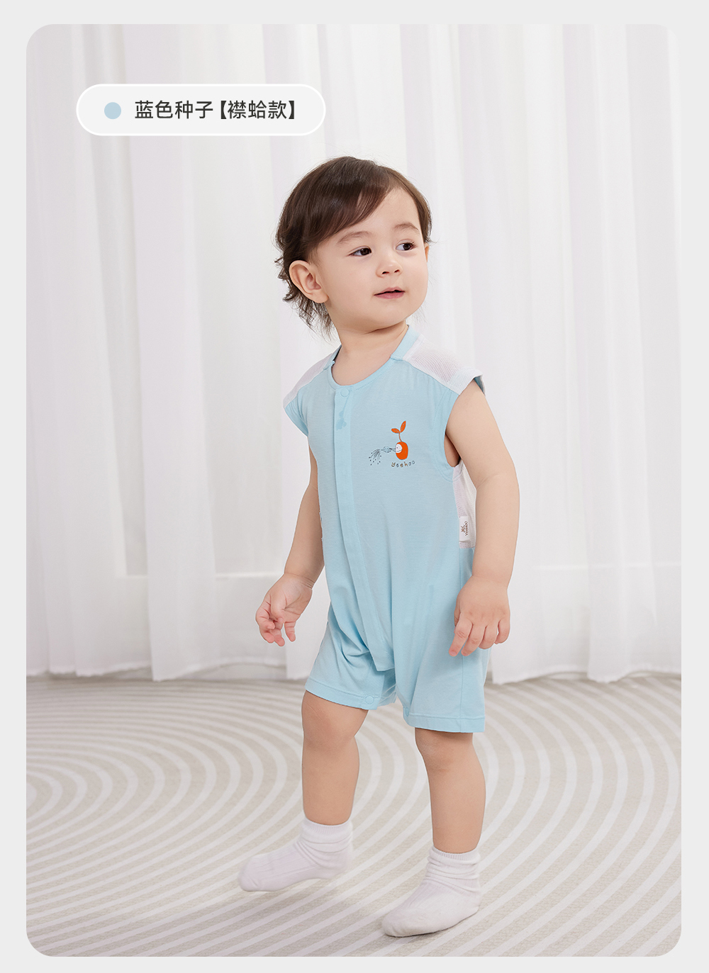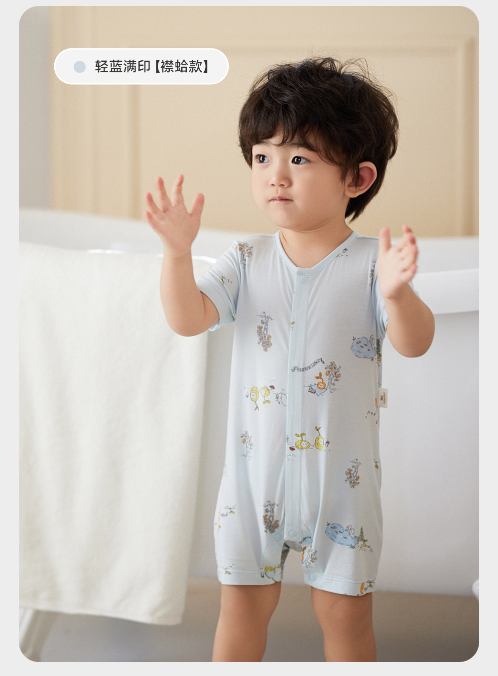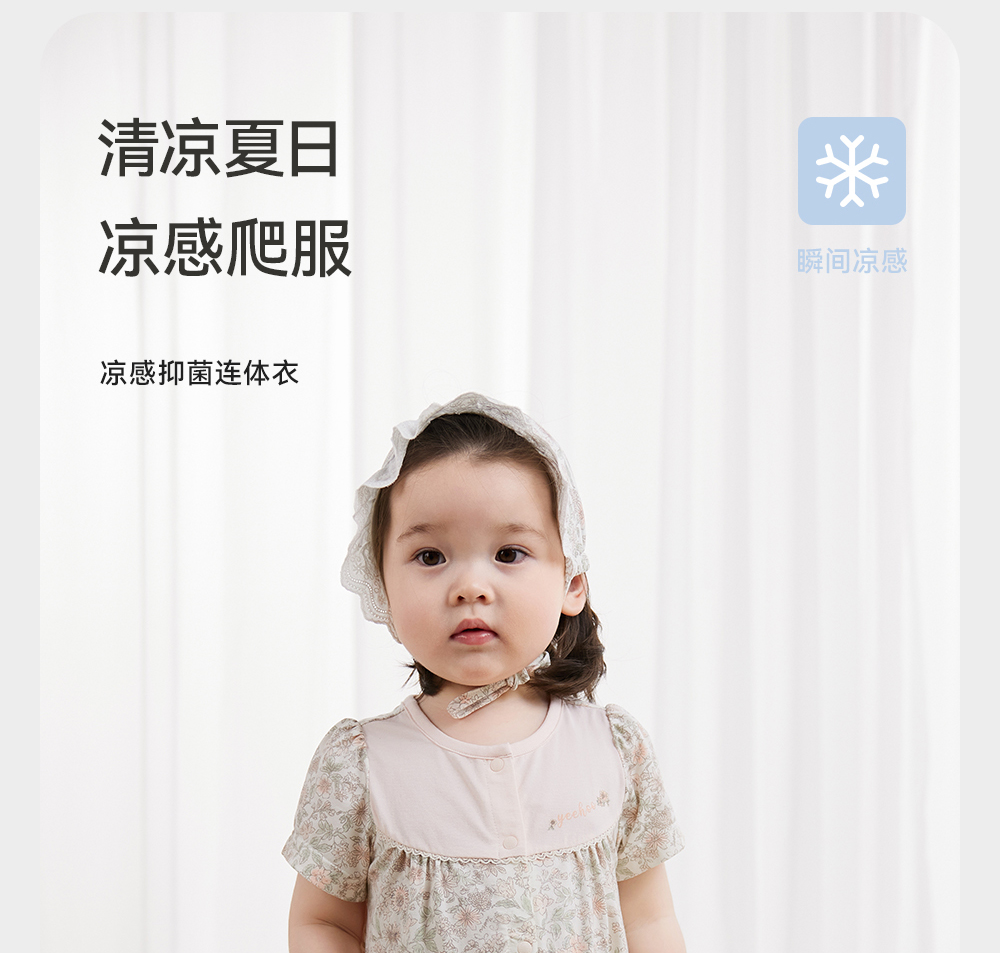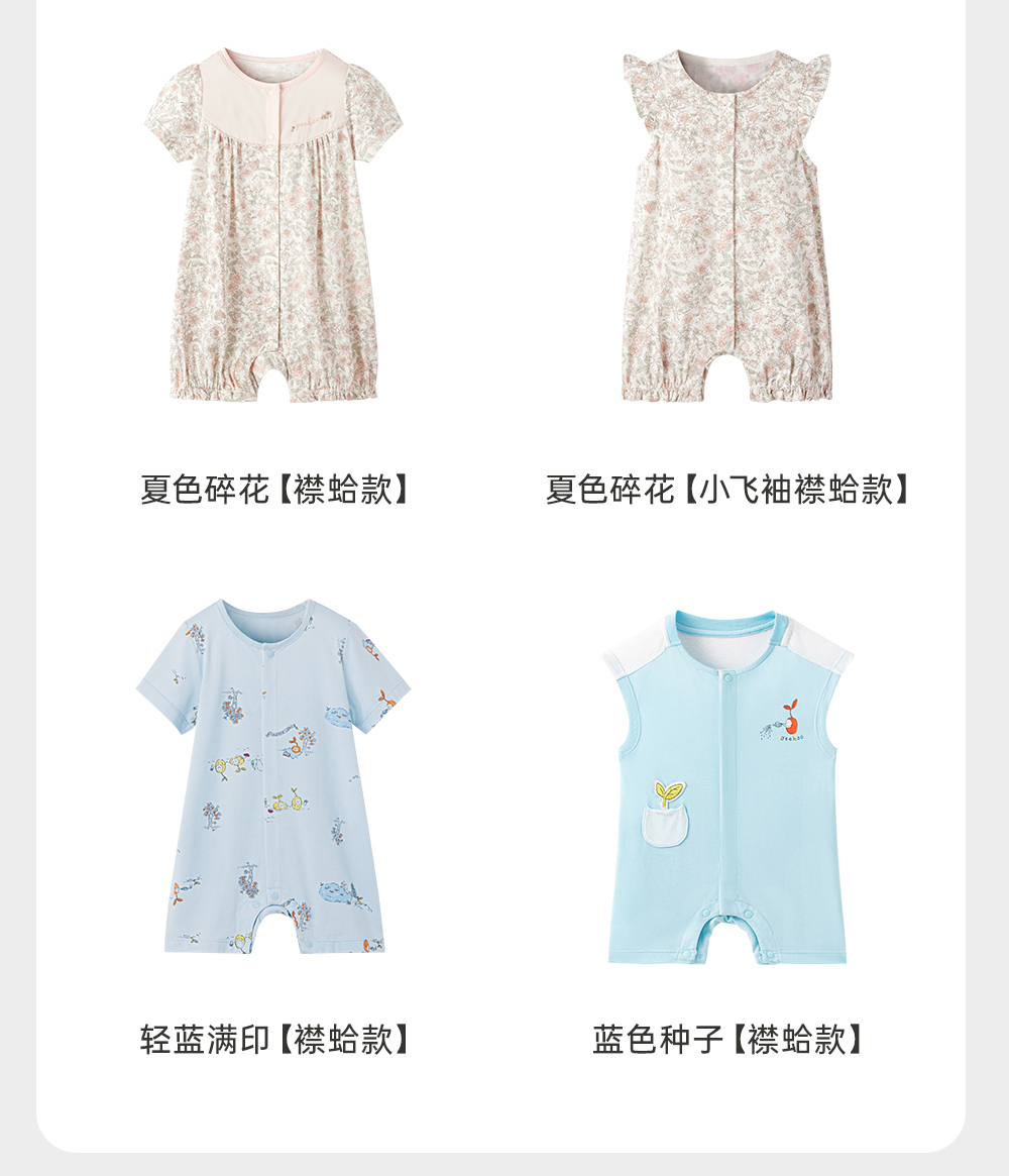 英氏婴儿家居服连体衣夏季抑菌凉感男女短爬服24新款YZJAJ2Q001A YZJAJ2Q003A YZJAJ2Q002A