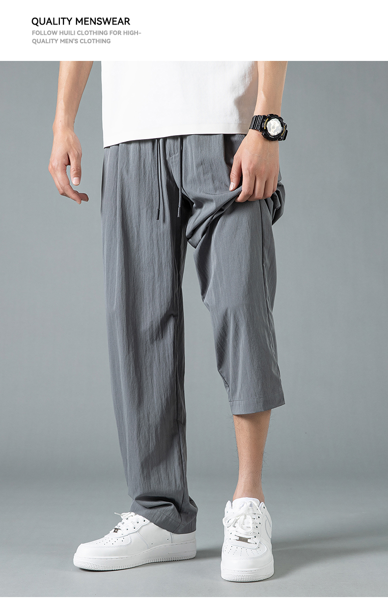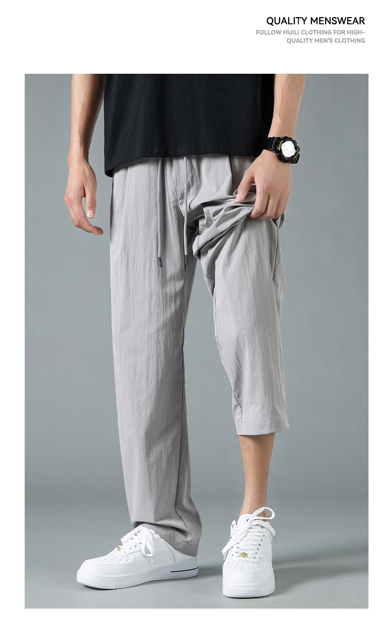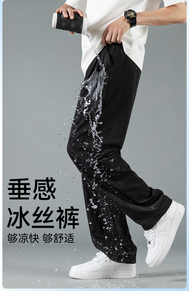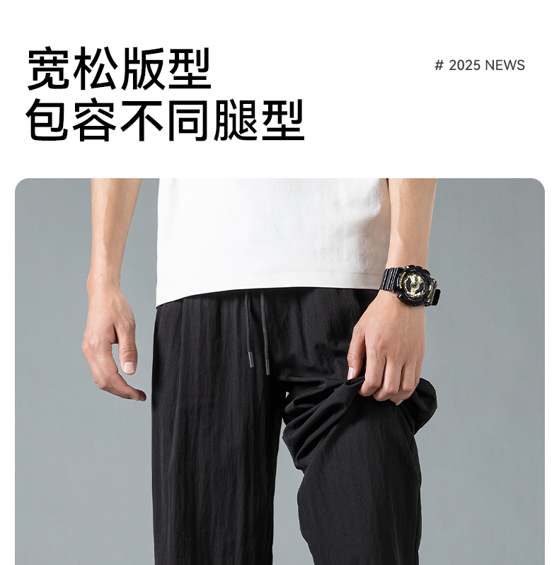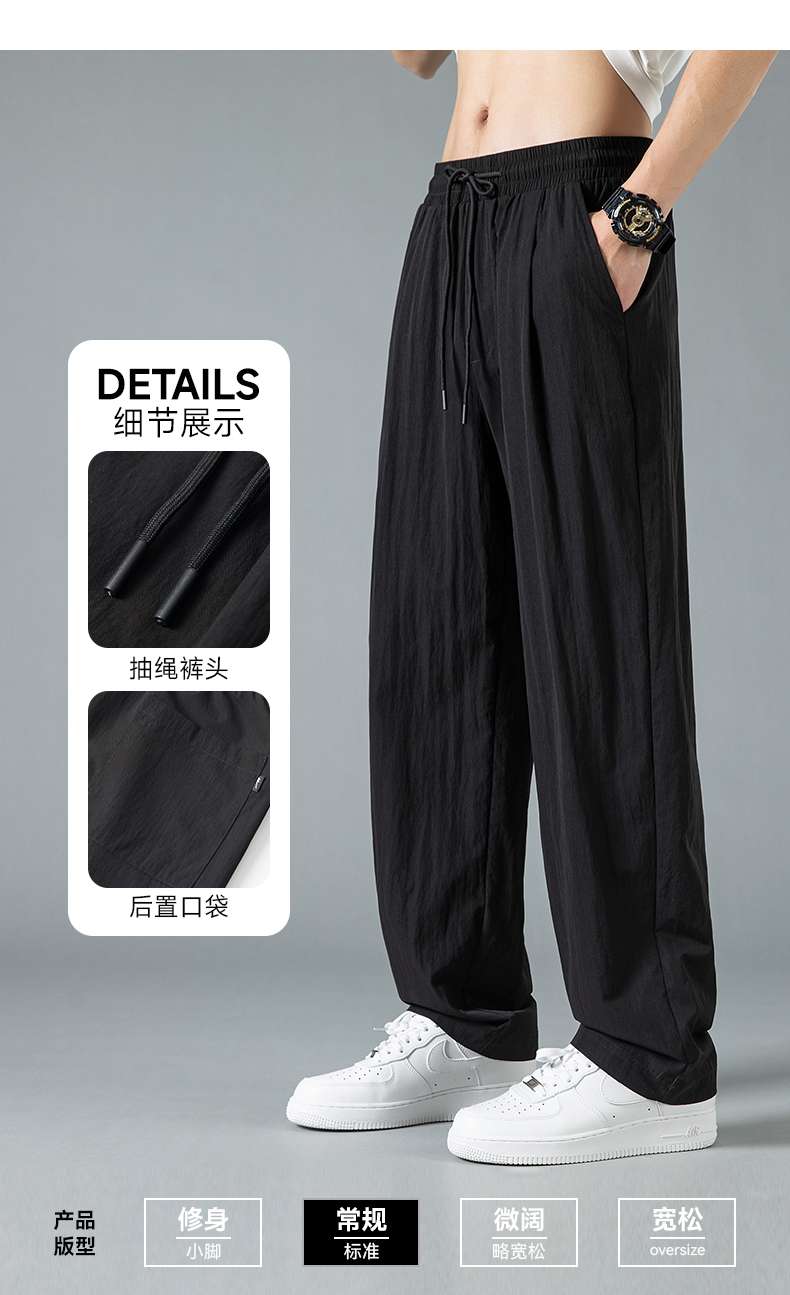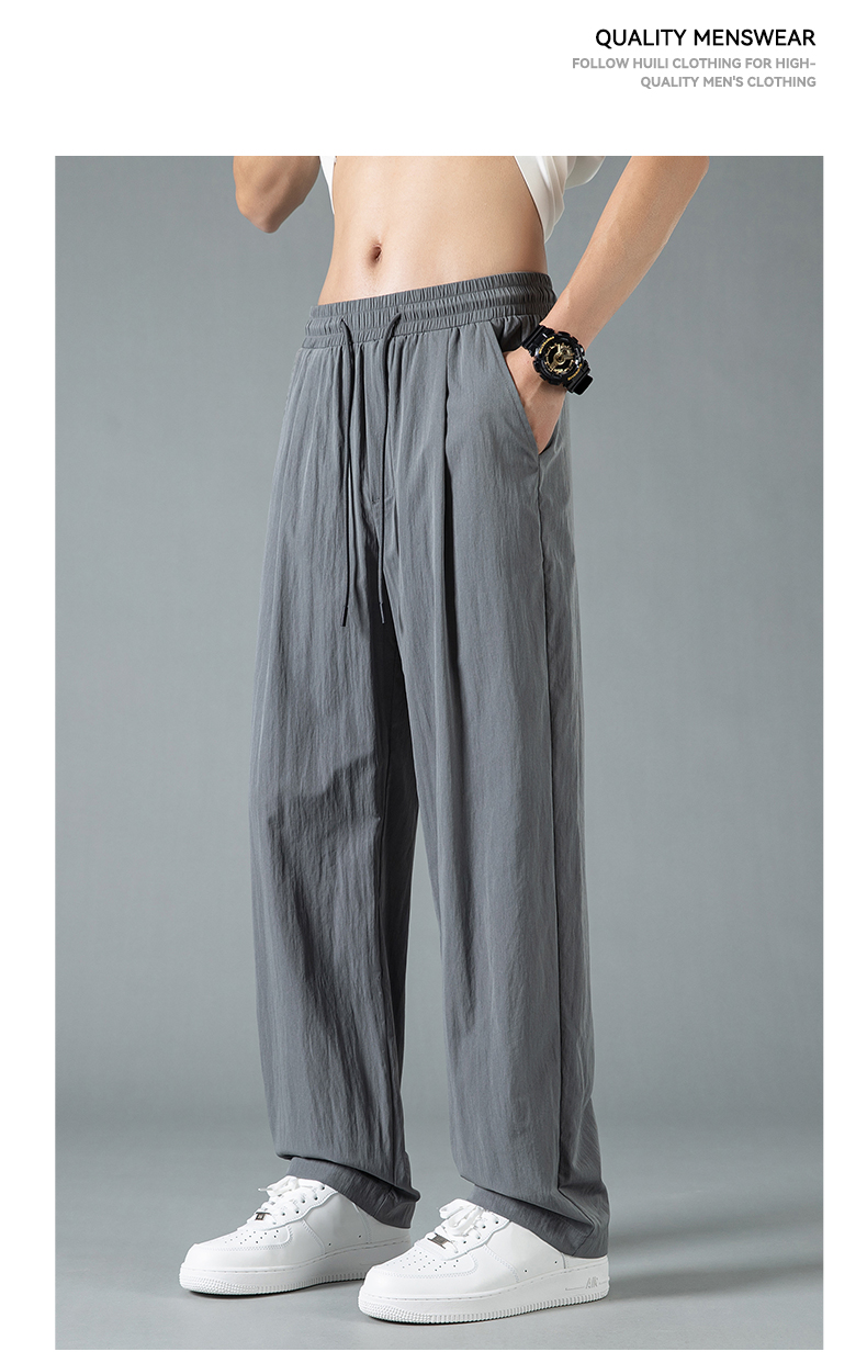 回力休闲裤男款2025夏季薄款冰丝直筒裤子宽松美式灰色速干运动裤