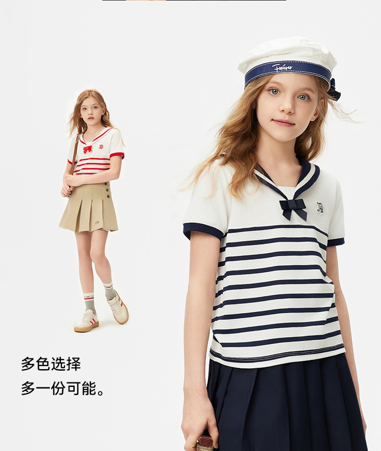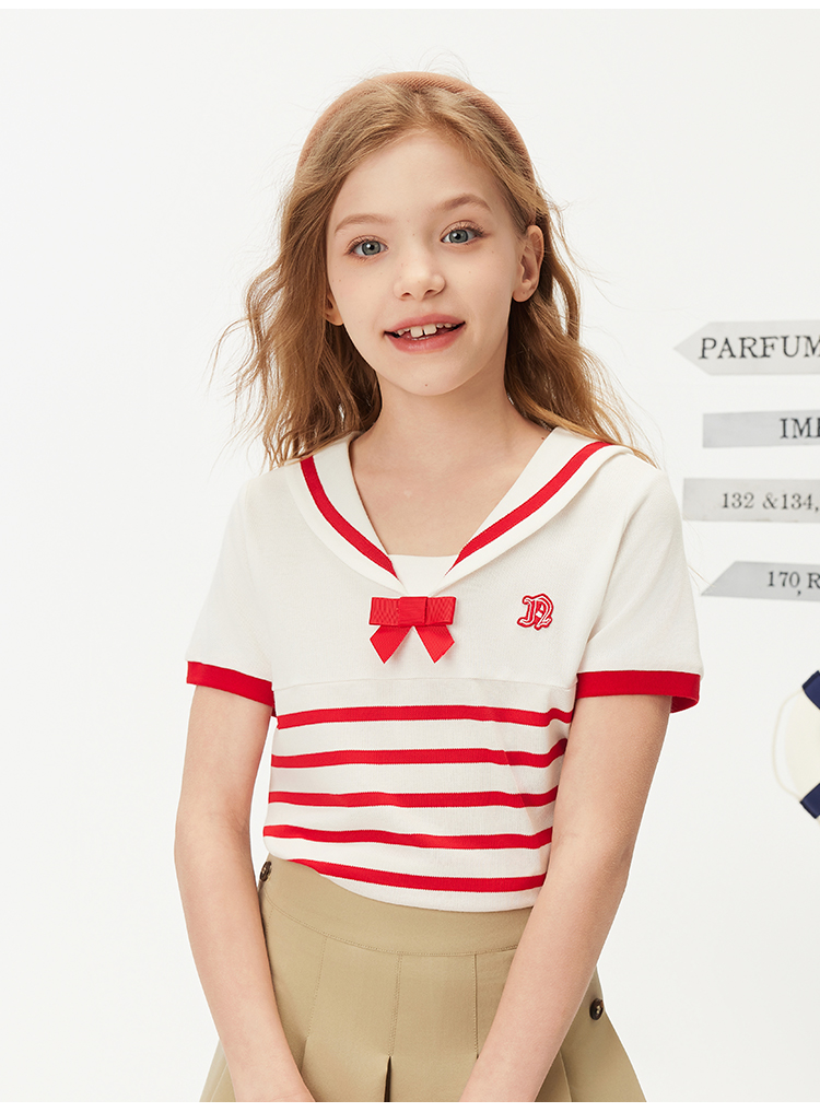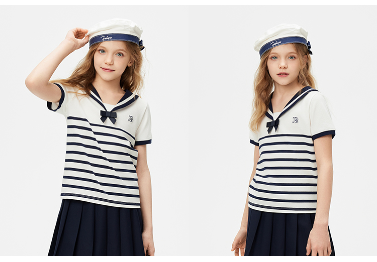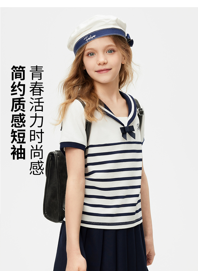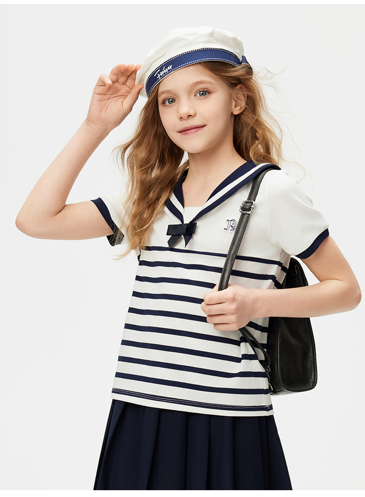【纳维凯尔】【120-165】Navigare意大利小帆船女童夏款海军风短袖T恤