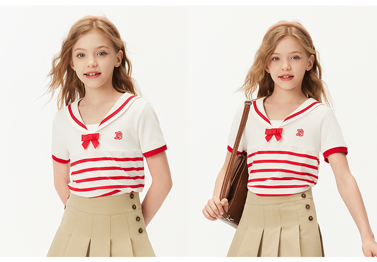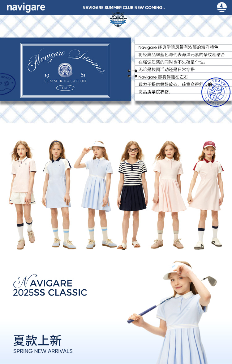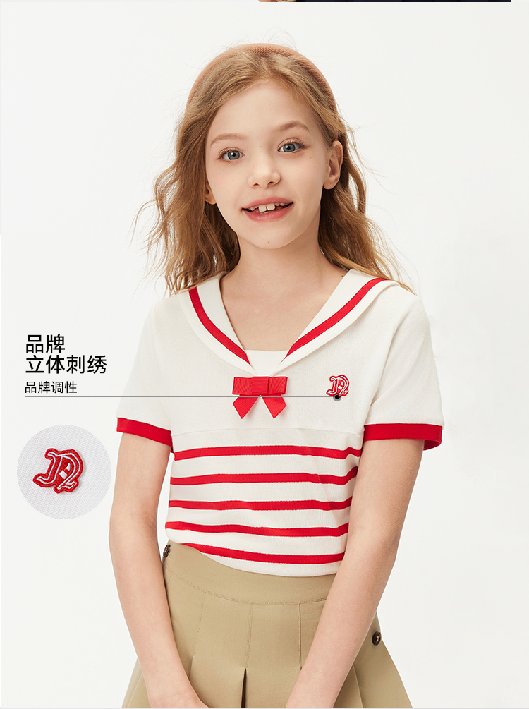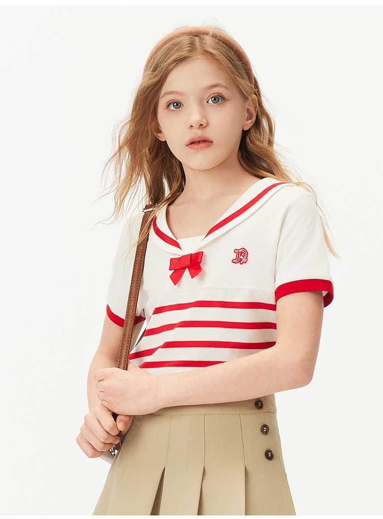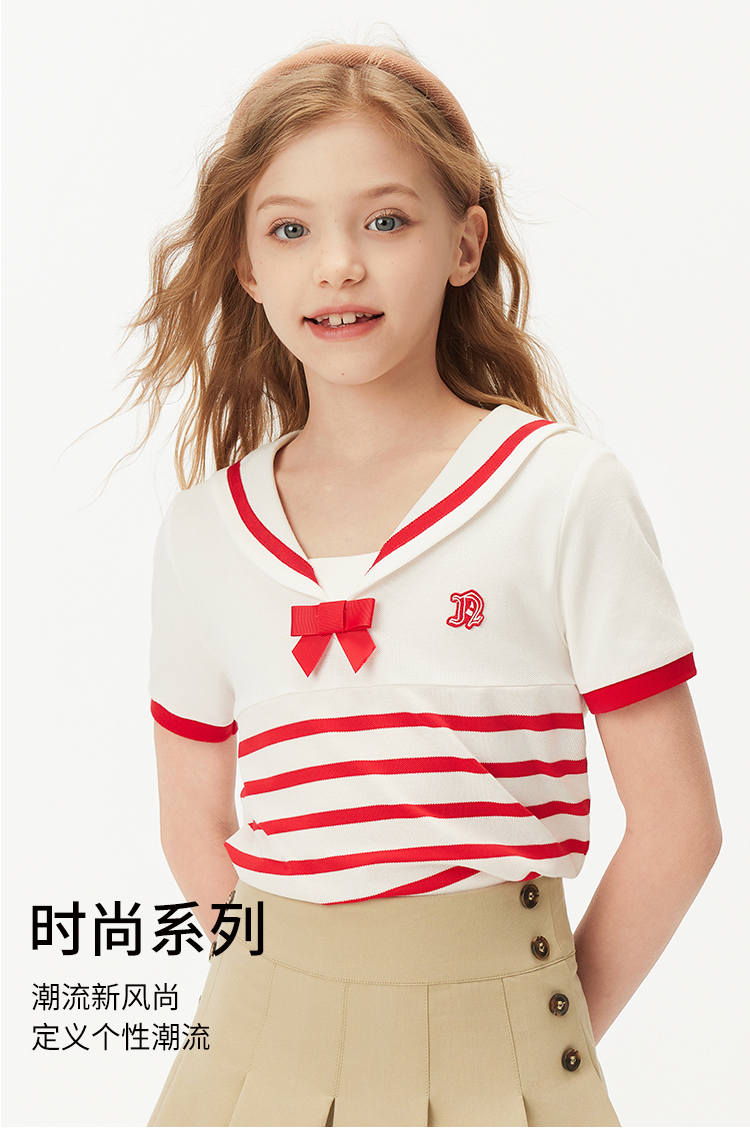 【纳维凯尔】【120-165】Navigare意大利小帆船女童夏款海军风短袖T恤