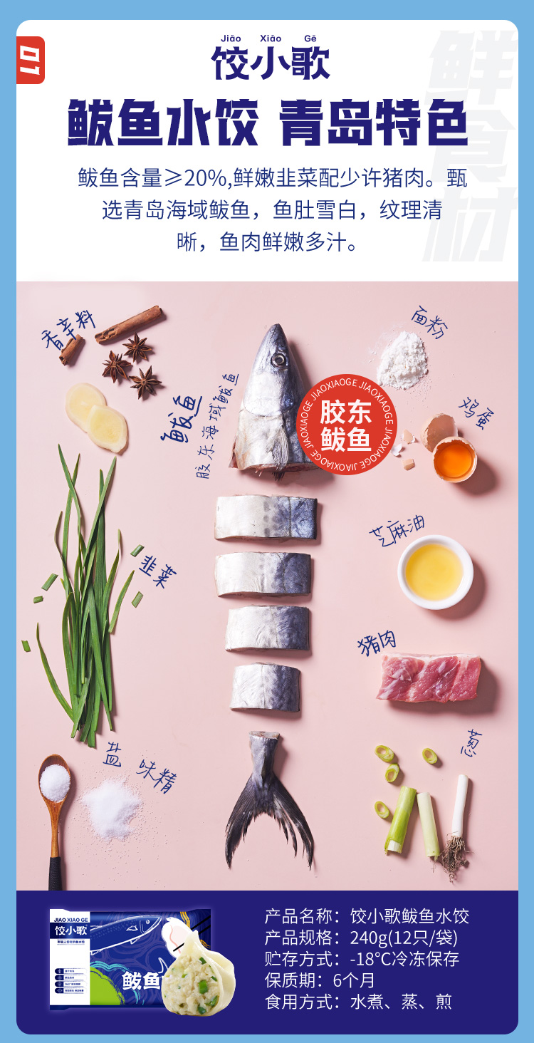 饺小歌鲅鱼水饺4袋装船歌鱼山东海鲜饺子速冻冷冻煮速食包邮
