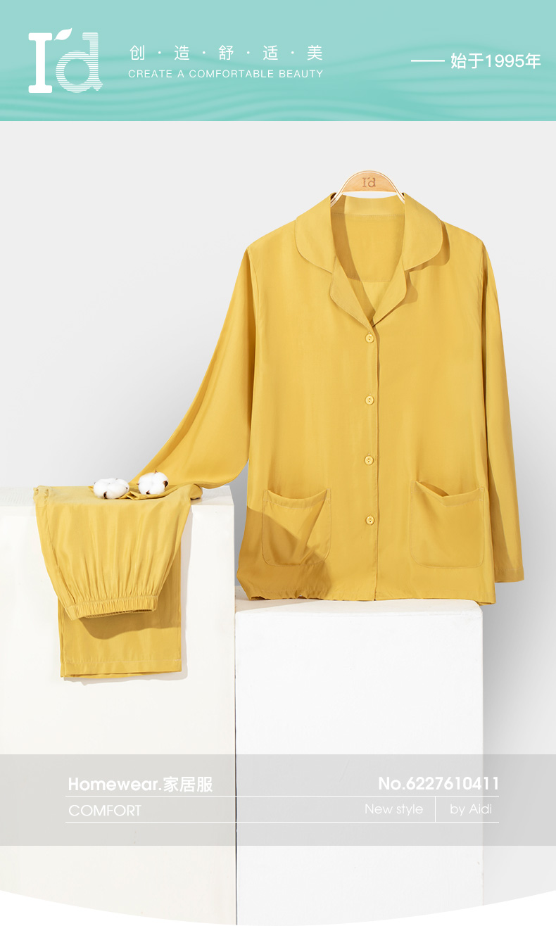 I‘d爱帝女士绵柔梭织简约素色翻领长袖居家套