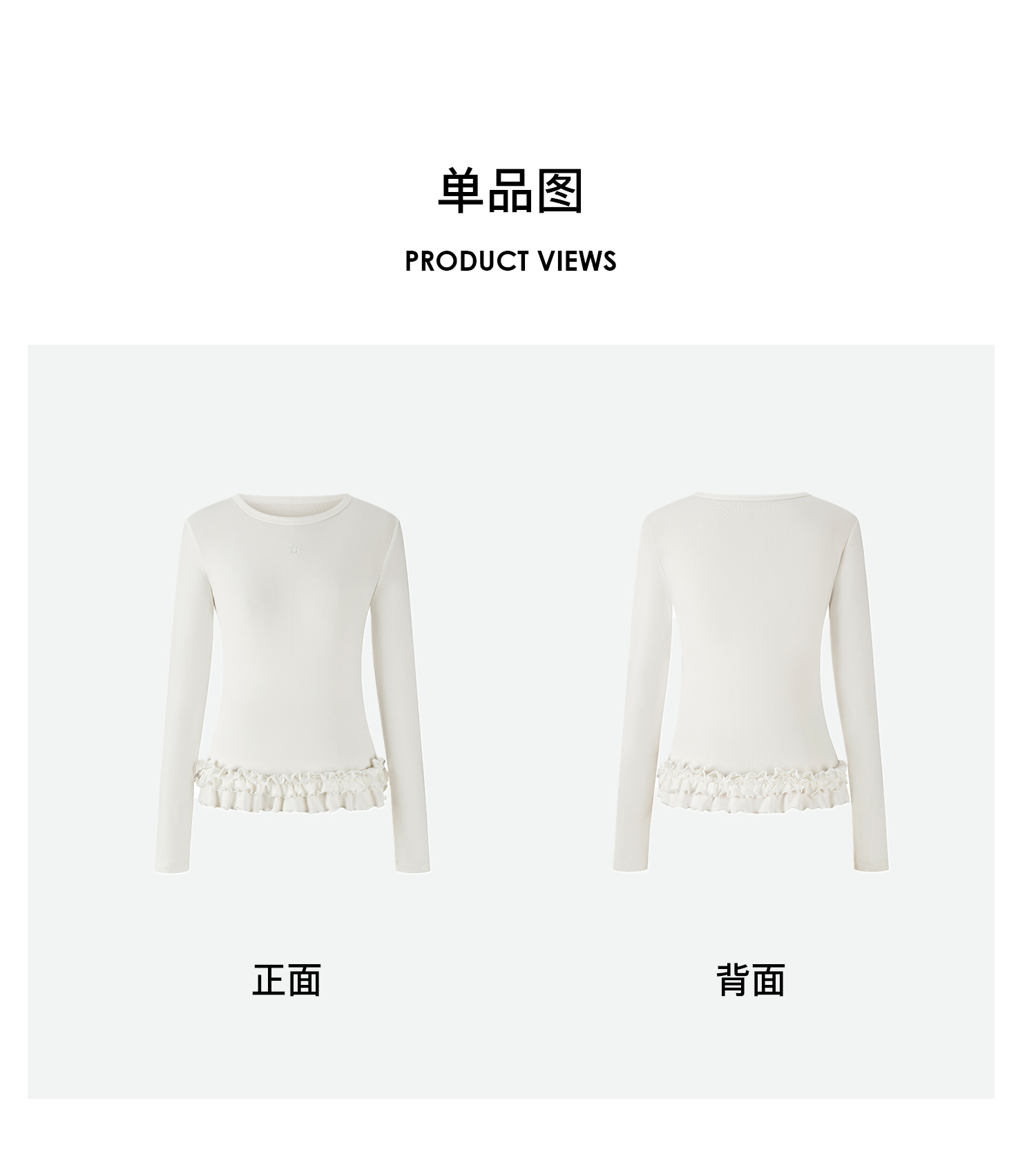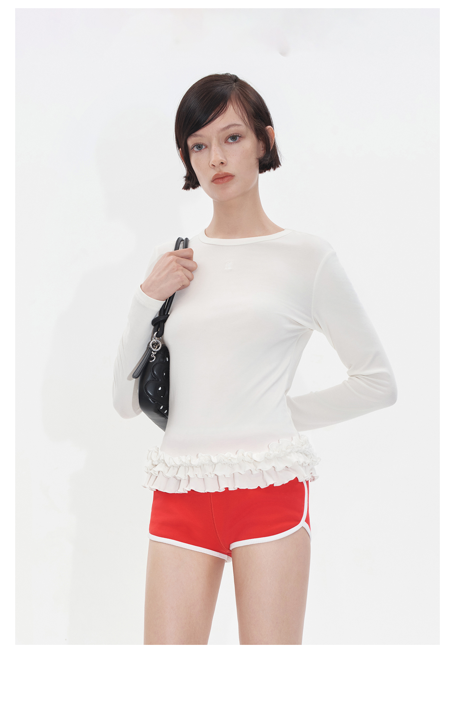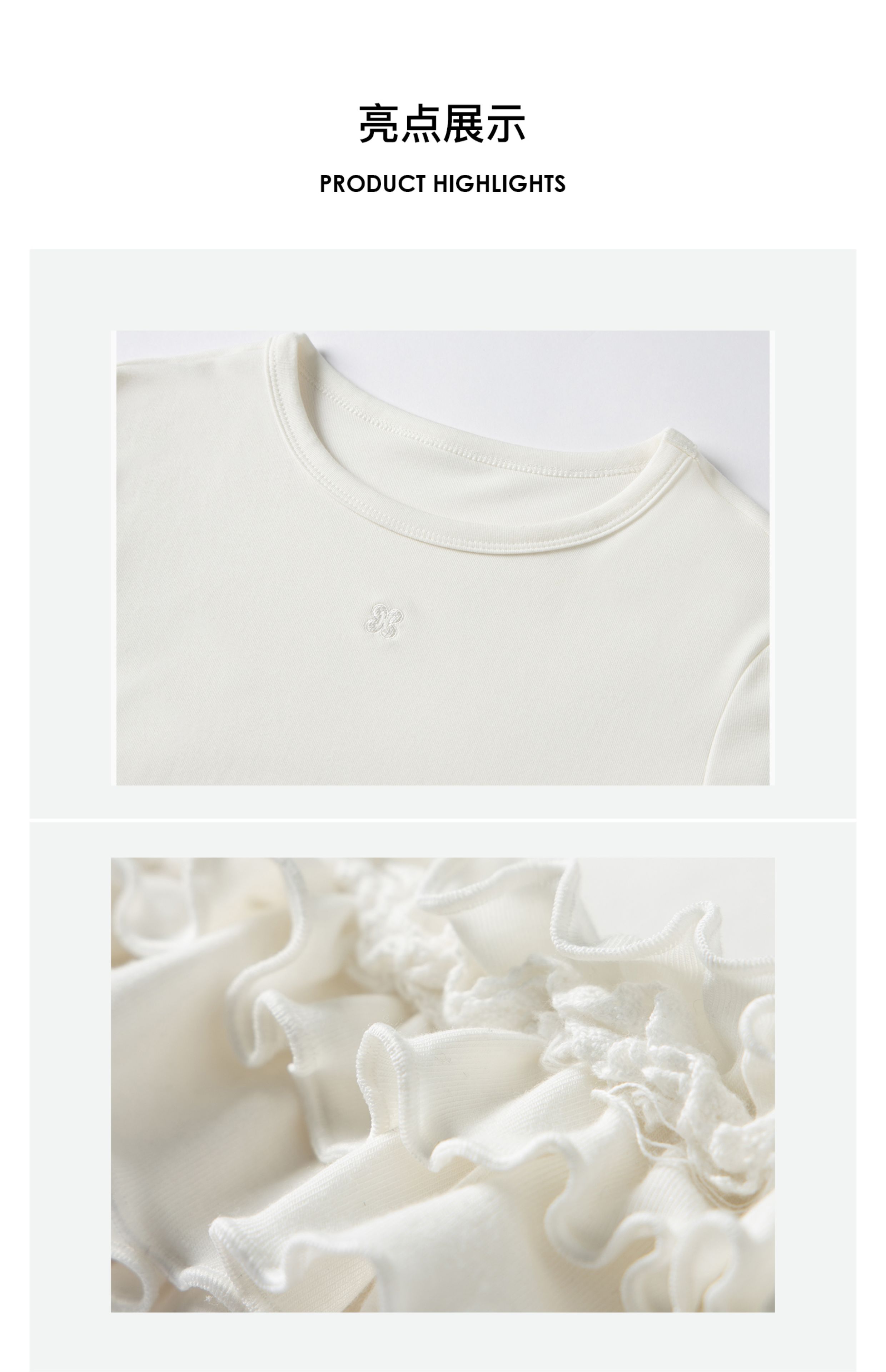 Herlian2025年秋季新品女士下摆立体多层次荷叶边装饰打底衫