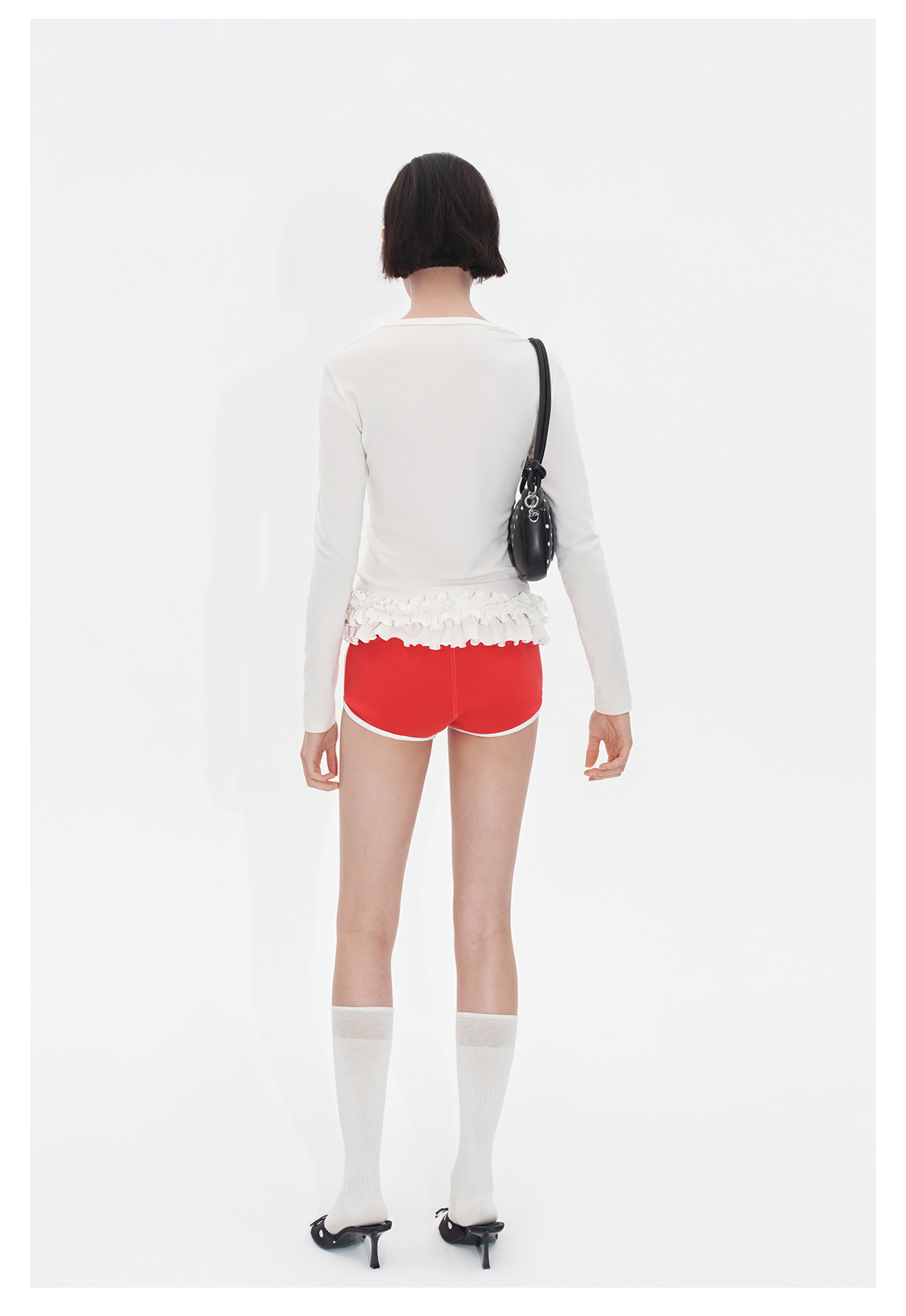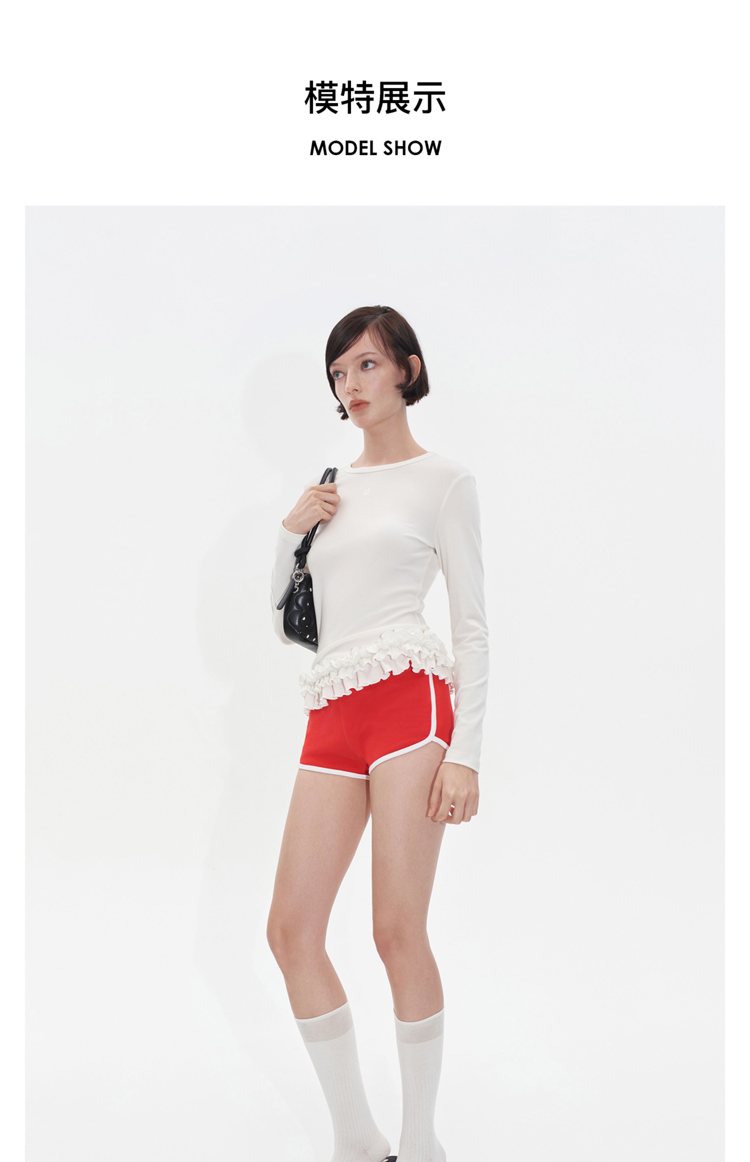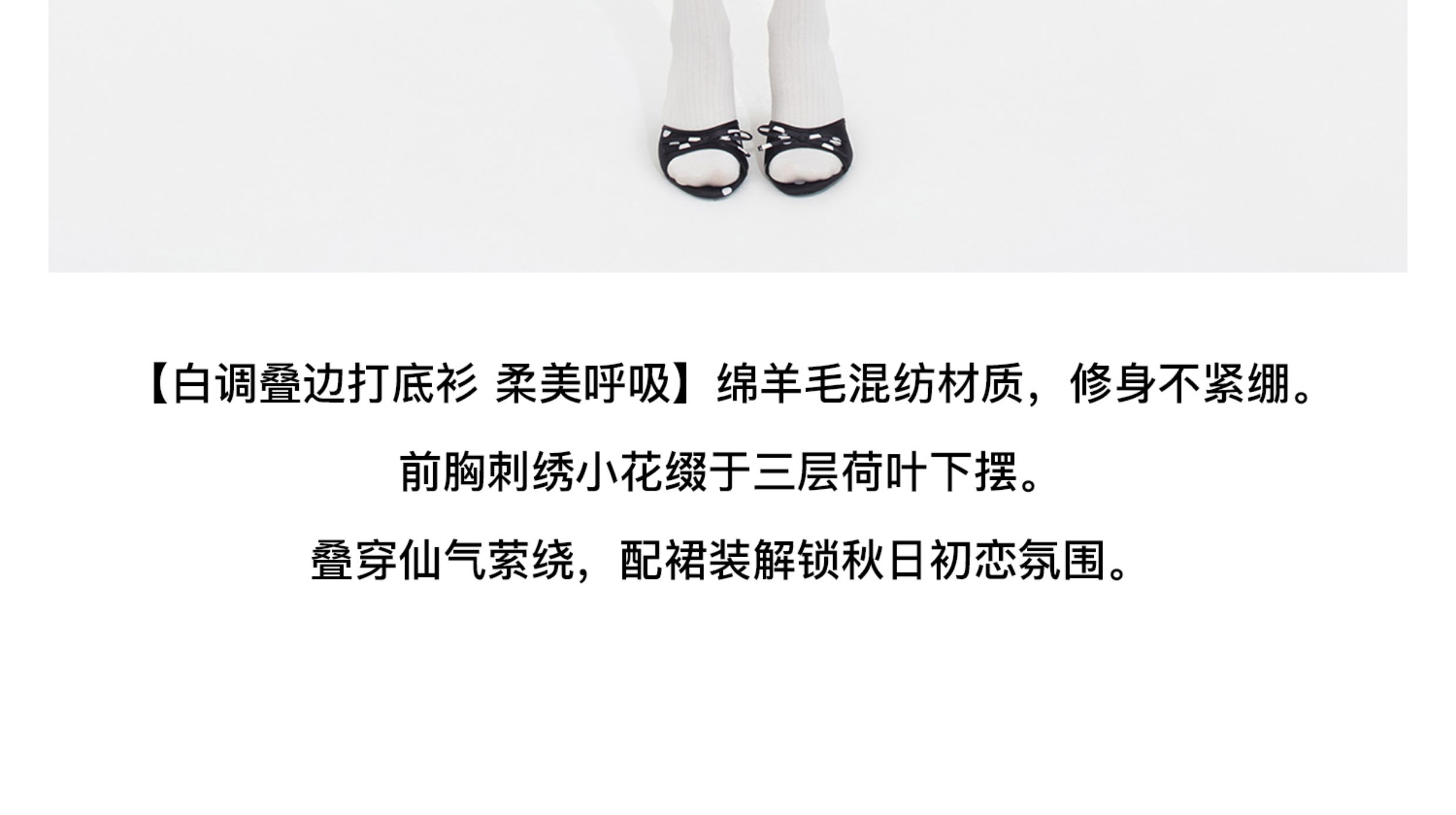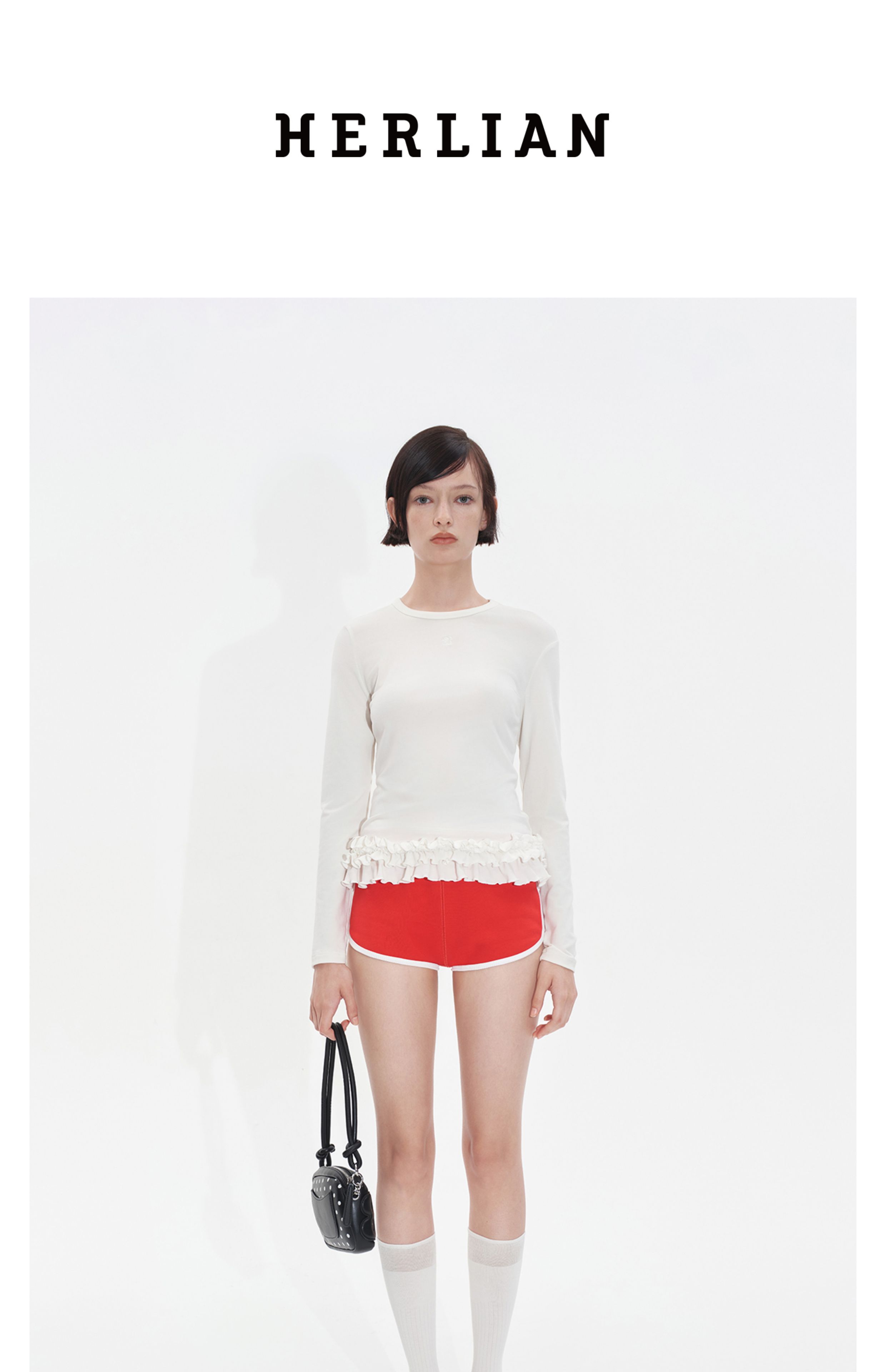 Herlian2025年秋季新品女士下摆立体多层次荷叶边装饰打底衫