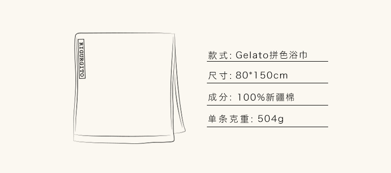 【代发】RIGURGITO 40支拼色Gelato系列丝柔纺浴巾80*150cm