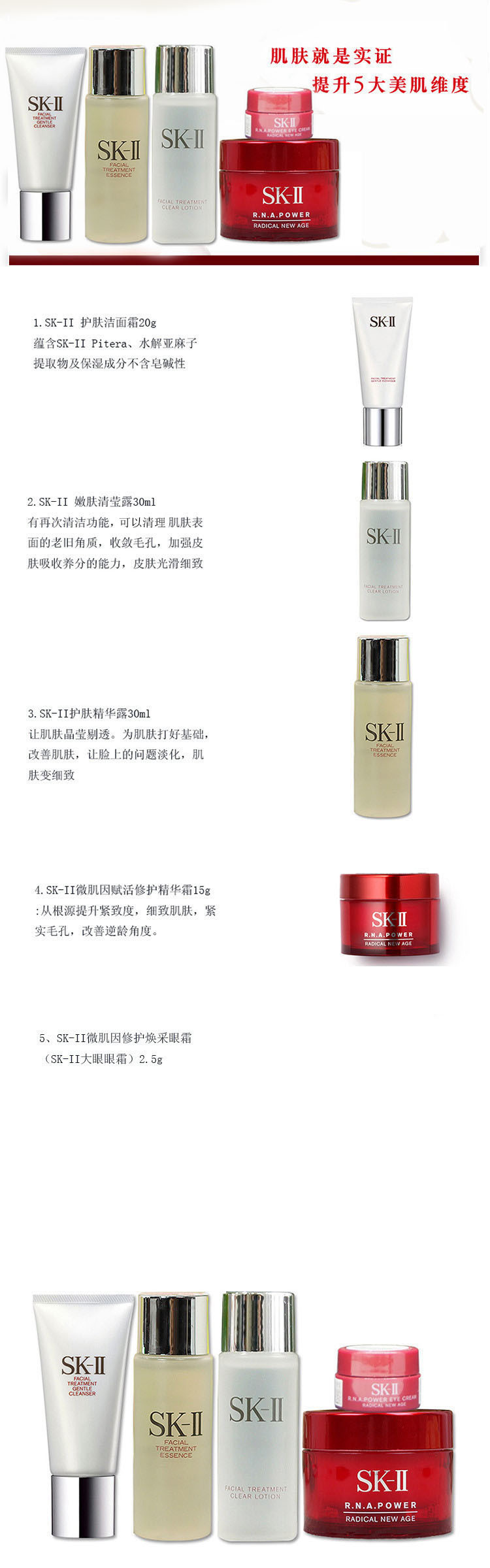 装柜 SKII 经典星品体验装5件套(氨基酸护肤洁面霜20g+神仙水30ml+清莹露30ml+大眼眼霜2.5g+大红瓶面霜(滋润)15g)