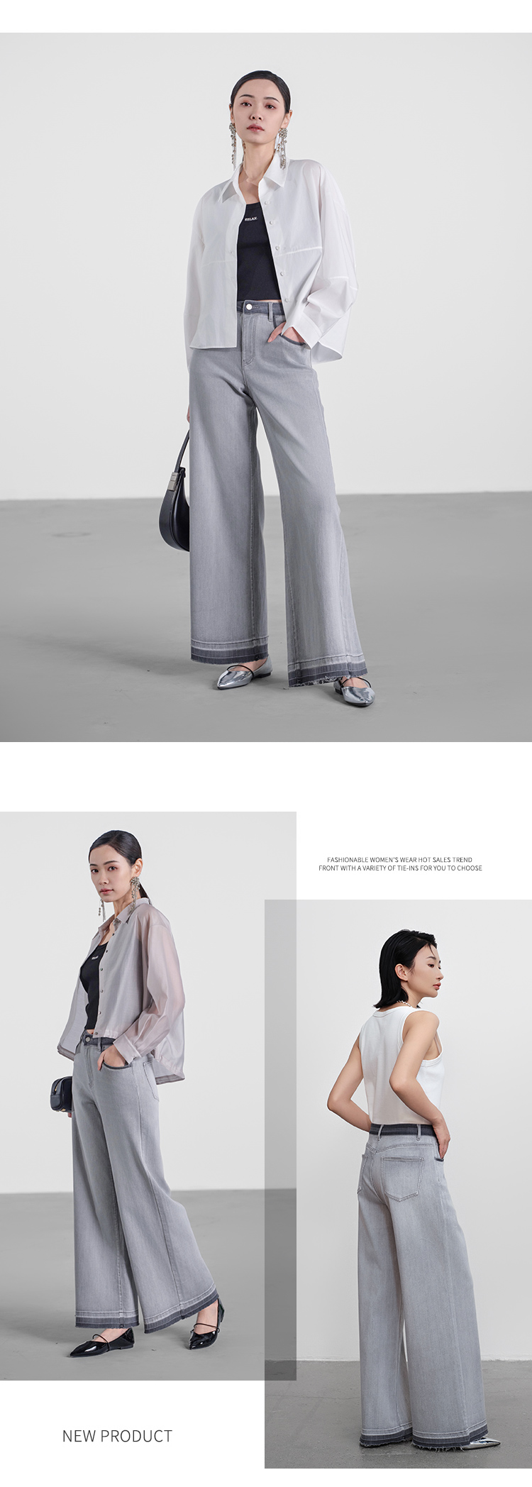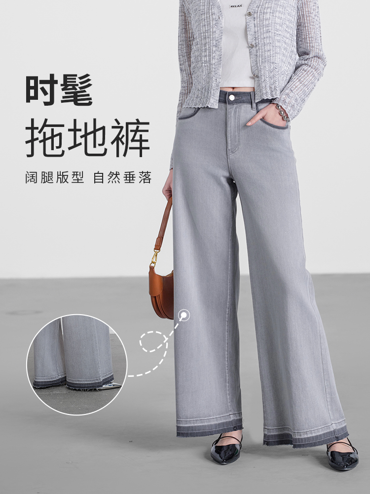 【商场同款】CNT5472 “ 时髦拖地裤 ” 冰川灰中性色调 好搭配耐看 好穿 灰色牛仔裤