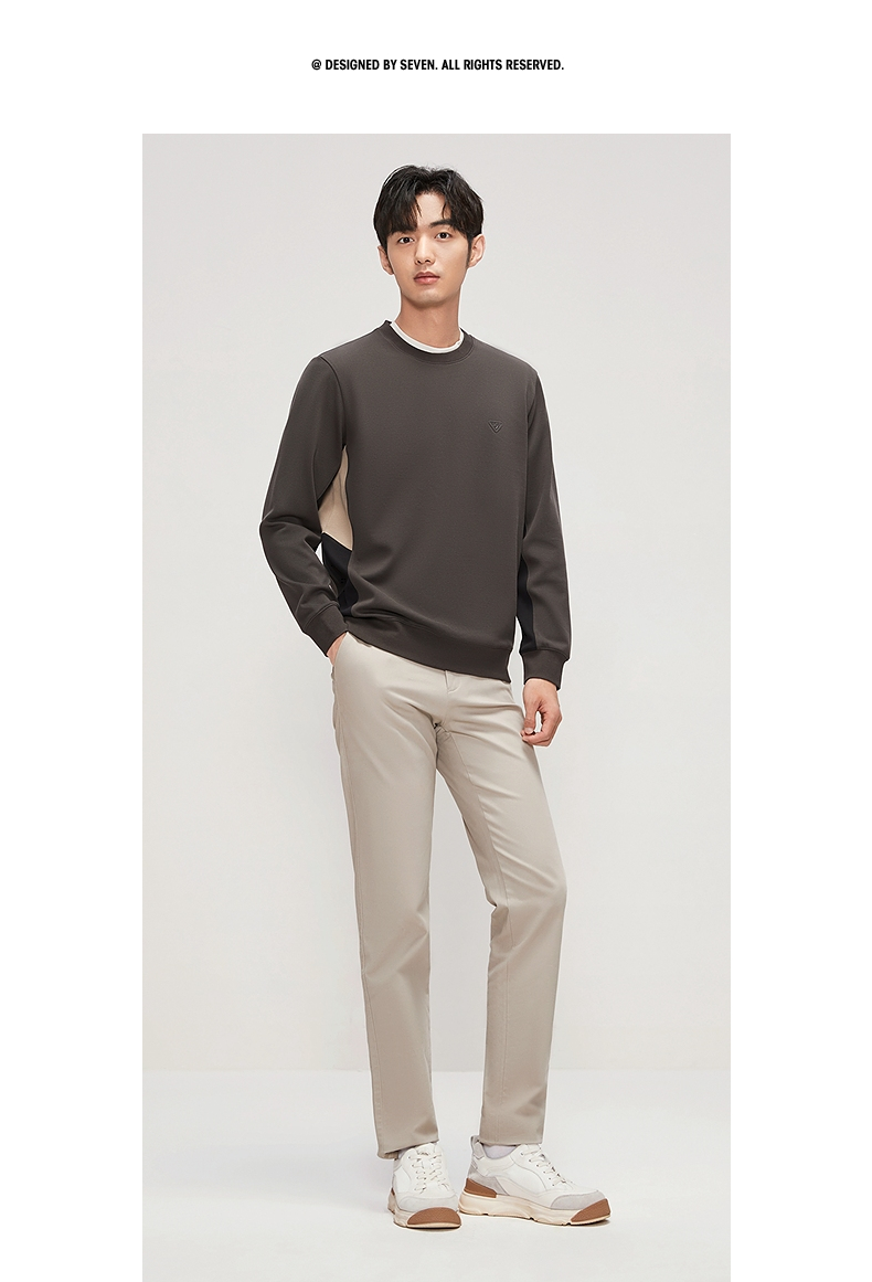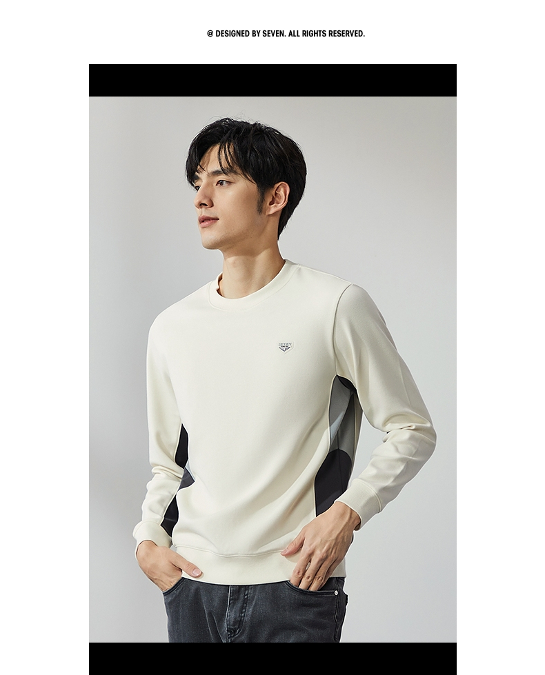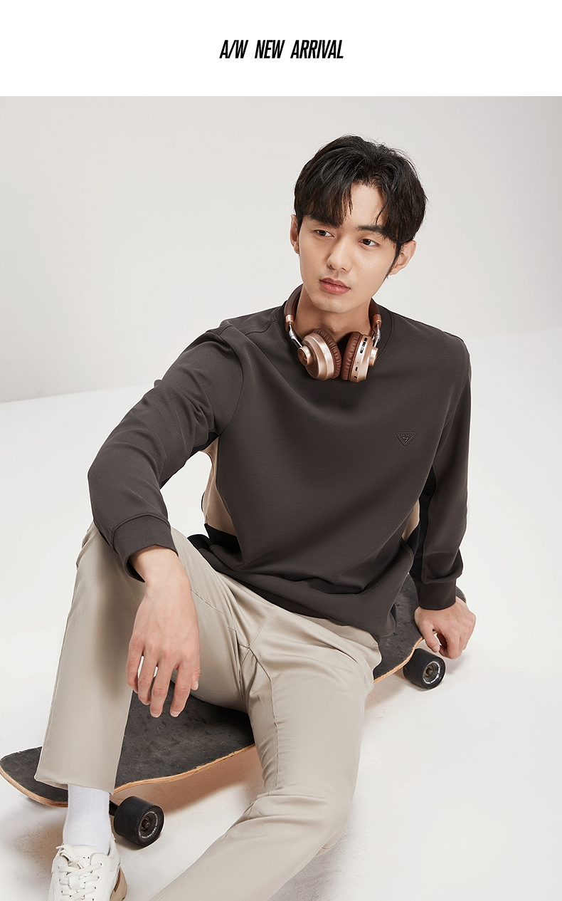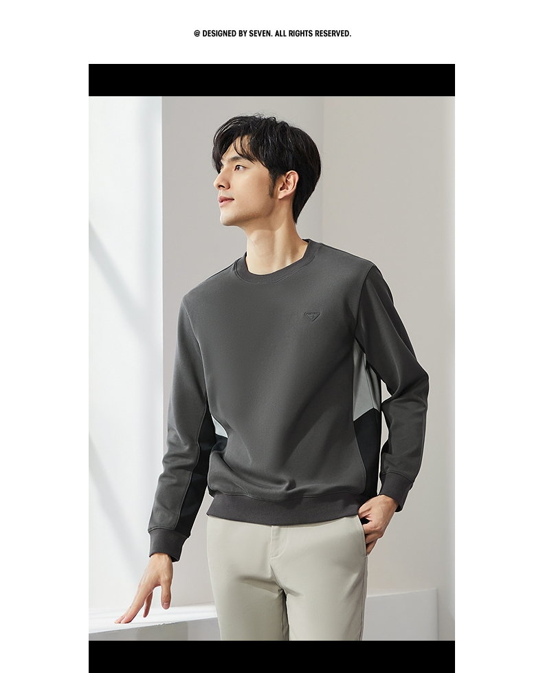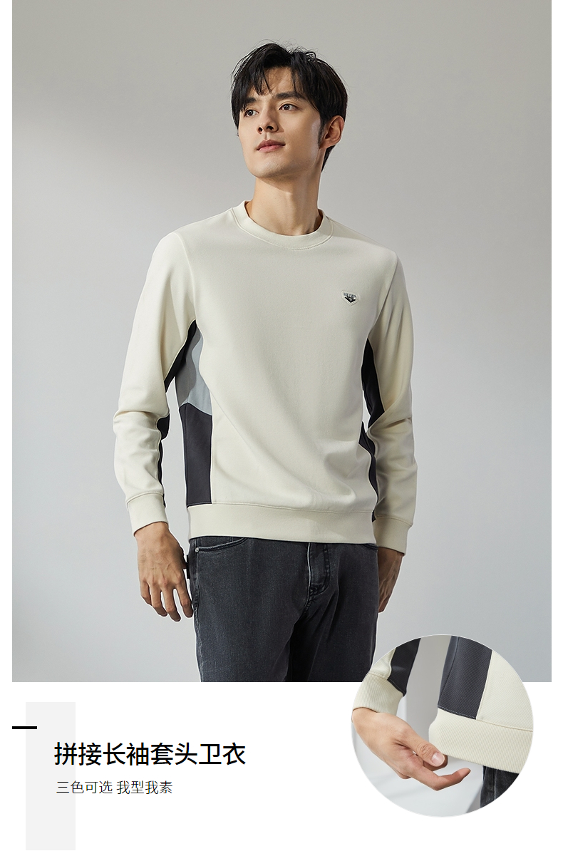 柒牌男士时尚卫衣2024秋季新款潮流百搭拼接休闲简约圆领套头上衣 127W70450