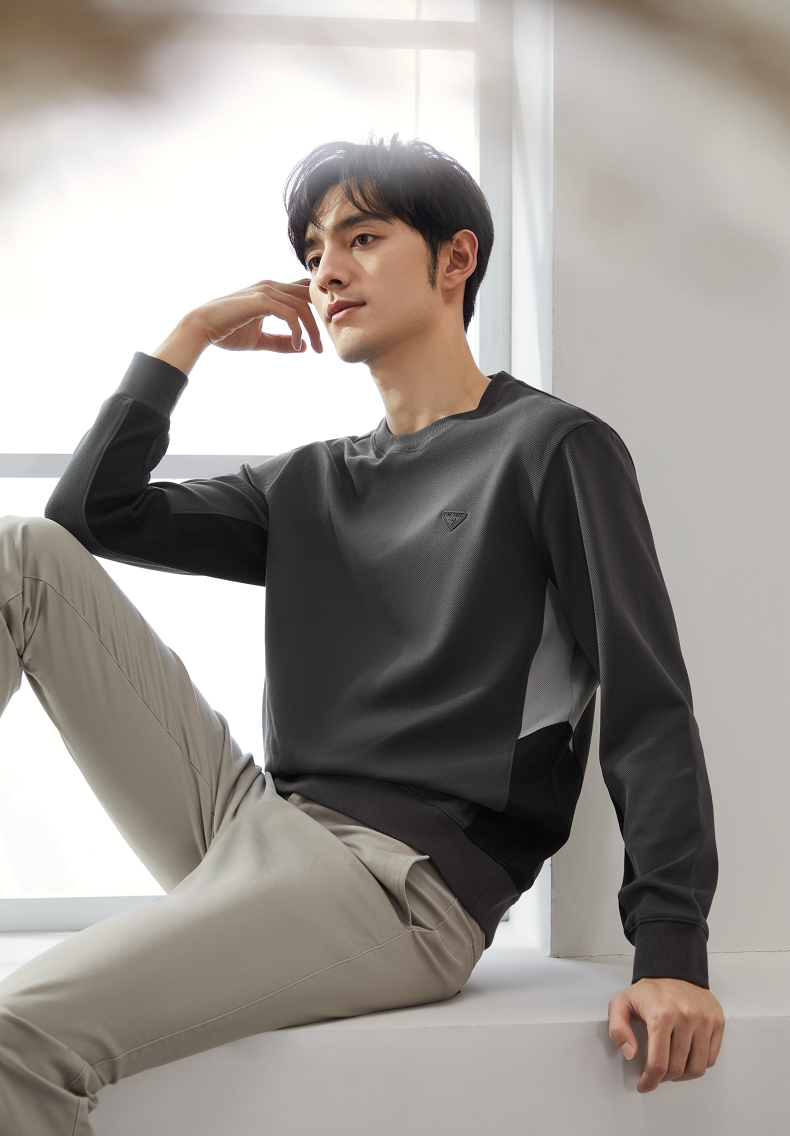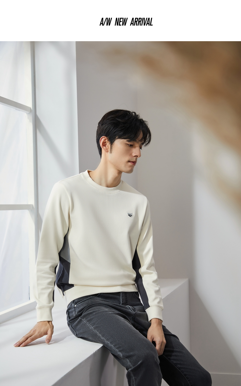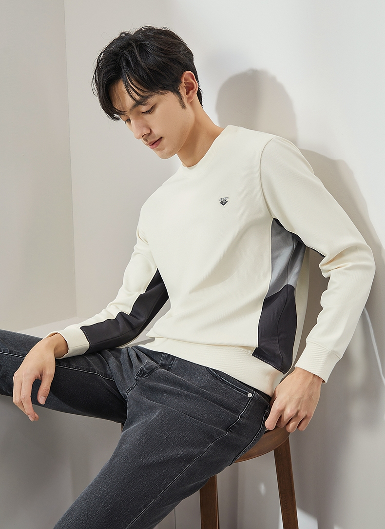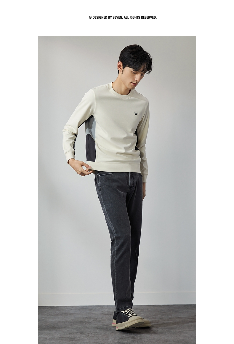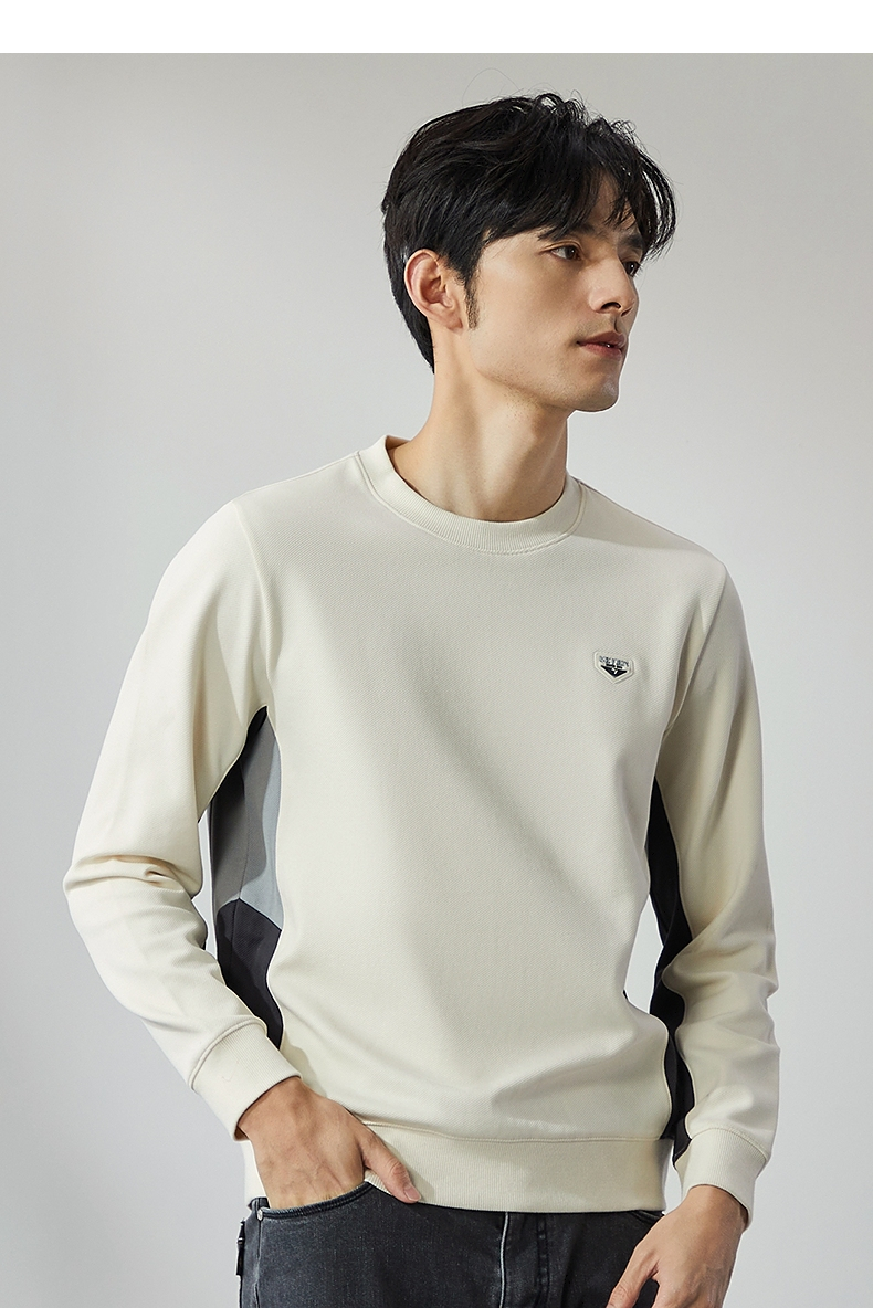 柒牌男士时尚卫衣2024秋季新款潮流百搭拼接休闲简约圆领套头上衣 127W70450