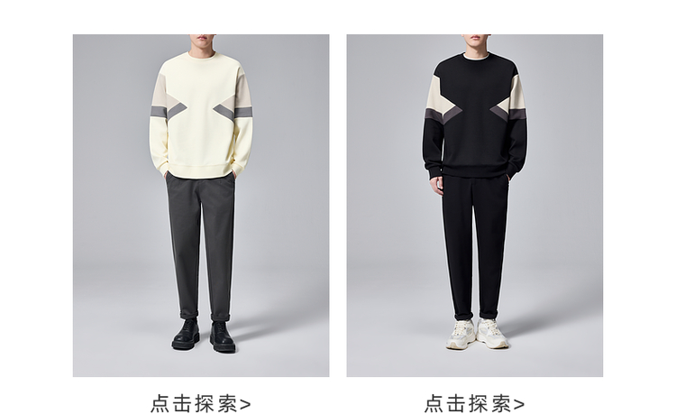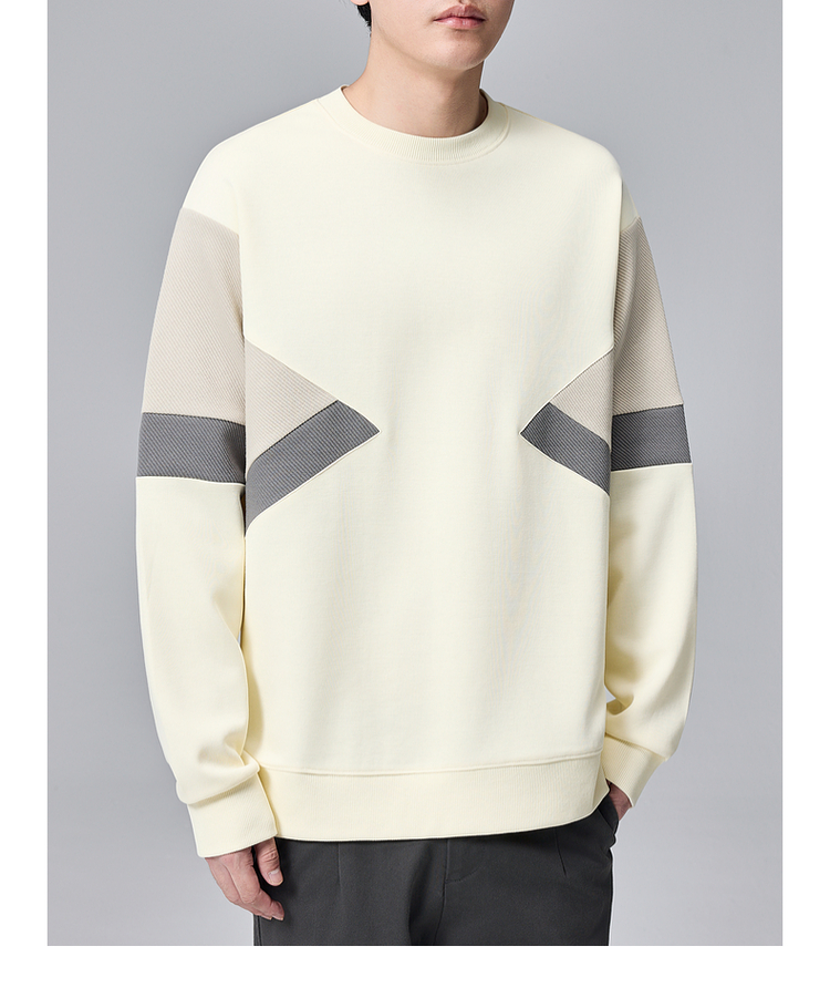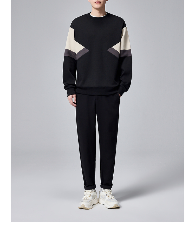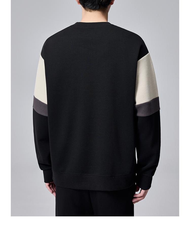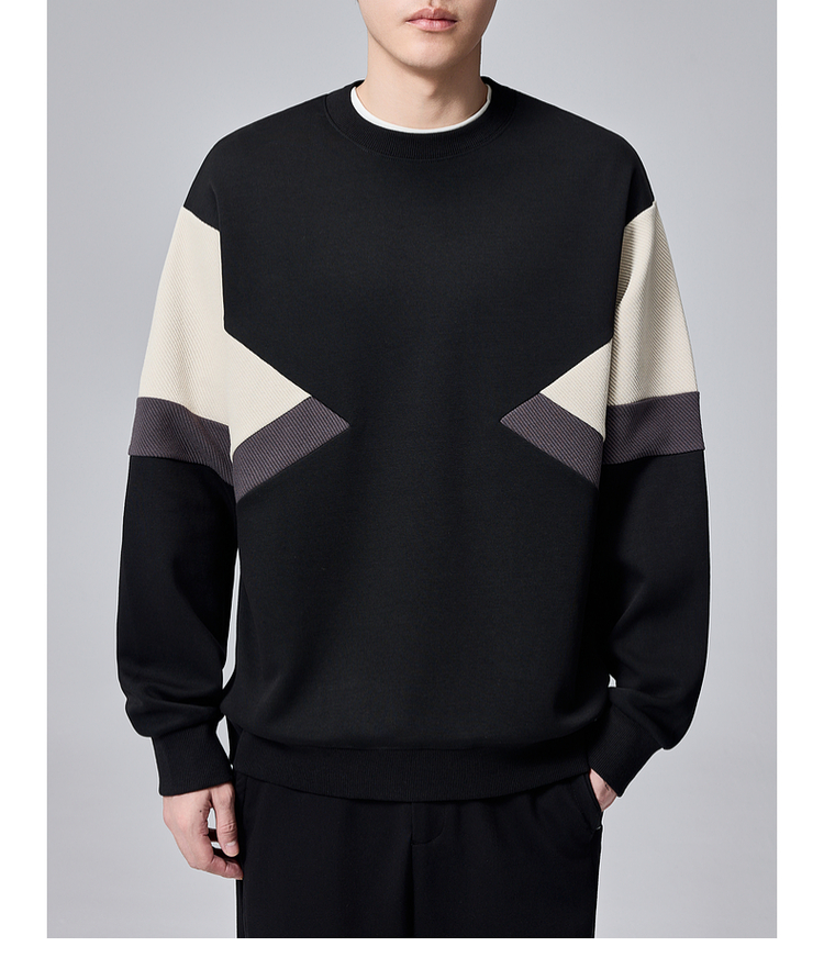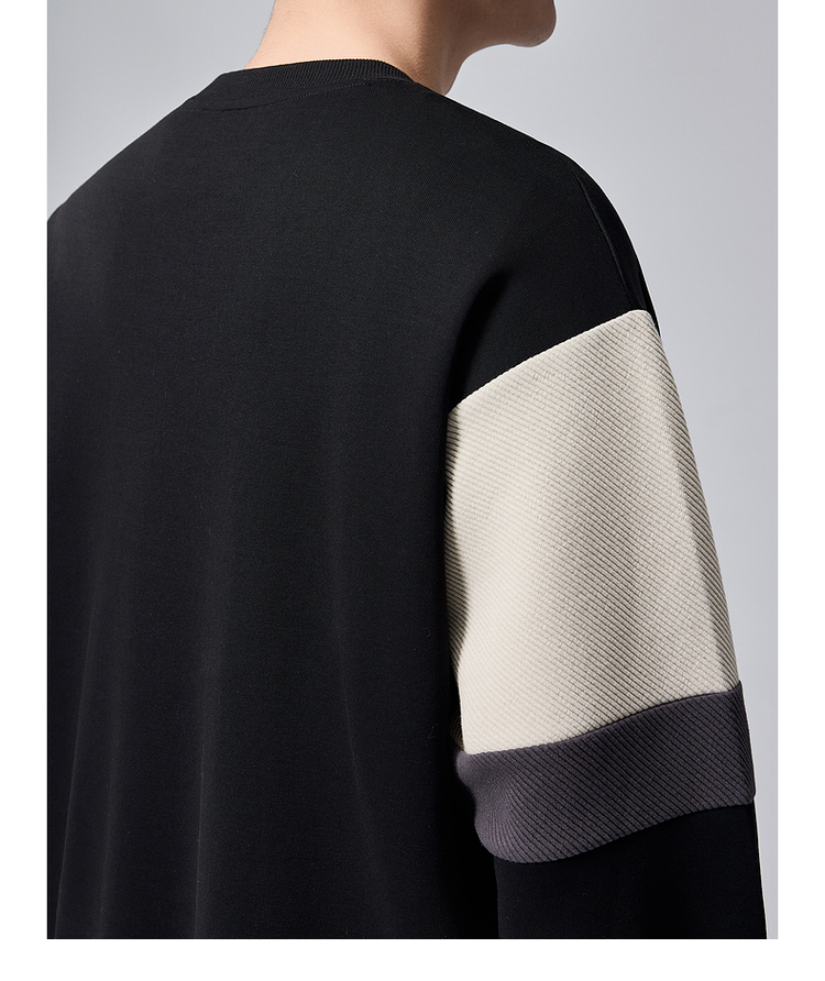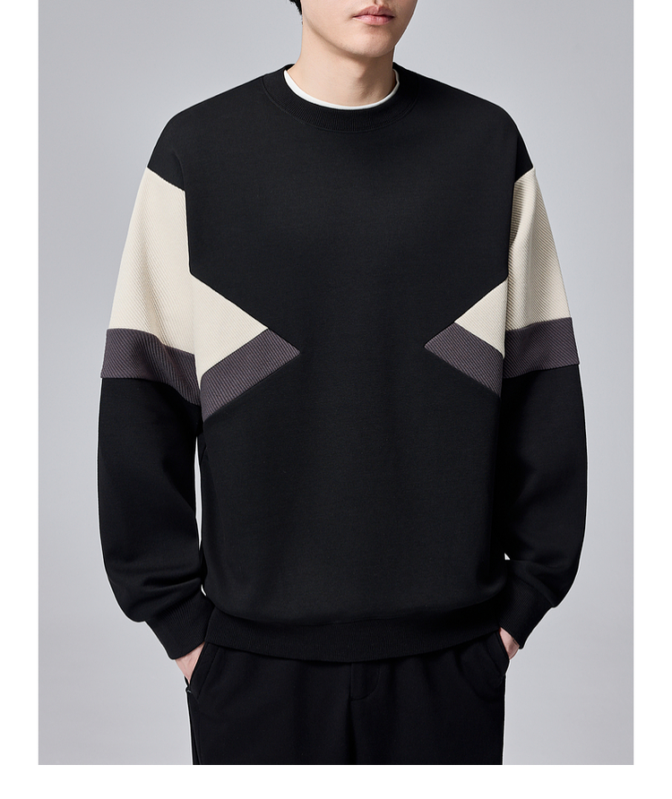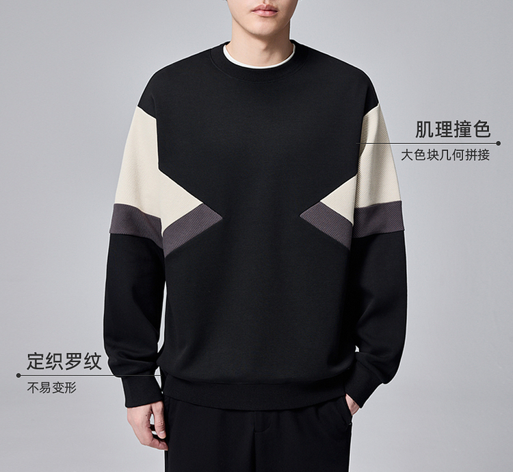 墨麦客男装撞色拼接男士休闲圆领卫衣2024秋季新款重磅肌理上衣男