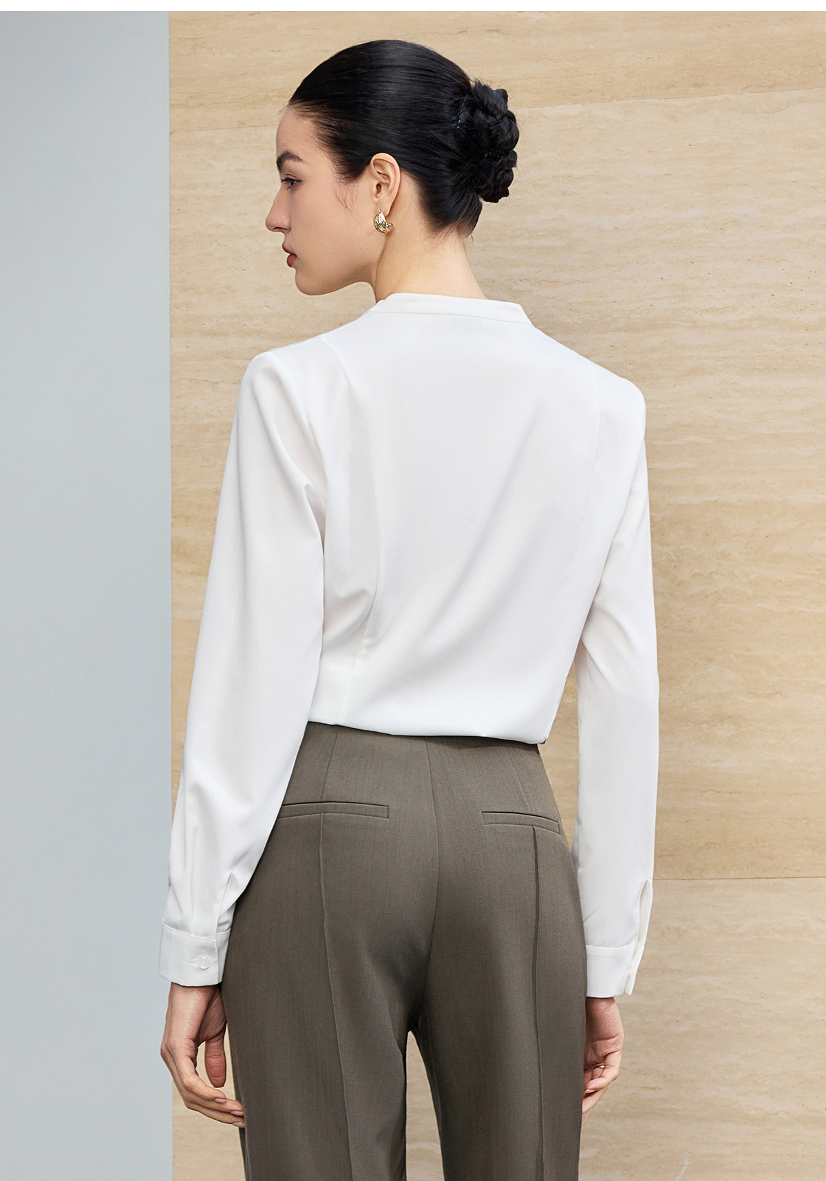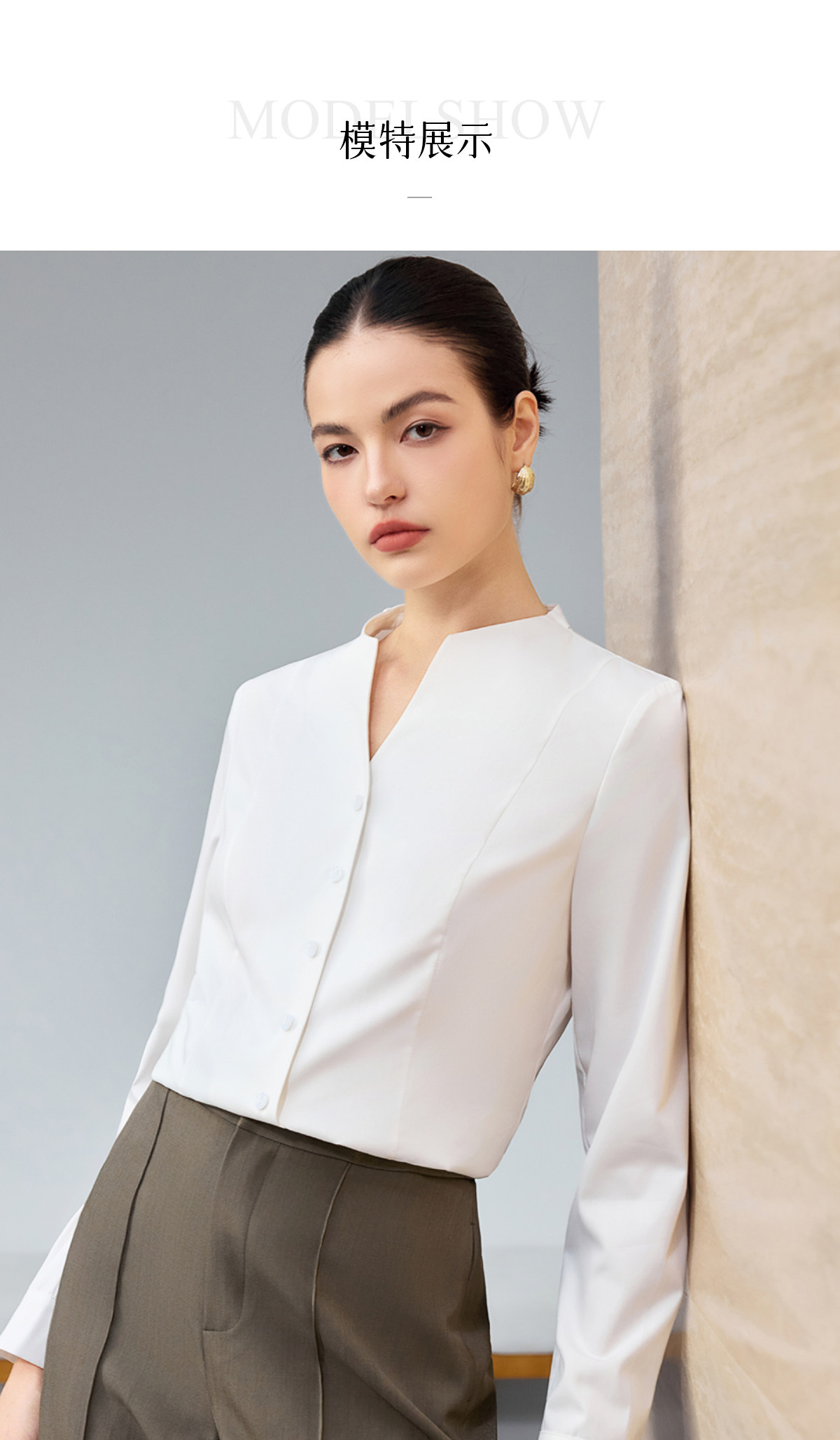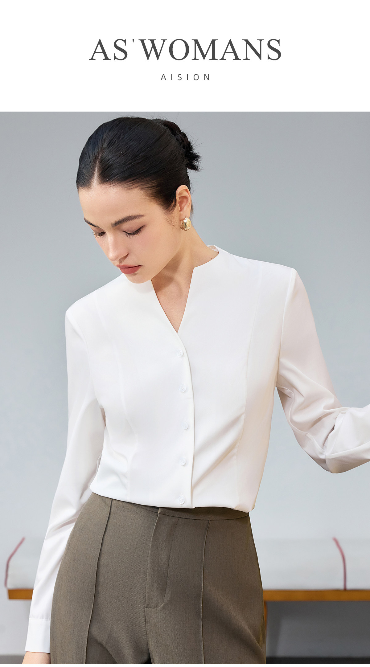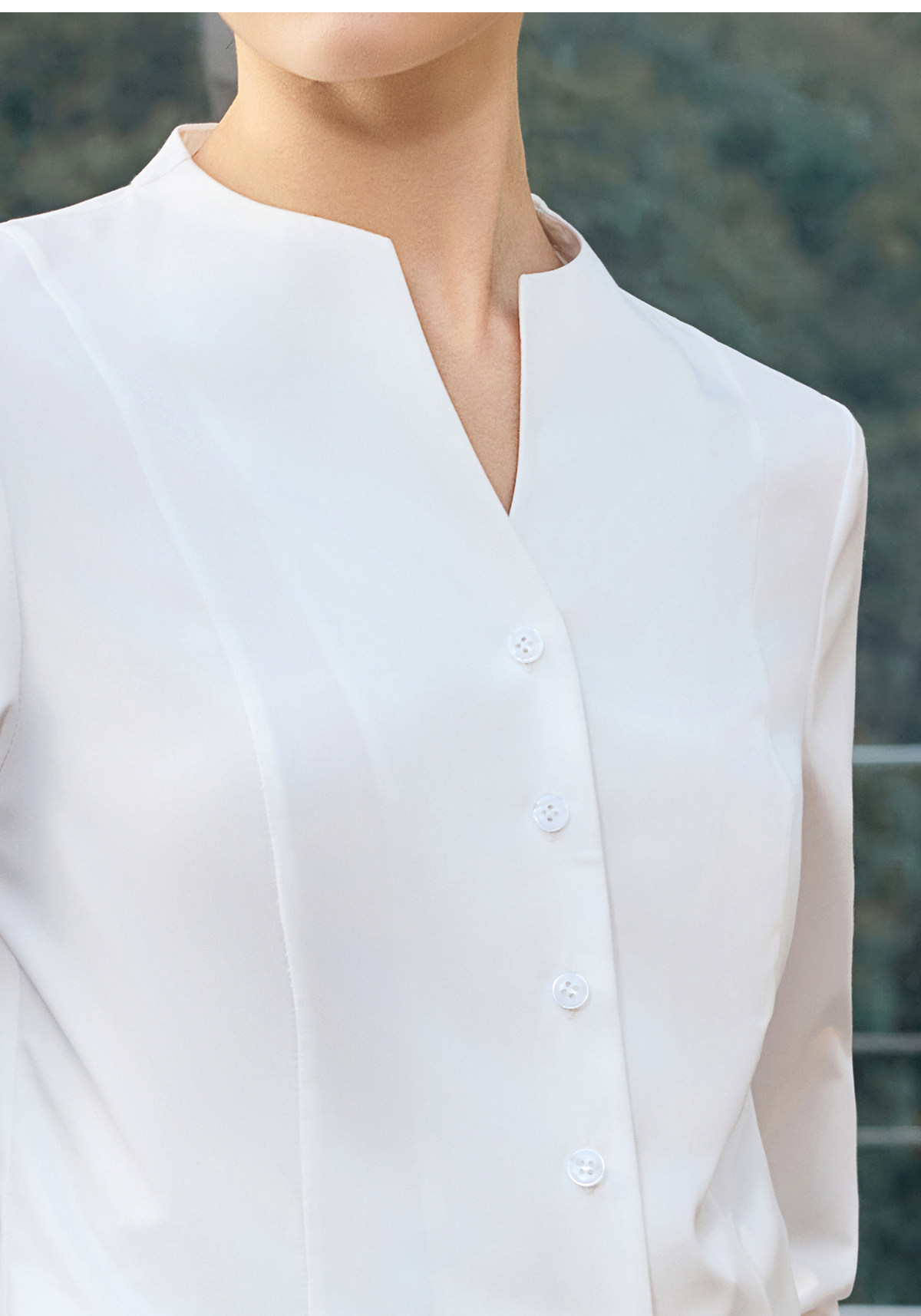 IWY/商务风白色V领衬衫女长袖职业通勤面试简约气质百搭衬衣25B945