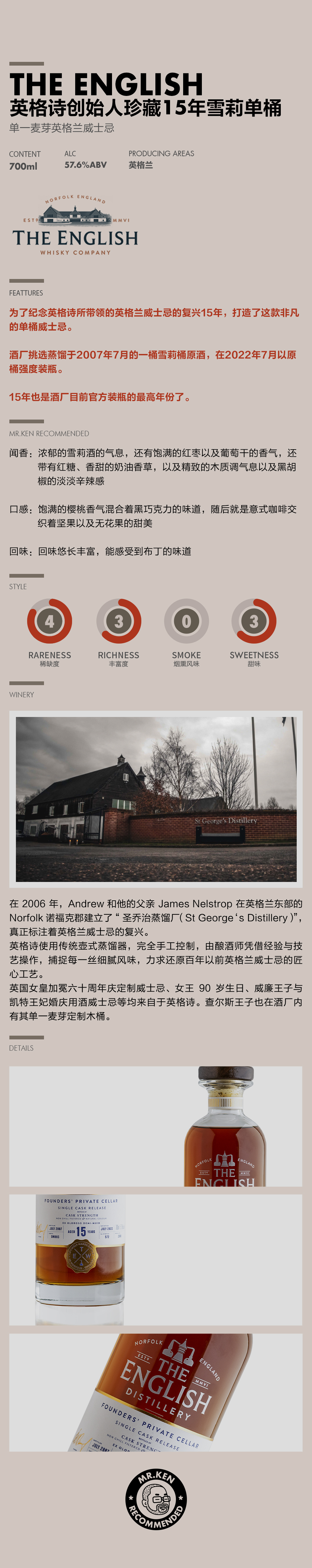 英格诗(The English)创始人珍藏15年雪莉单桶单一麦芽英格兰威士忌