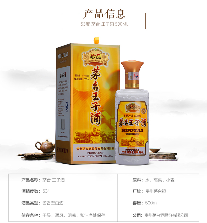 53度茅台(珍品)王子酒500ml 单瓶