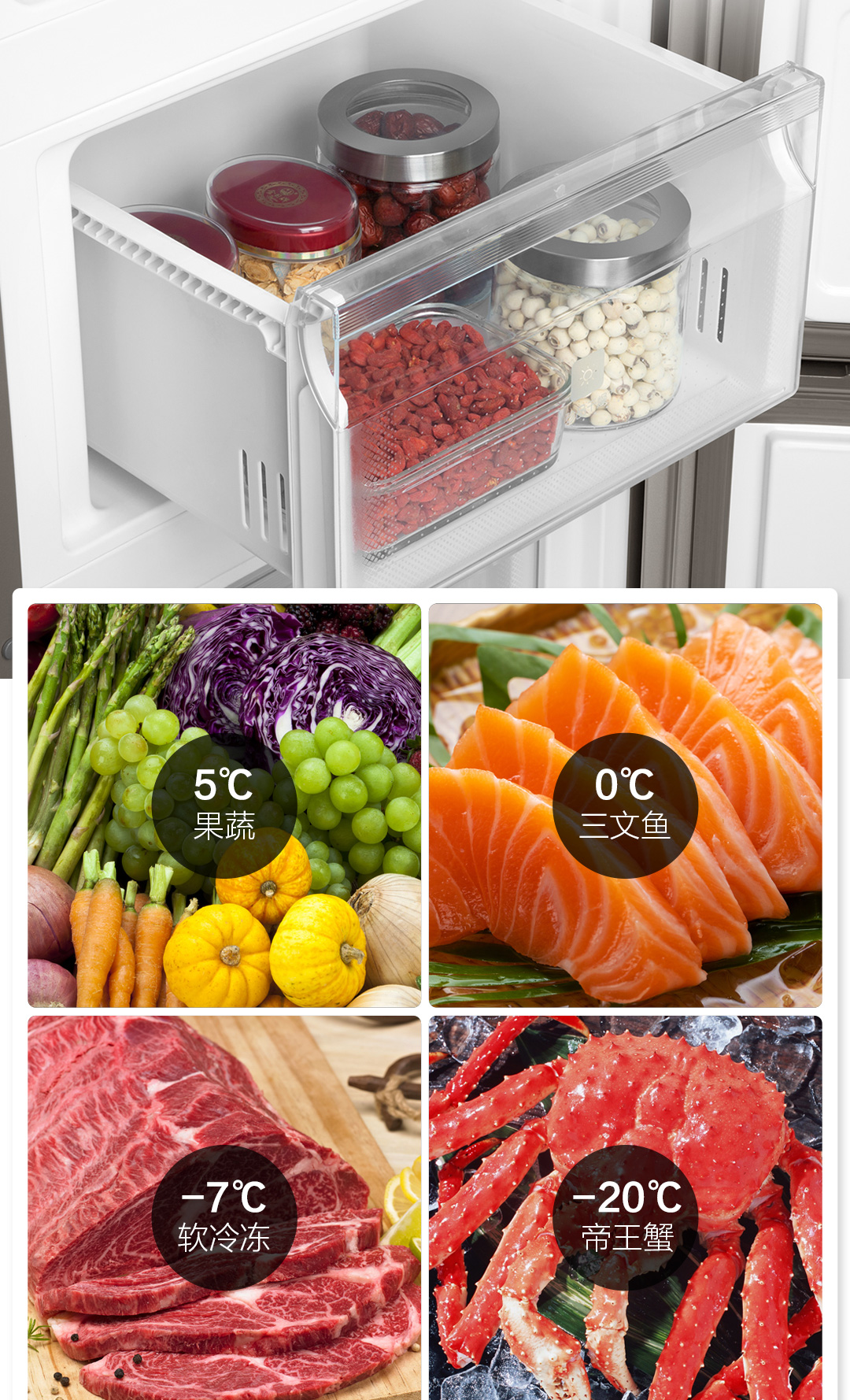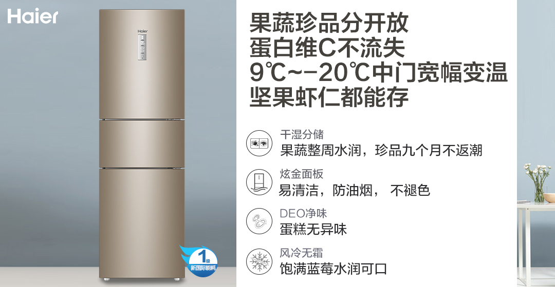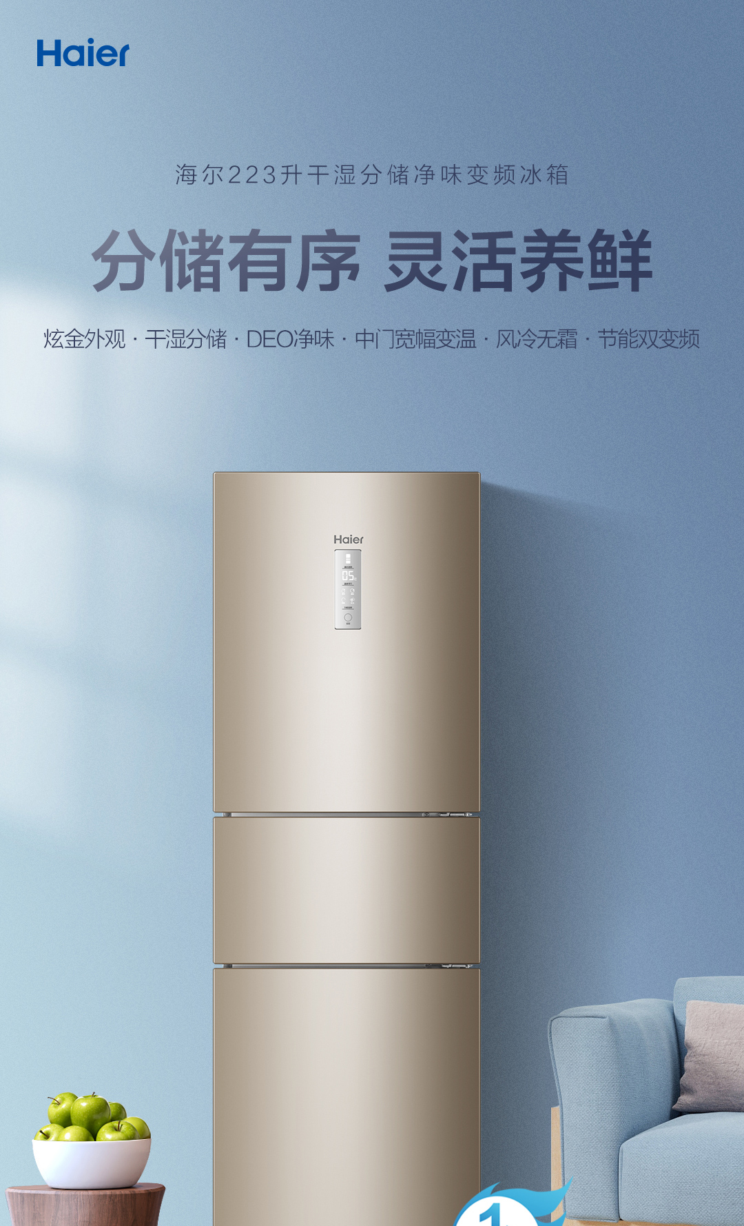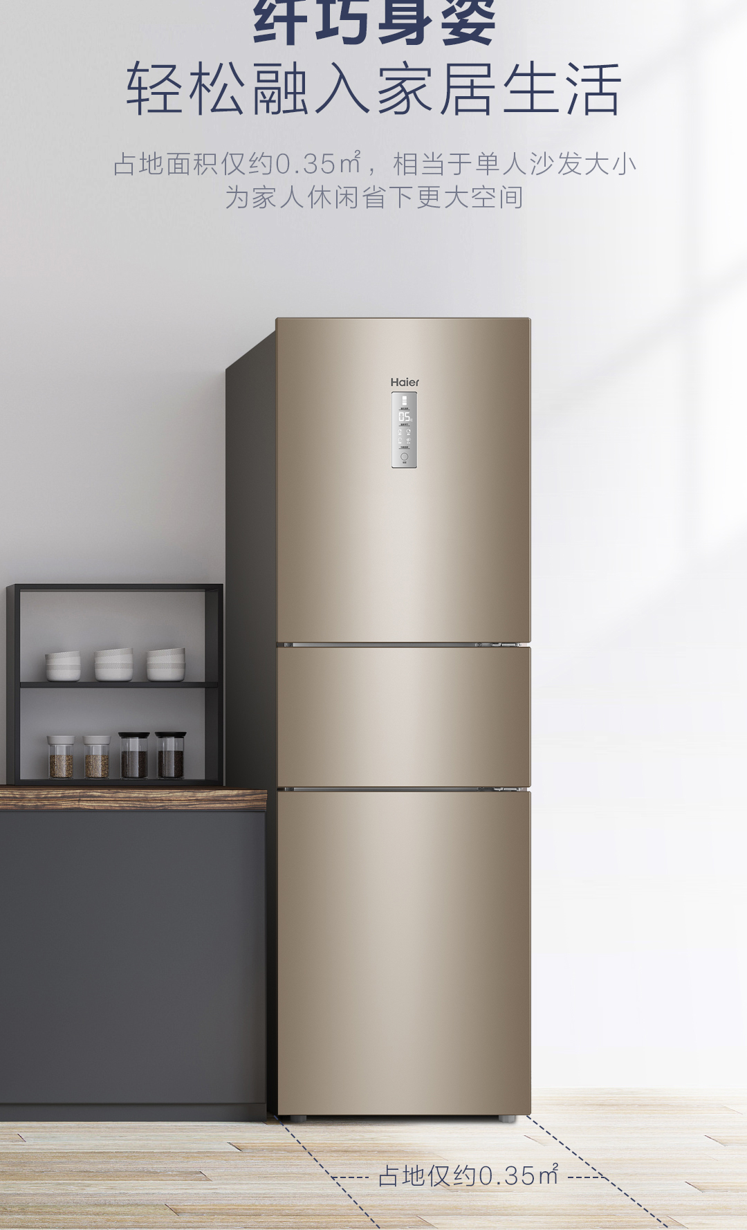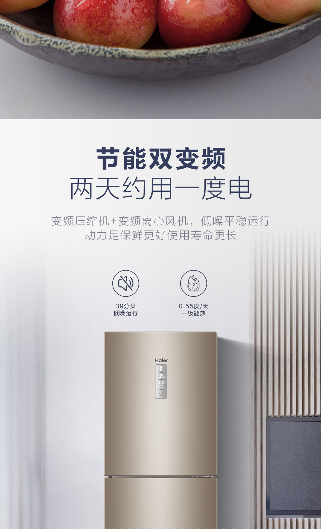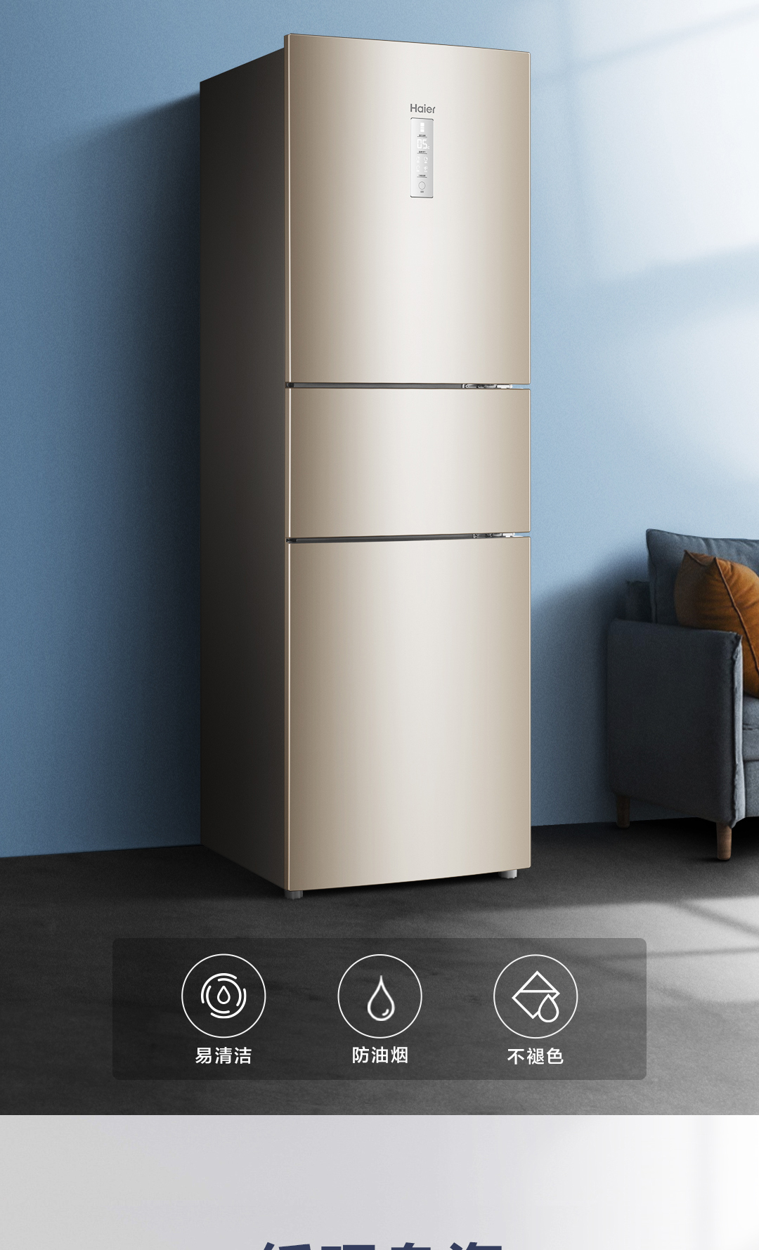 【下单前咨询地址库存】海尔 223升变频风冷无霜三门小冰箱 一级能效 干湿分储中门全温区变温DEO净味系统