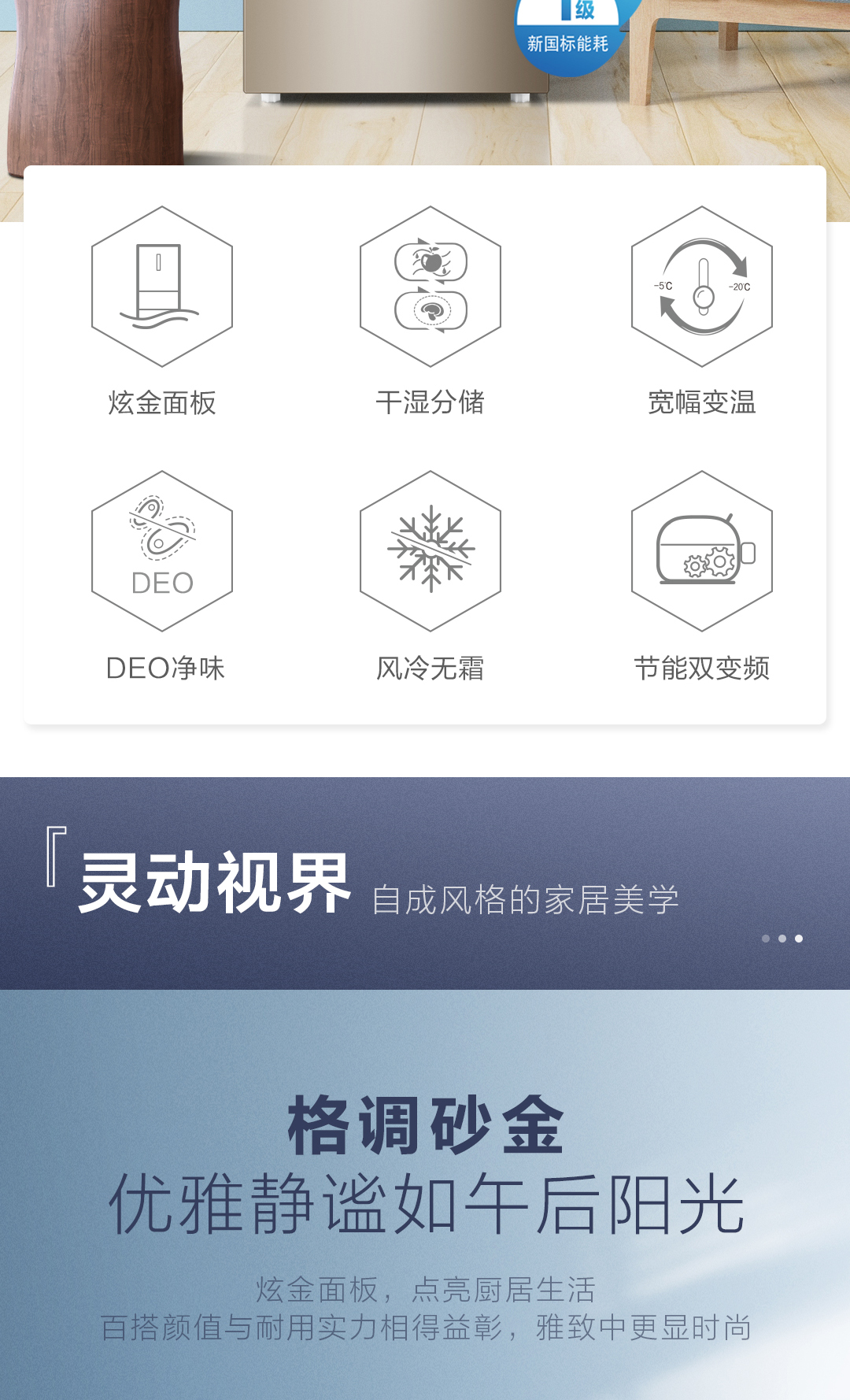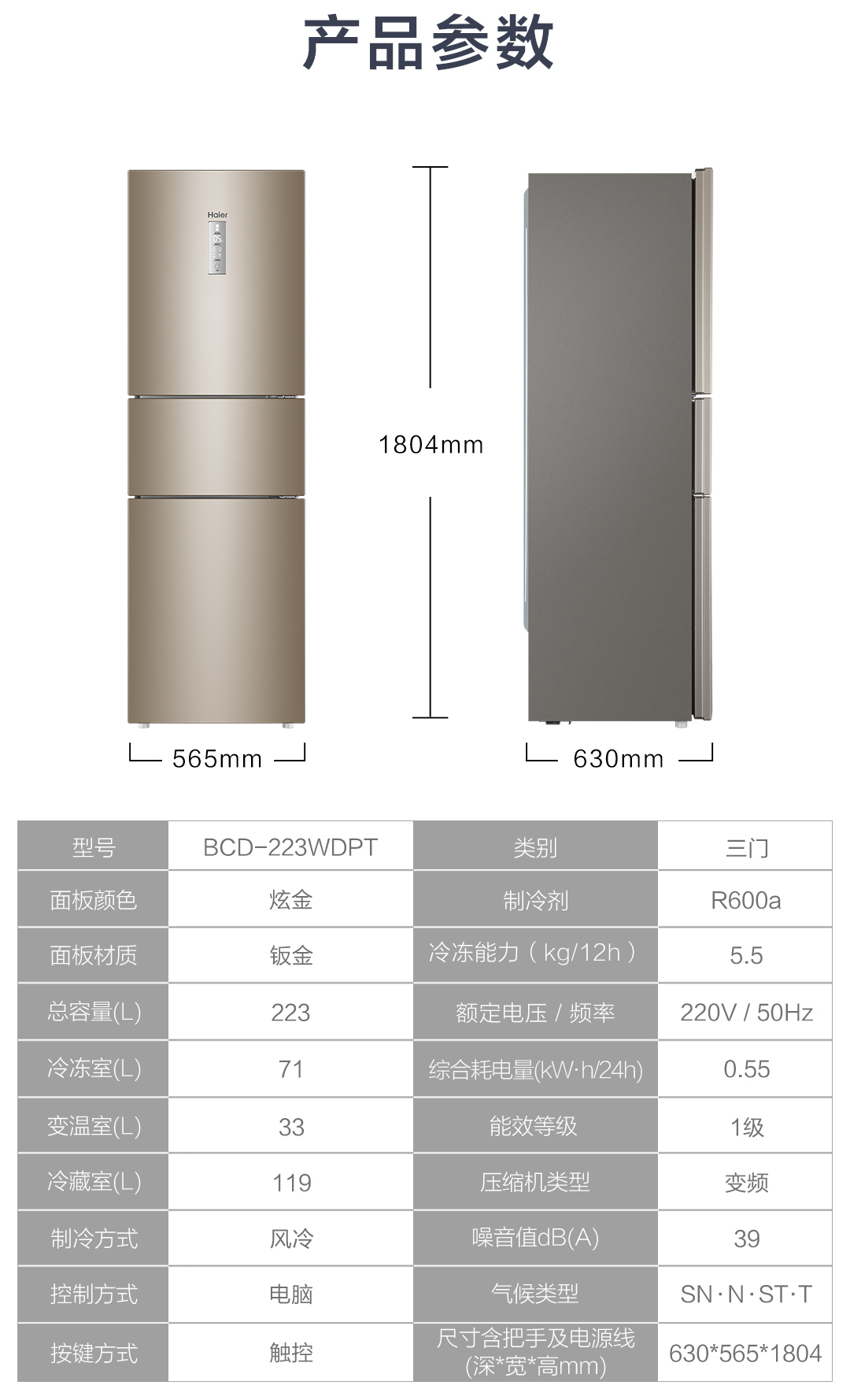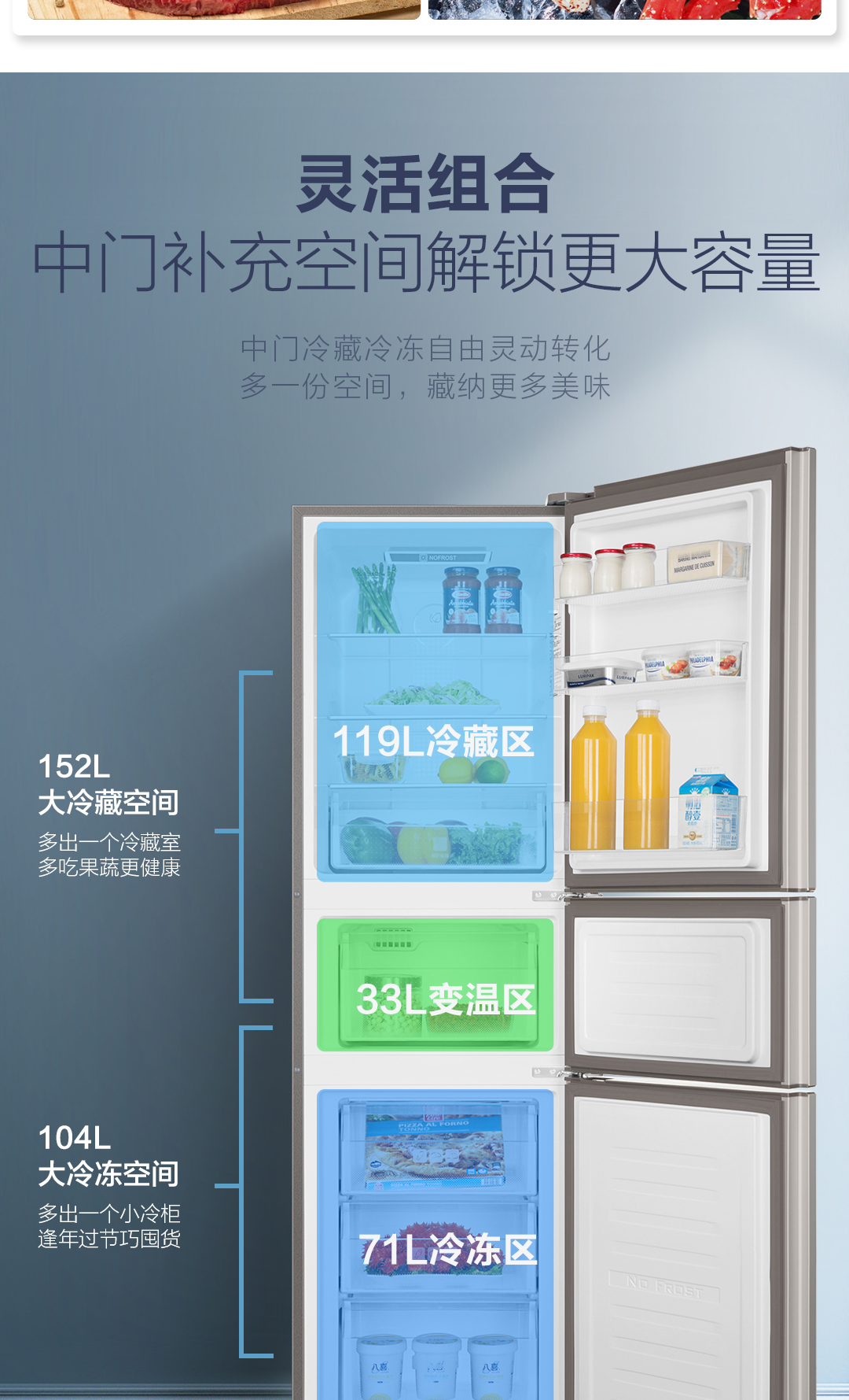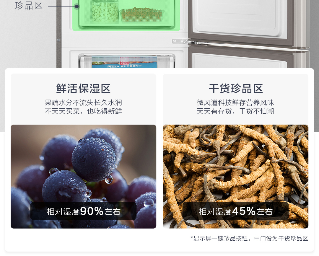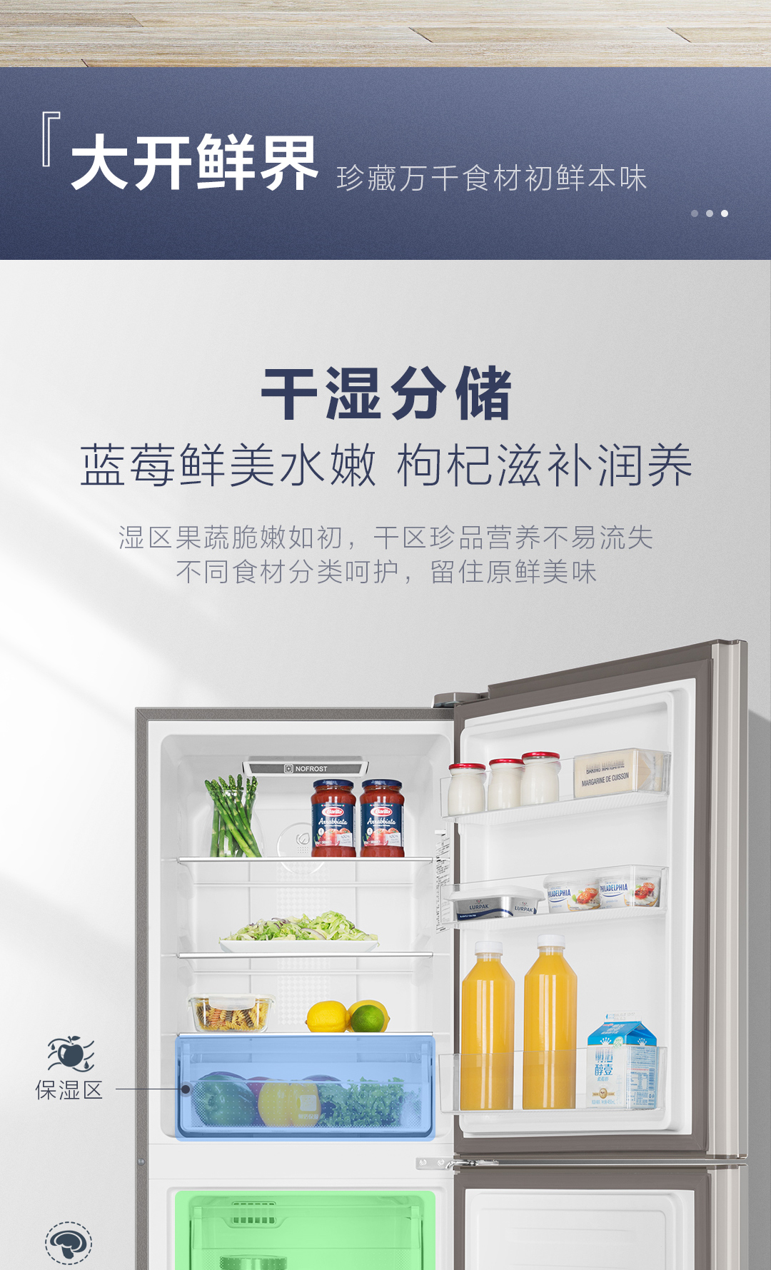 【下单前咨询地址库存】海尔 223升变频风冷无霜三门小冰箱 一级能效 干湿分储中门全温区变温DEO净味系统