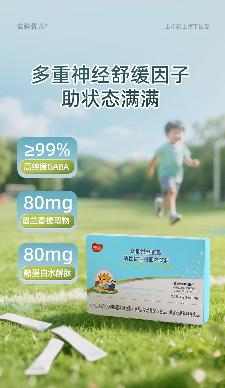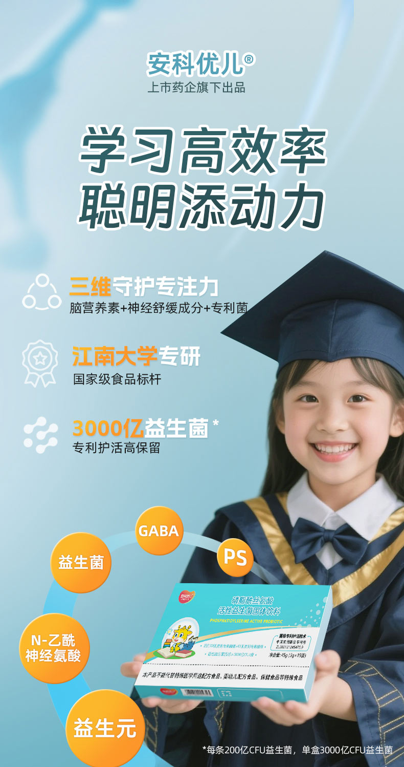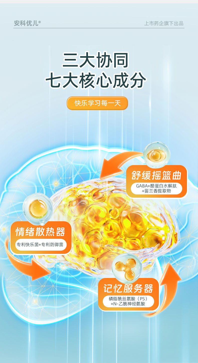 安科优儿儿童磷脂酰丝氨酸PS 专注学习 集中注意力脑黄金 青少年记忆补充