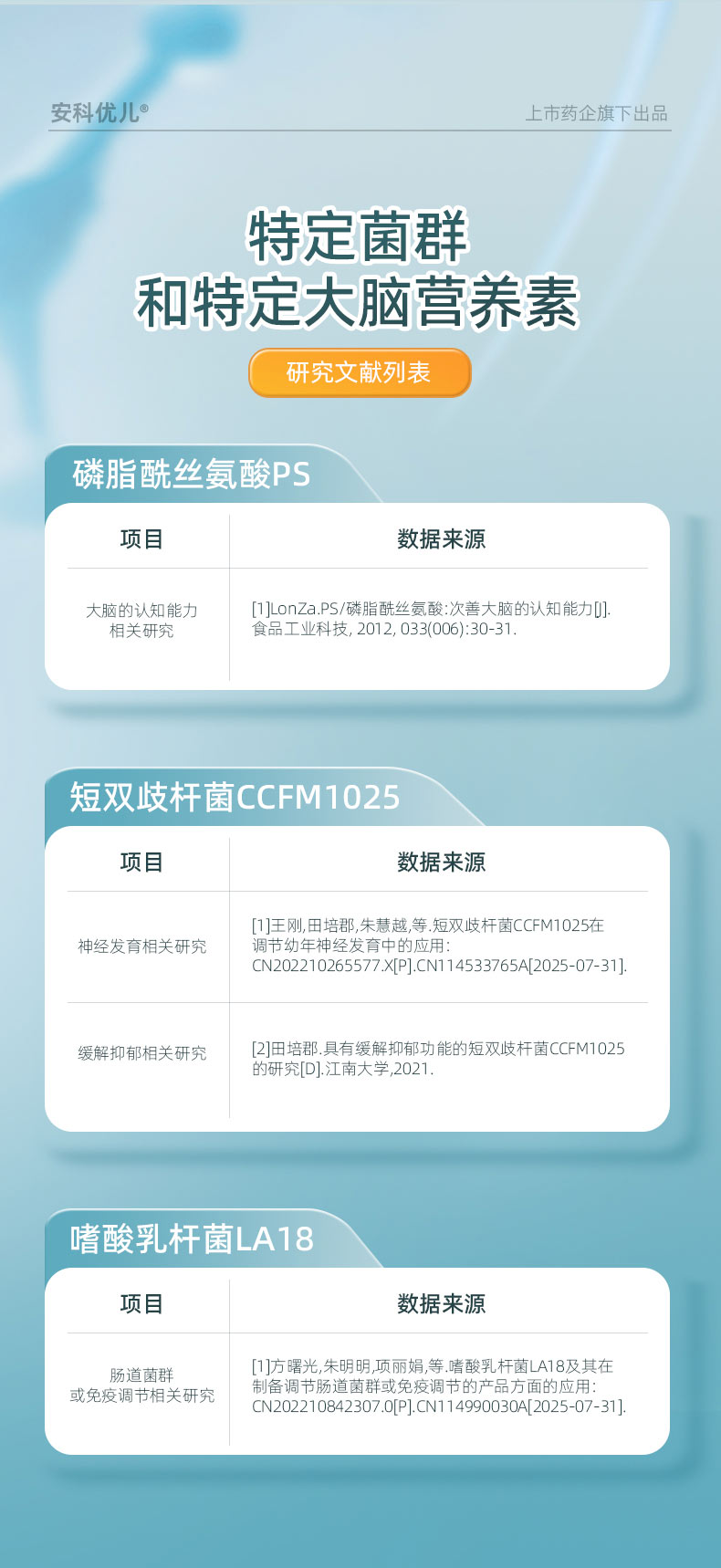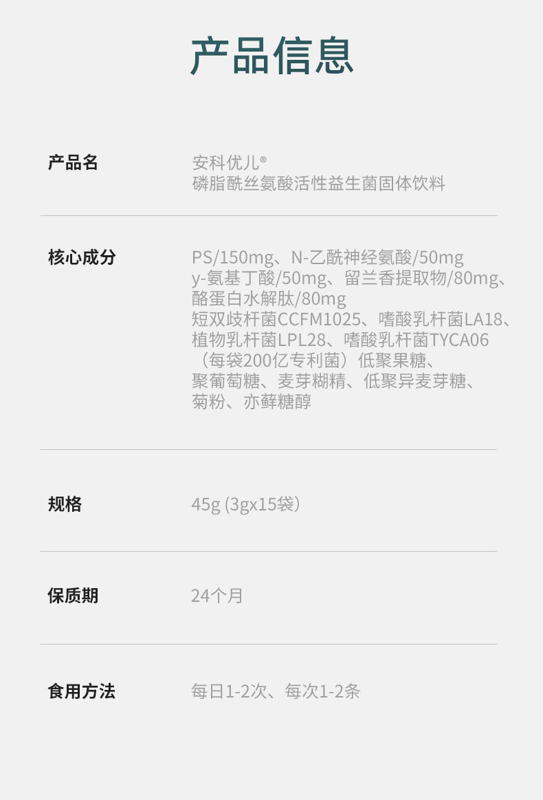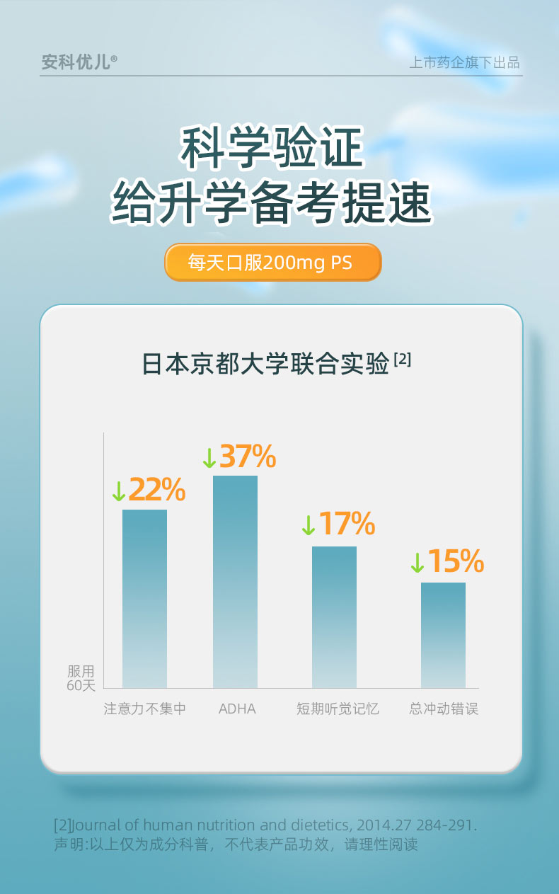 安科优儿儿童磷脂酰丝氨酸PS 专注学习 集中注意力脑黄金 青少年记忆补充