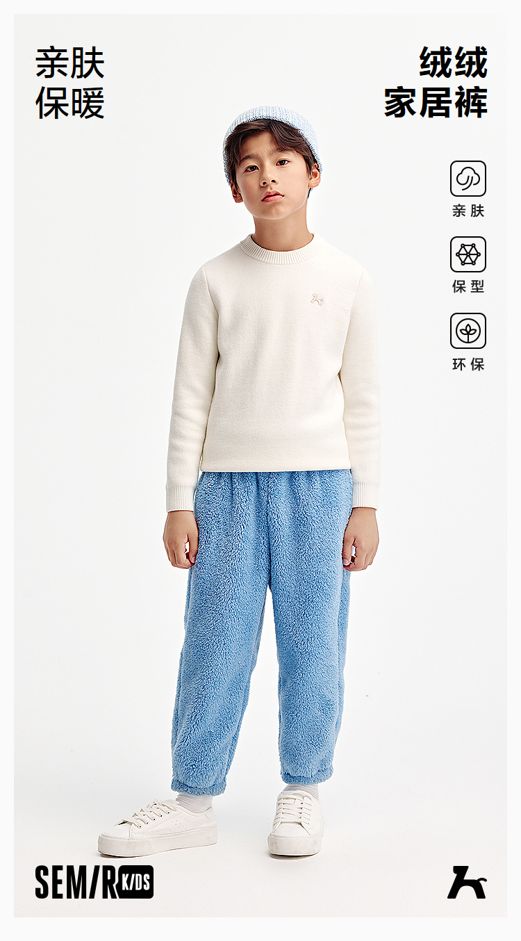 森马儿童长裤2024年新款保暖珊瑚绒宽松家居裤冬季男童女童装裤子