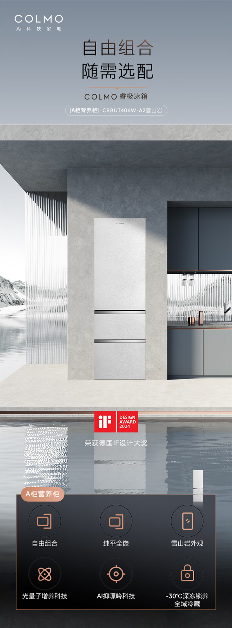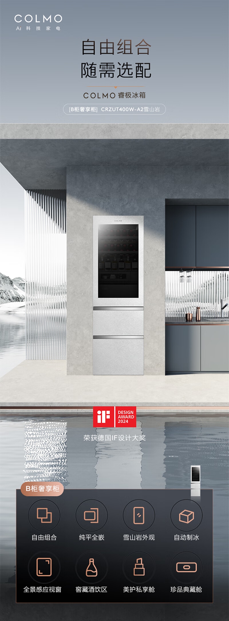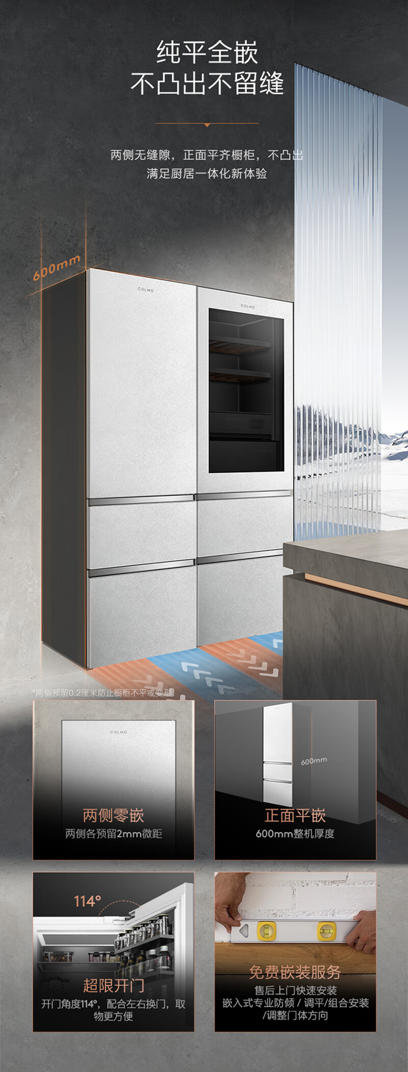 COLMO睿极大魔方组合冰箱 406L+400L 家用双系统风冷冰箱 60cm超薄全嵌 变频一级能效 自动制冰除菌保鲜 【A+B柜别墅套装】