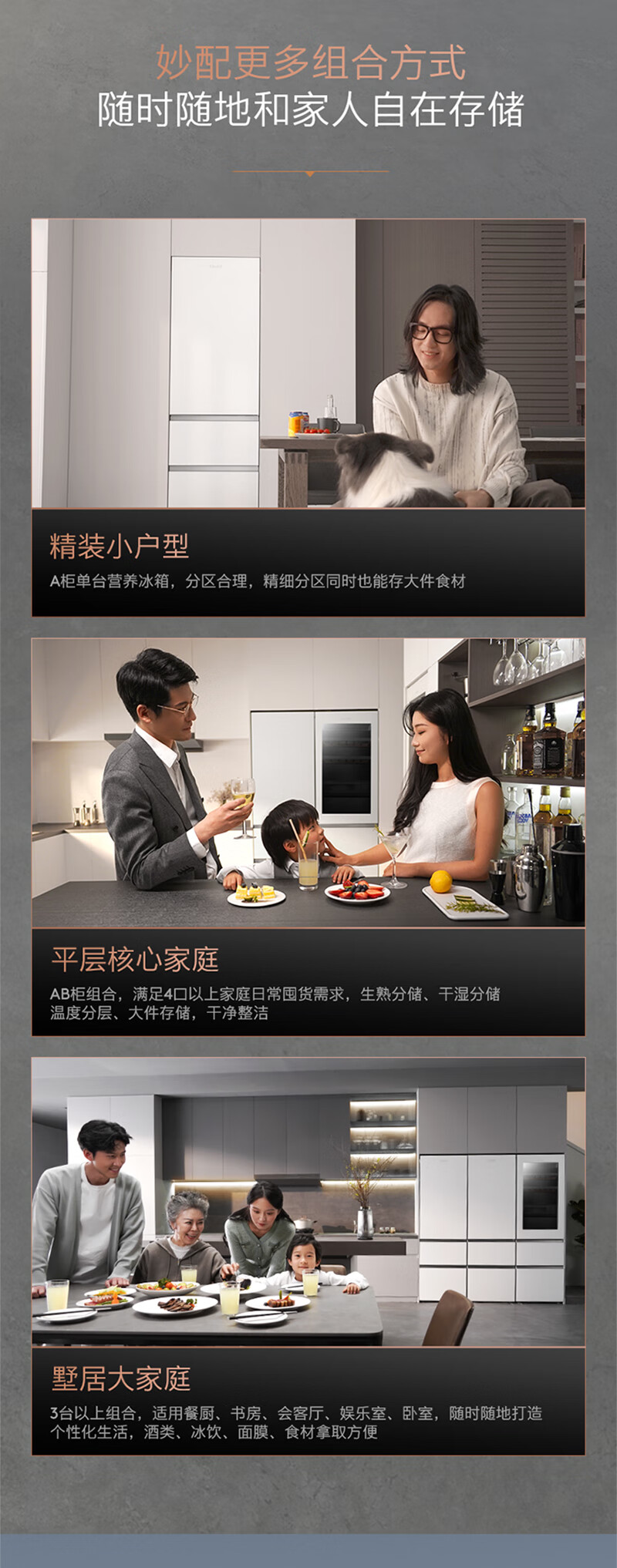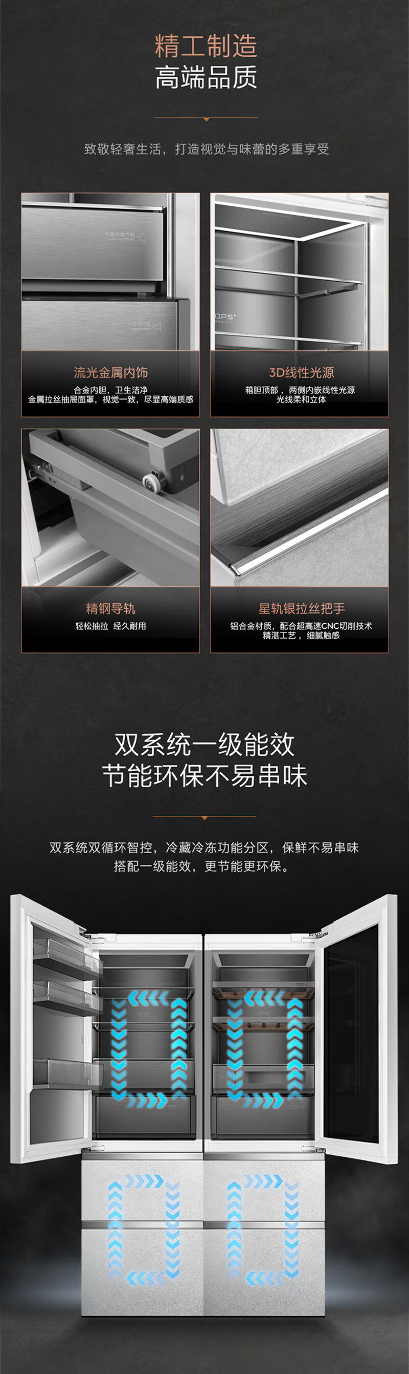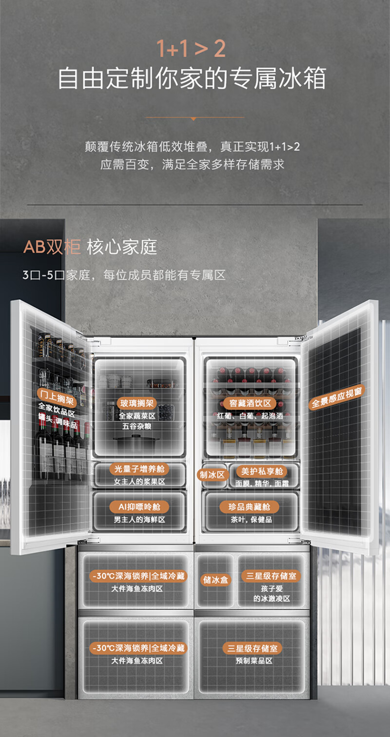 COLMO睿极大魔方组合冰箱 406L+400L 家用双系统风冷冰箱 60cm超薄全嵌 变频一级能效 自动制冰除菌保鲜 【A+B柜别墅套装】