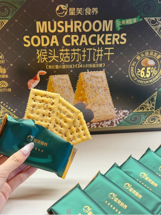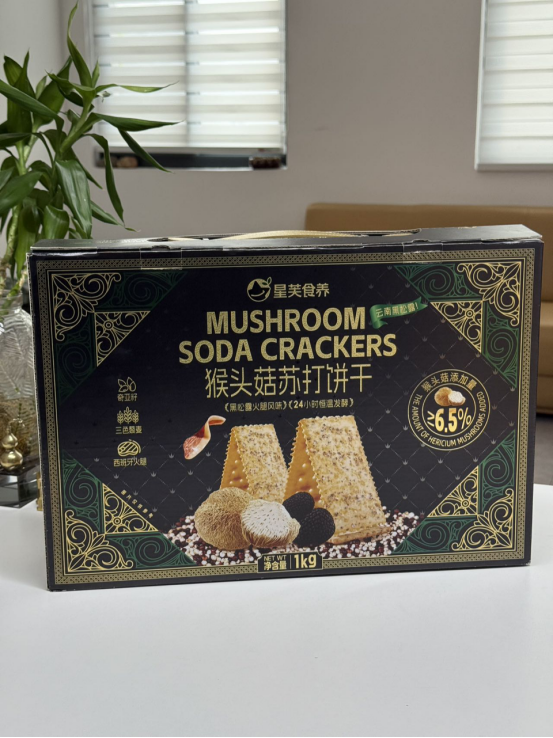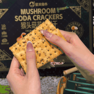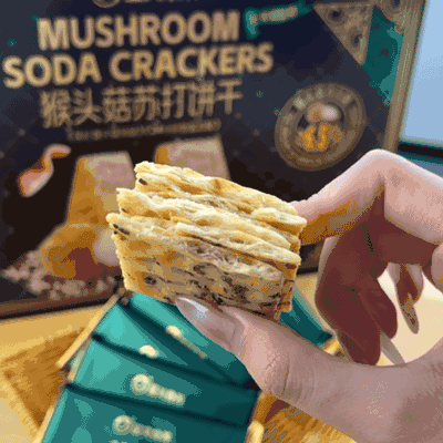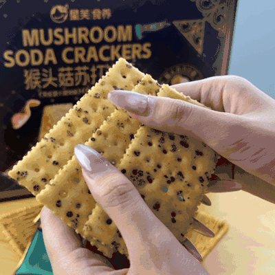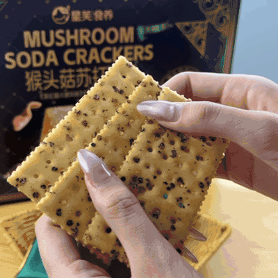 放入口中,首先感受到的是苏打饼干独有的酥脆口感, 每一口都伴随着 “嘎吱嘎吱” 的声响,那叫一个爽。紧接着, 猴头菇的鲜美味道在舌尖散开,咸香适中,一点都不油腻,越嚼越香, 让人欲罢不能。而且,它不像一些普通饼干吃完后会觉得口干, 这款猴头菇苏打饼干咽下后,口腔里还留有余香,特别舒服。