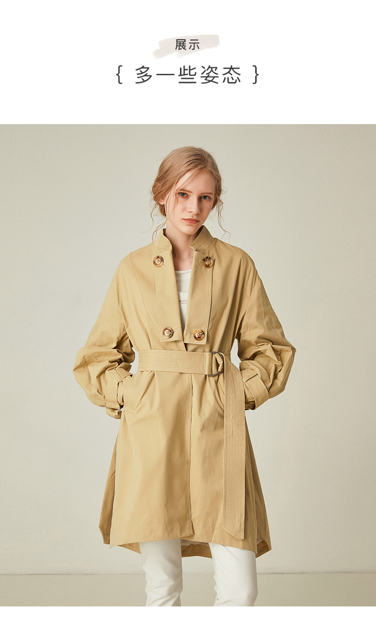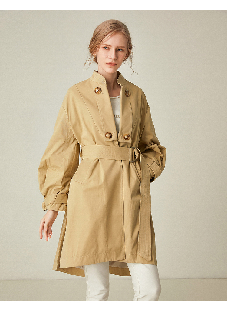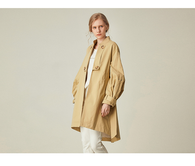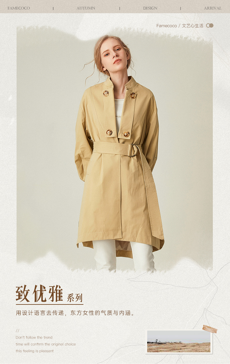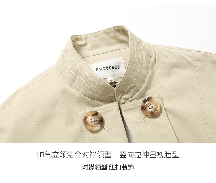 Famecoco范可儿卡其色风衣女立领设计感外套F185AA016