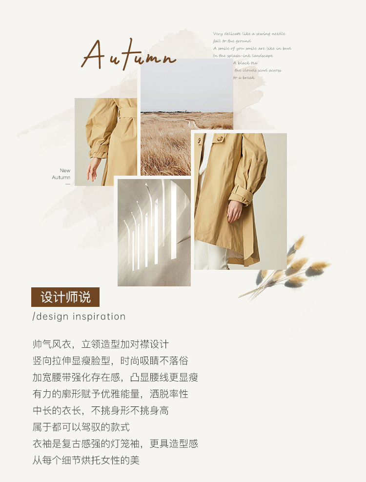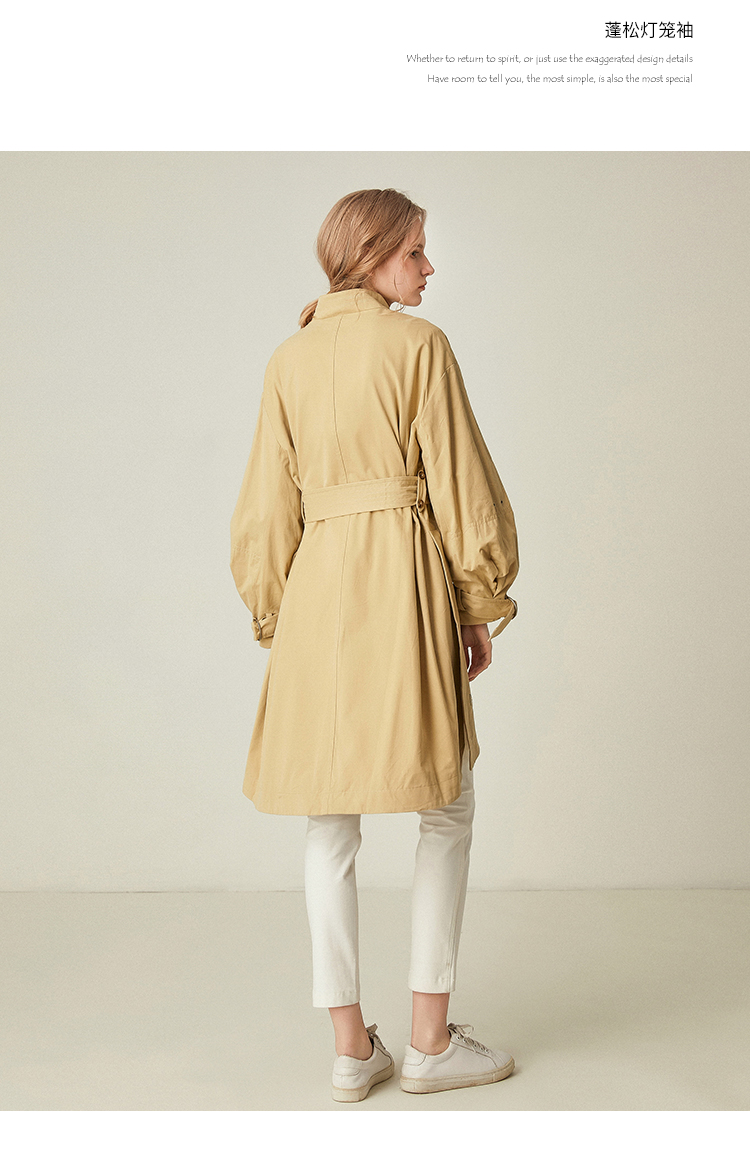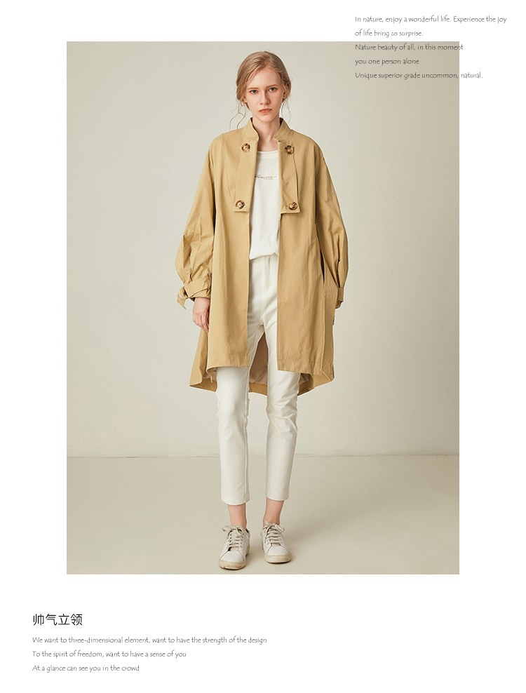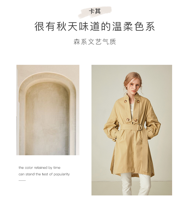 Famecoco范可儿卡其色风衣女立领设计感外套F185AA016