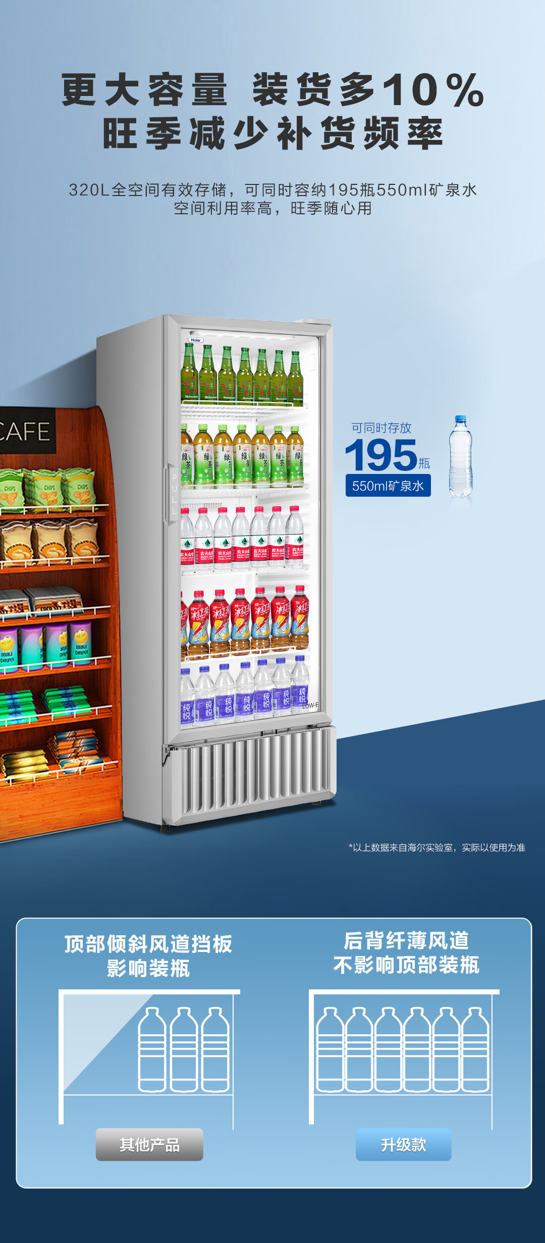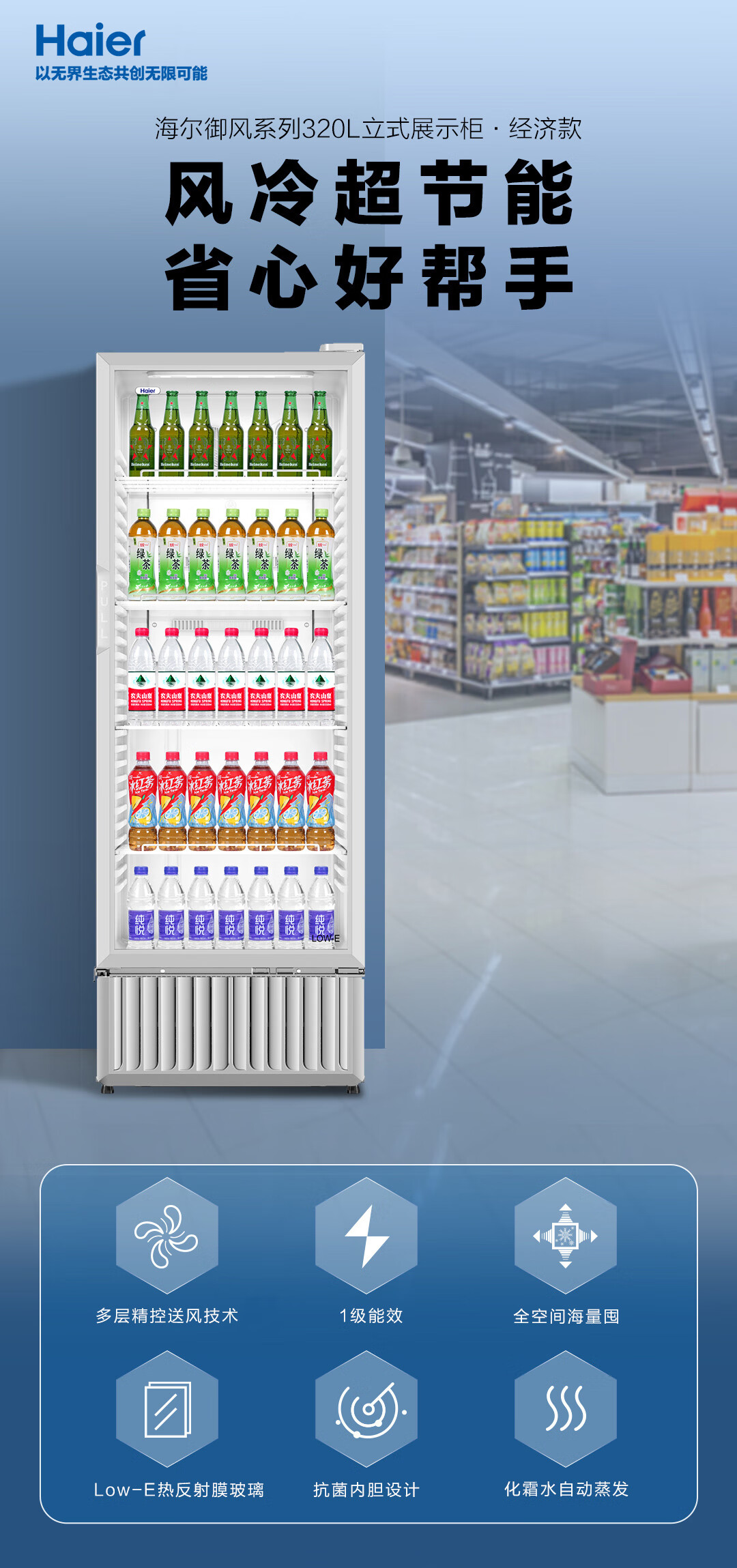 海尔(Haier)320升 多层风冷 全空间 不倒水风冷无霜 立式展示柜 冰柜 饮料冷藏柜 商用保鲜柜冷柜SC-332