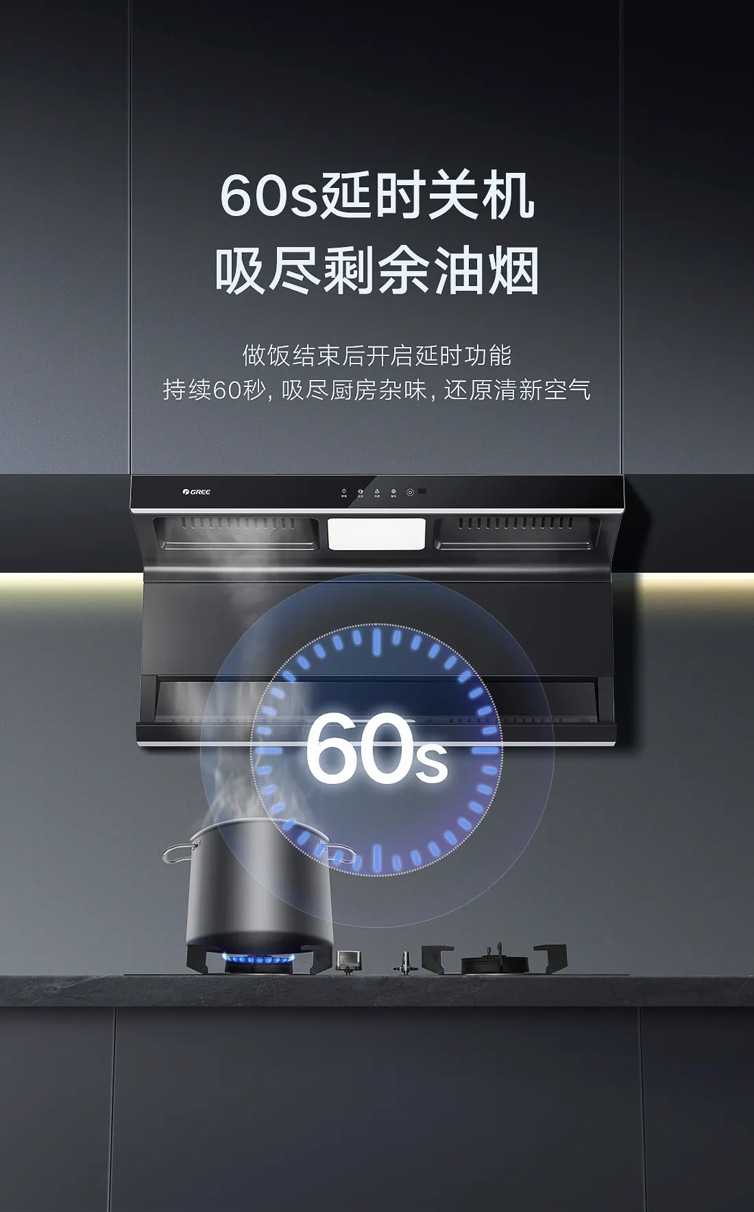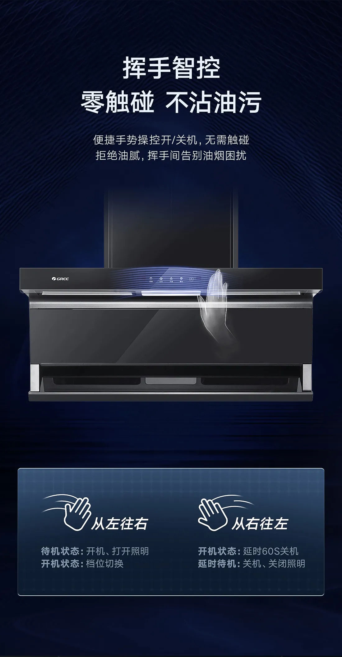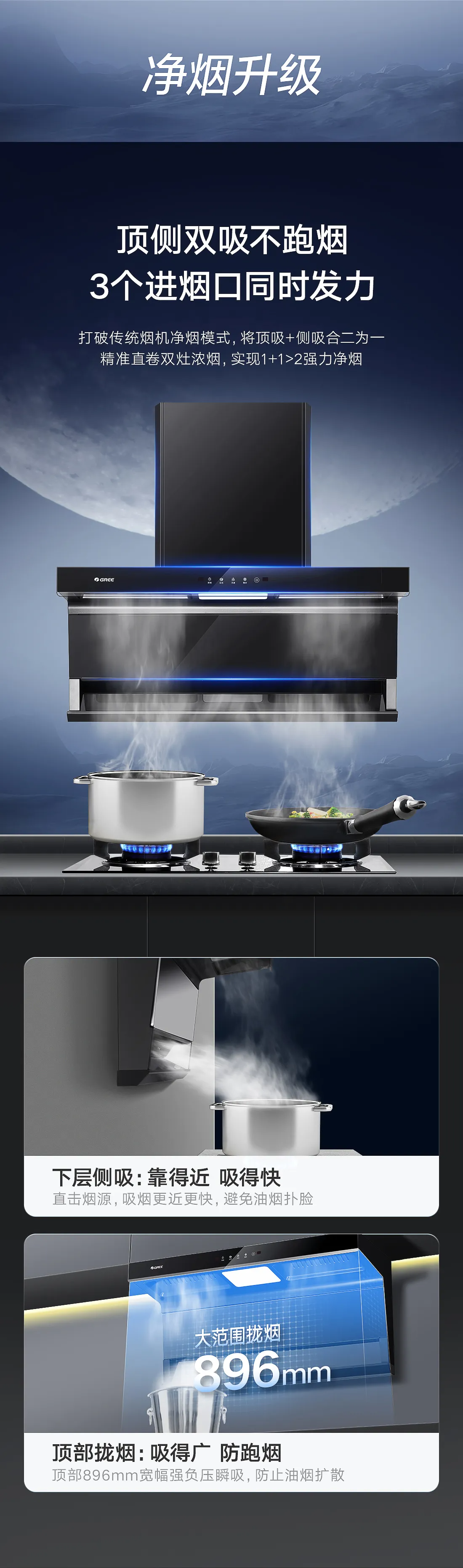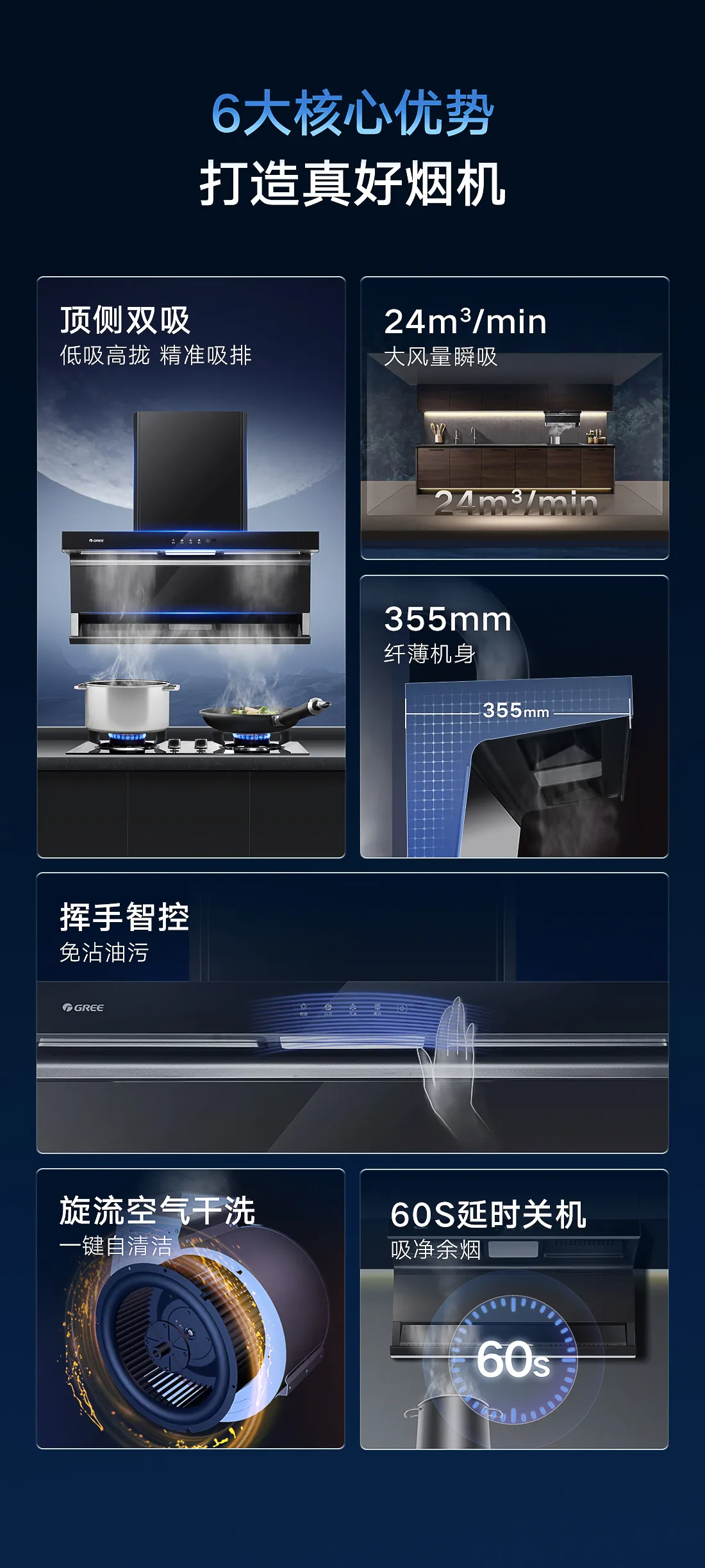 格力·风神i7吸油烟机 顶侧双吸 CXW-368-J6D01 黑色