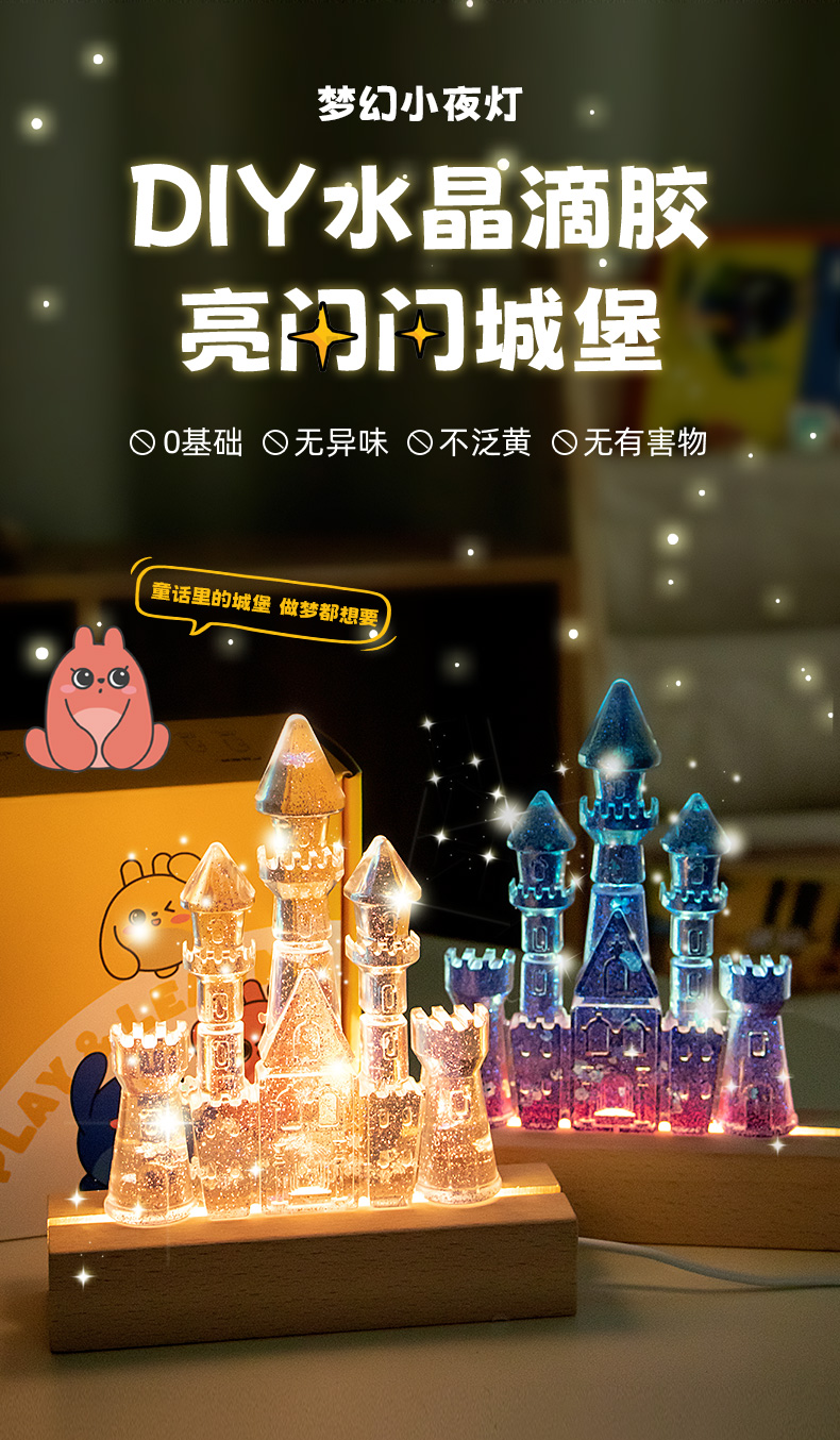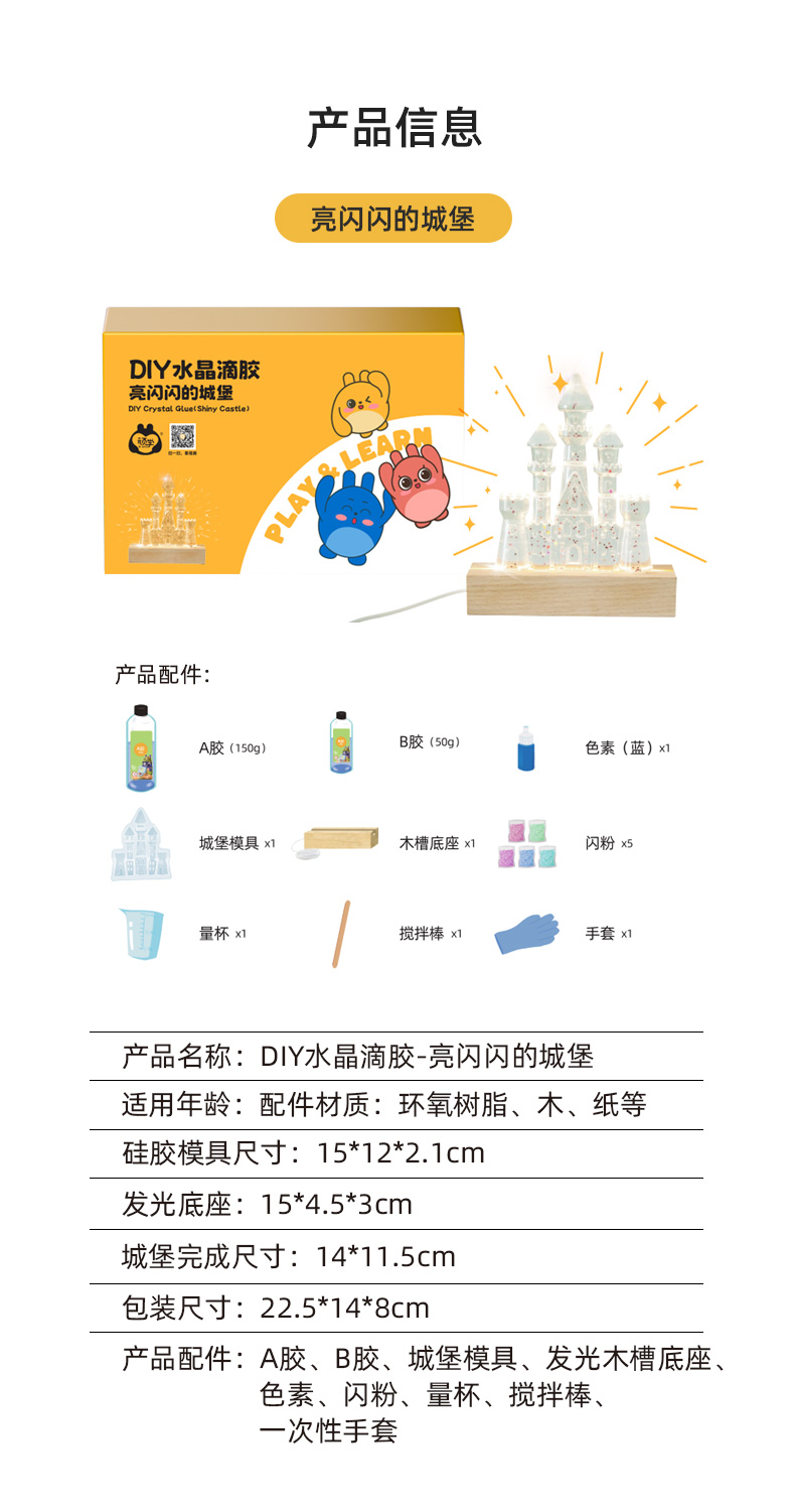 新款!【自然风干 无需烘烤】顽学gwiz发光城堡diy水晶玩具儿童手工玩具