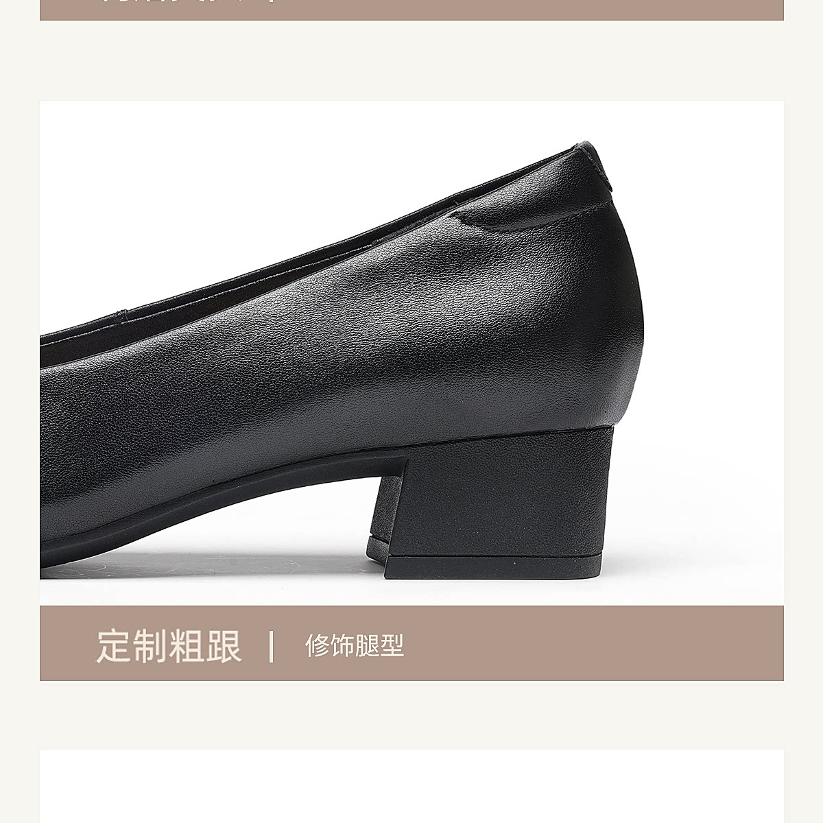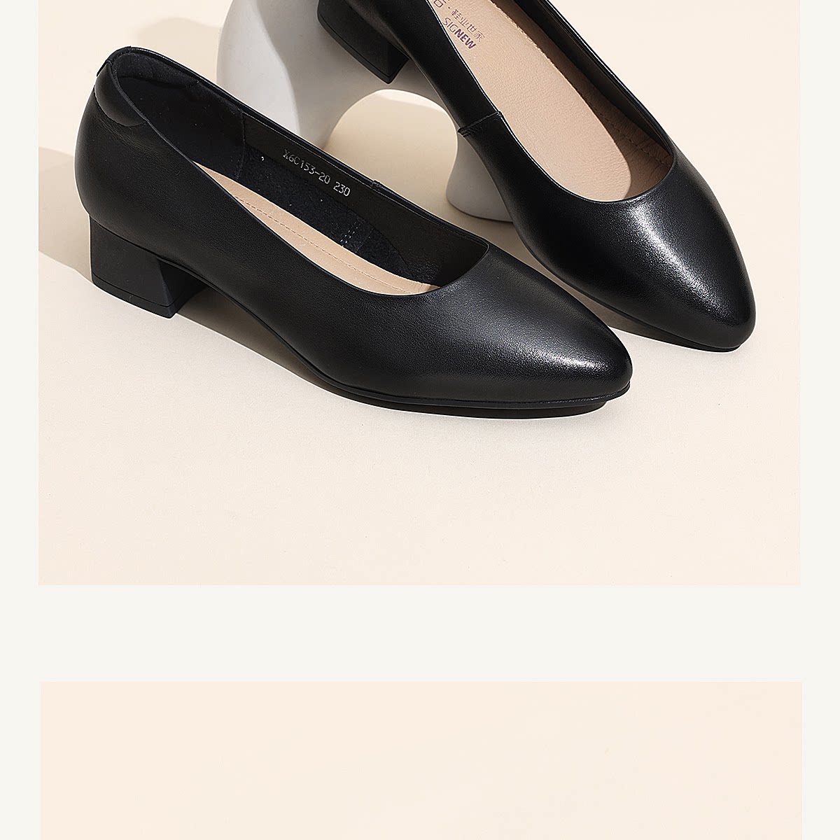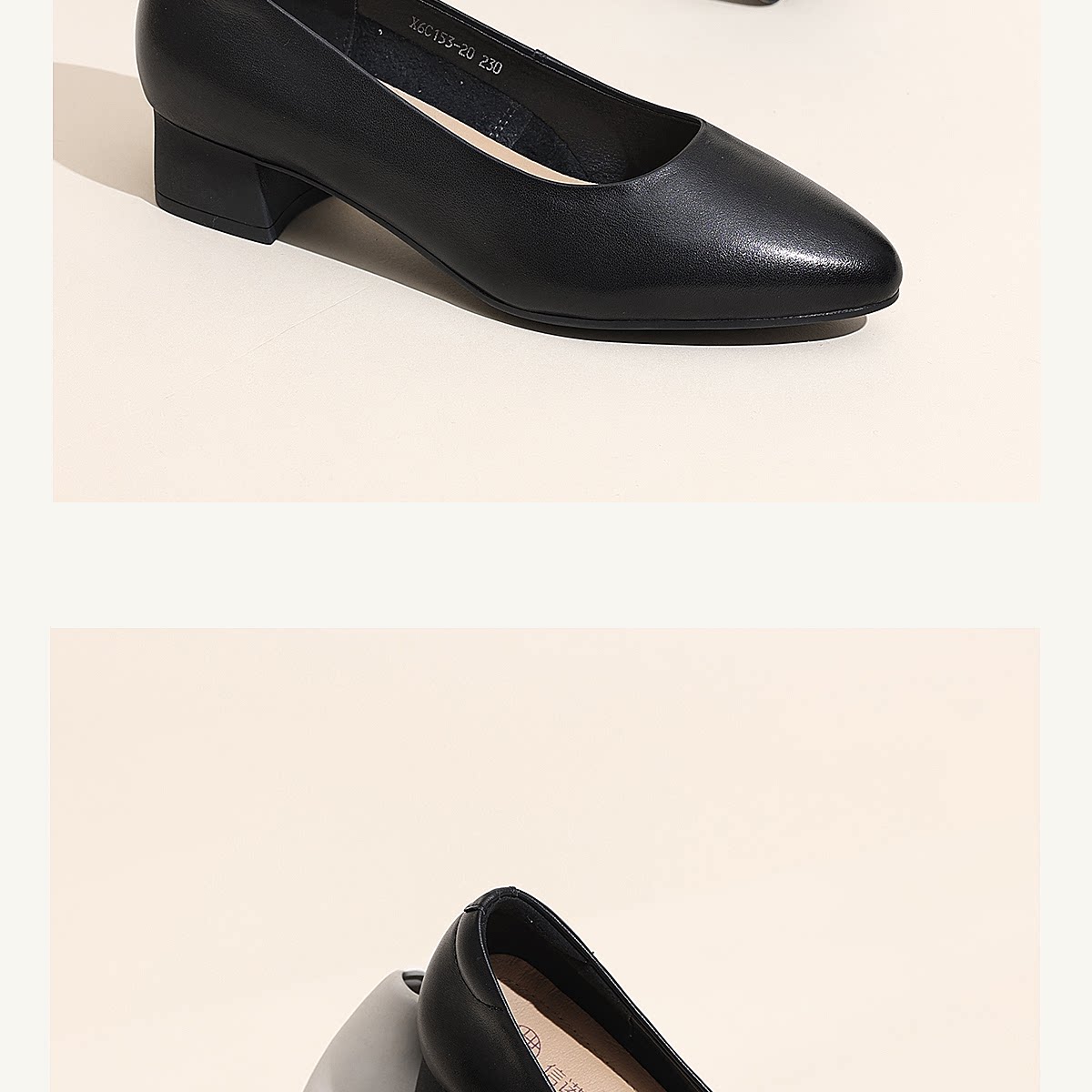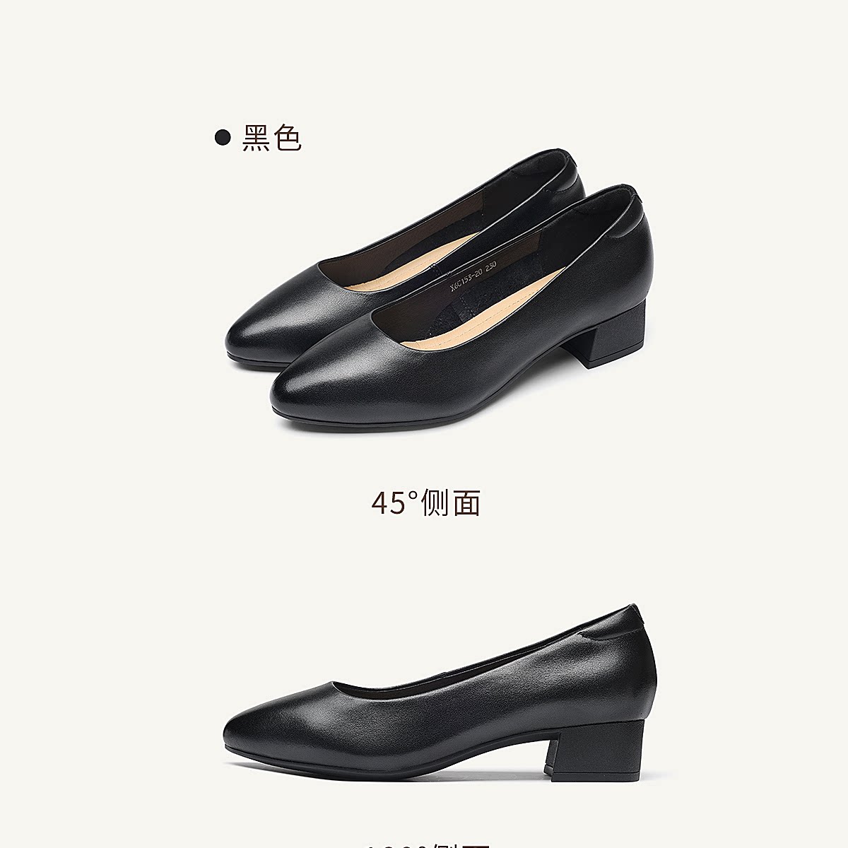 简约风黑色尖头浅口单鞋女粗跟通勤百搭工作鞋X6C153-20