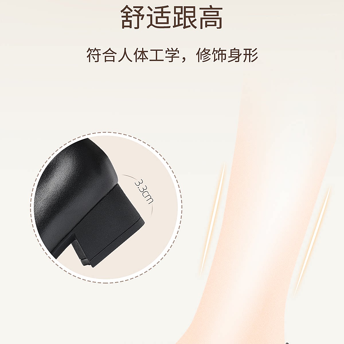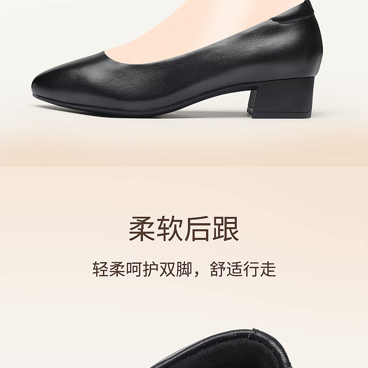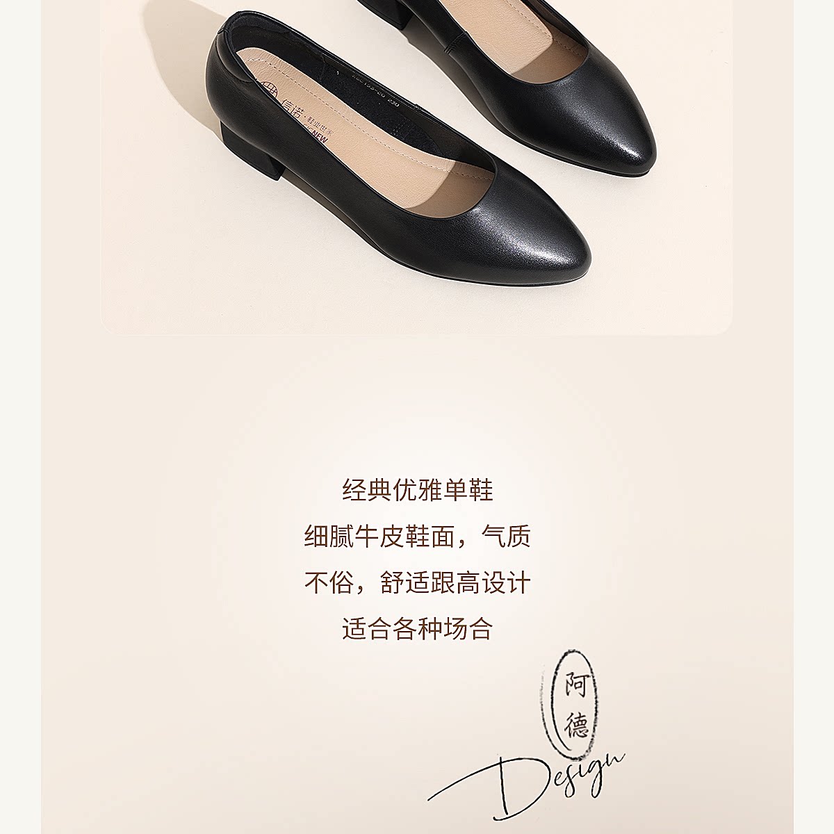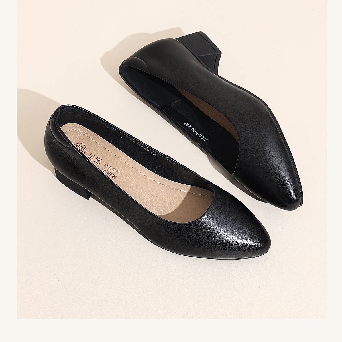 简约风黑色尖头浅口单鞋女粗跟通勤百搭工作鞋X6C153-20