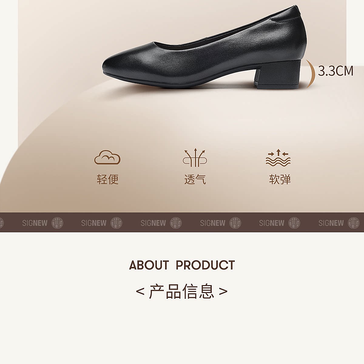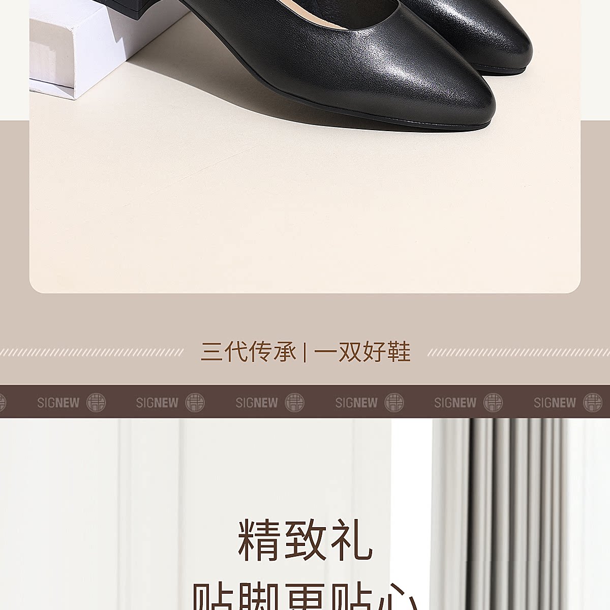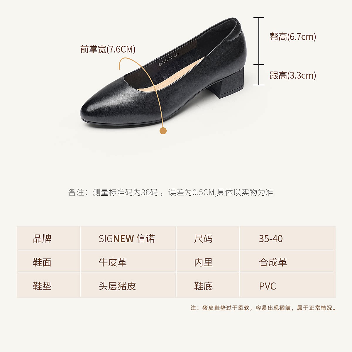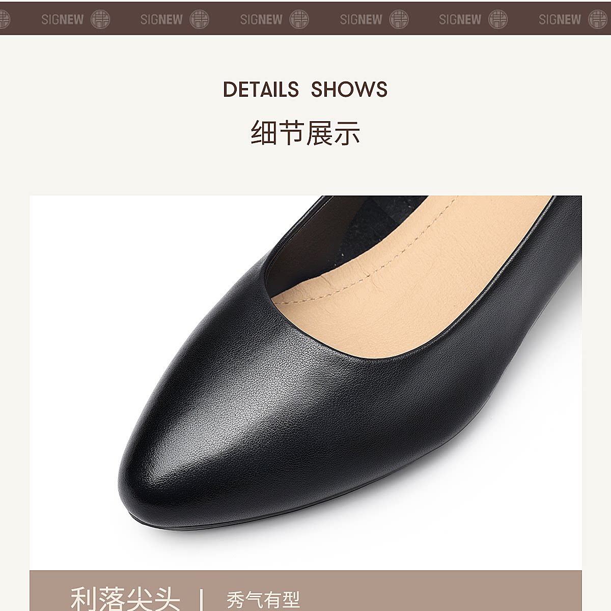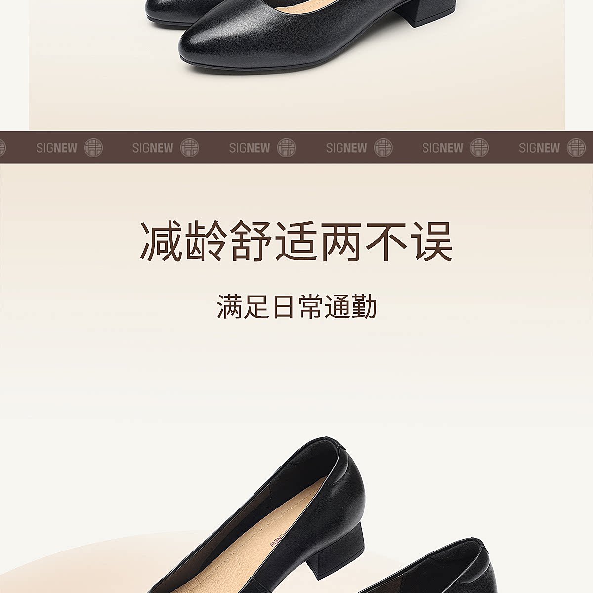 简约风黑色尖头浅口单鞋女粗跟通勤百搭工作鞋X6C153-20