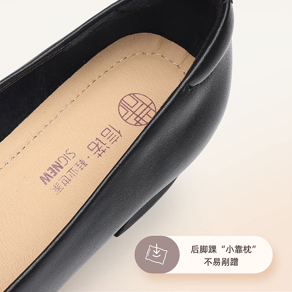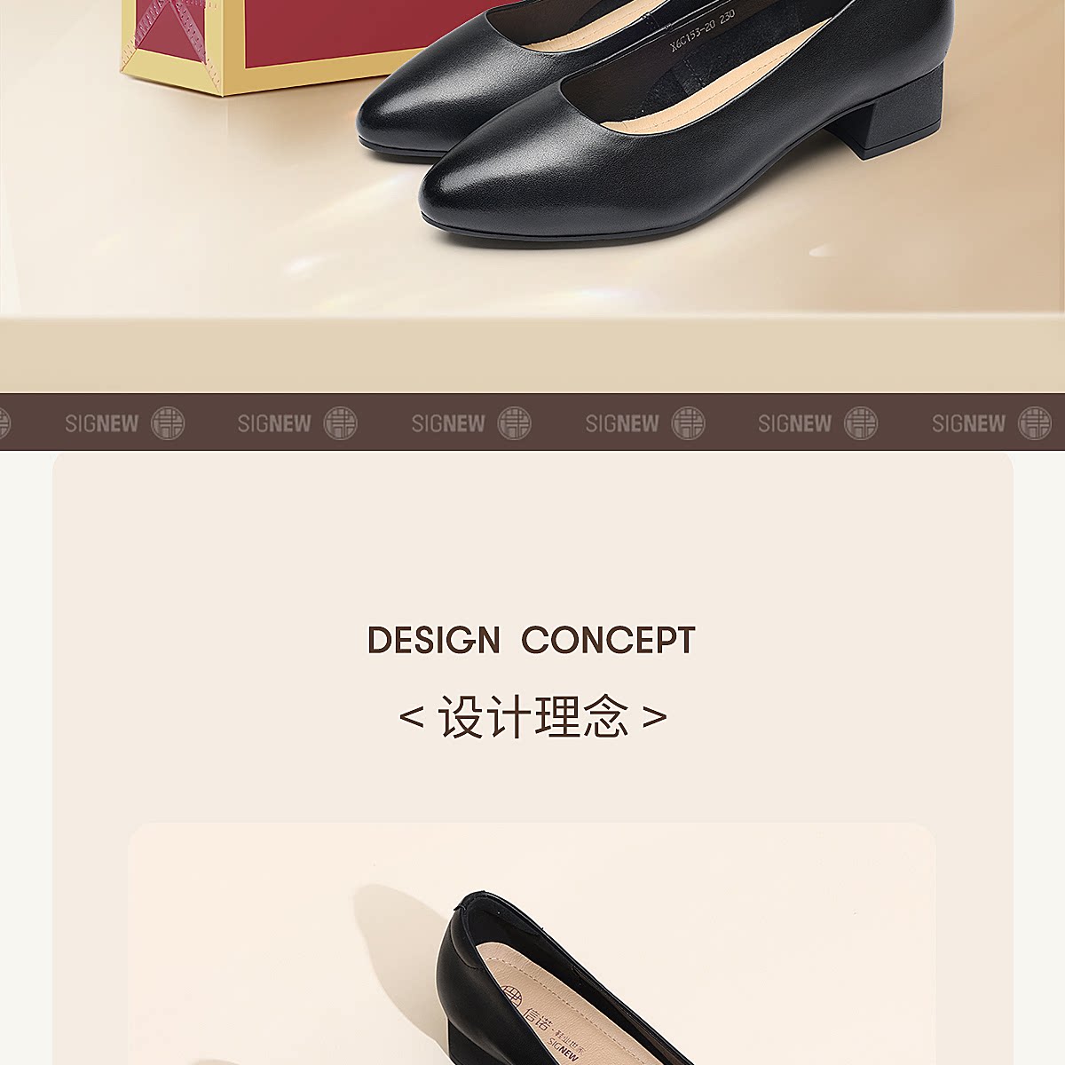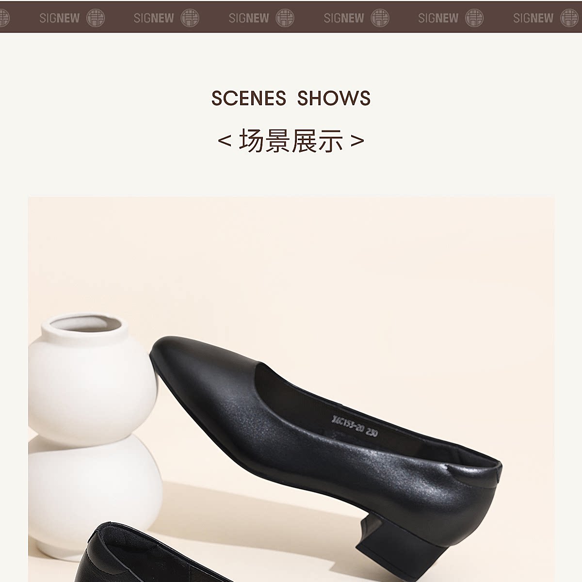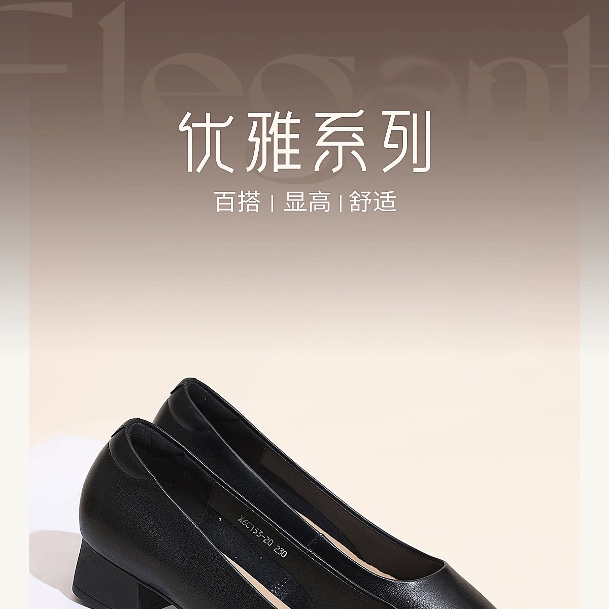 简约风黑色尖头浅口单鞋女粗跟通勤百搭工作鞋X6C153-20