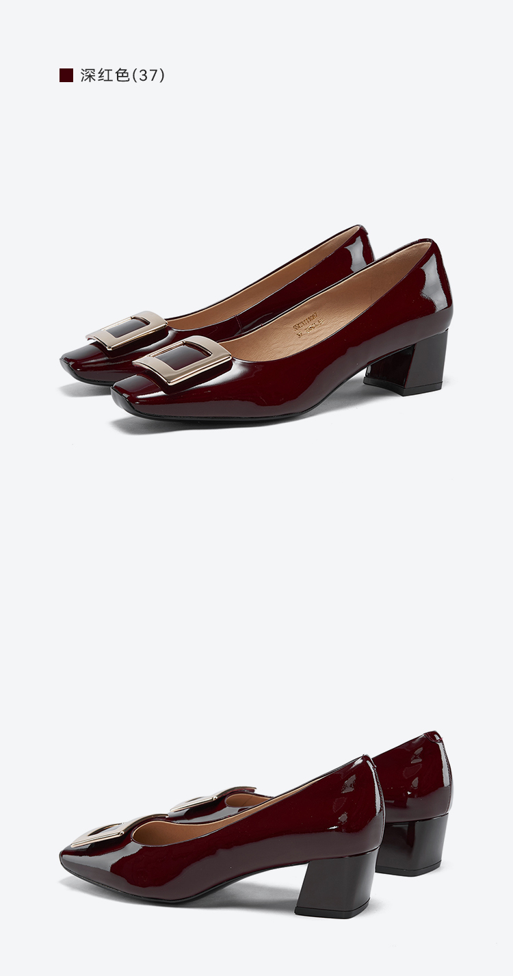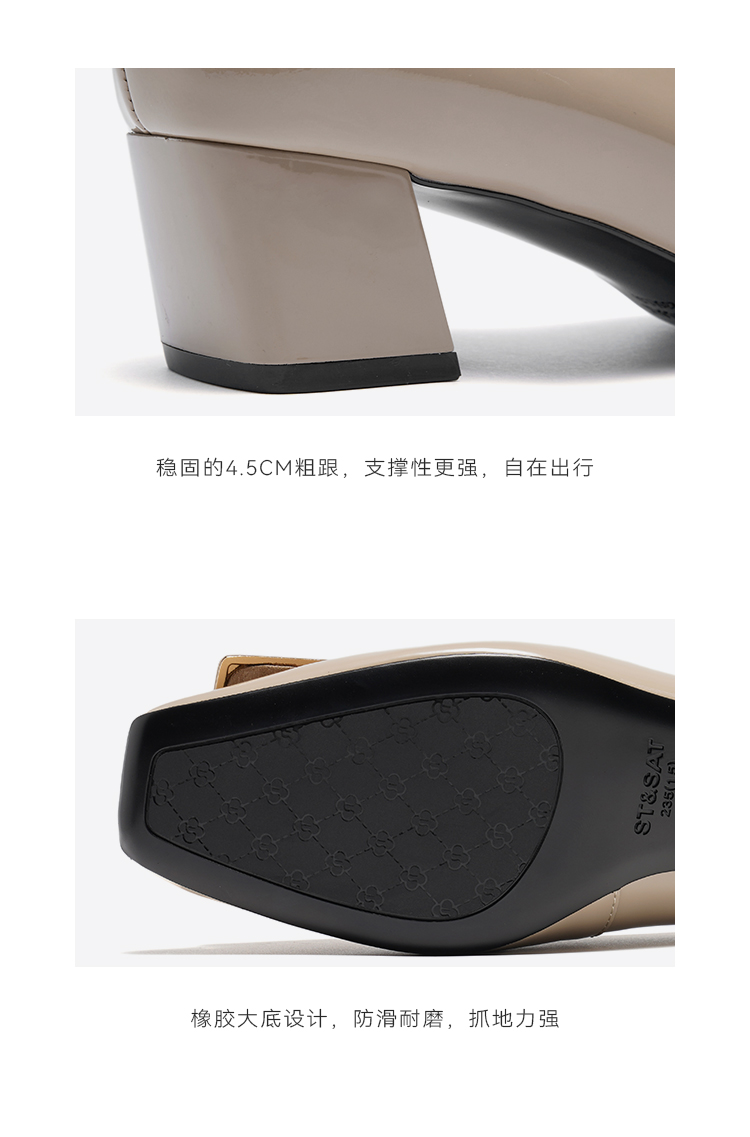 星期六经典方头金属扣粗跟单鞋SSC3111087