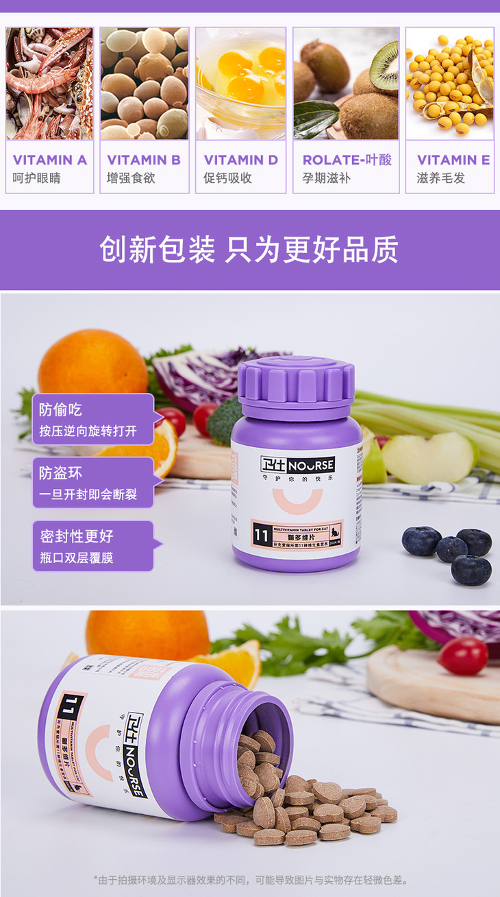 【一般贸易】卫仕猫多维复合维生素片200片 宠物幼猫美毛粉营养品猫藓维生素b