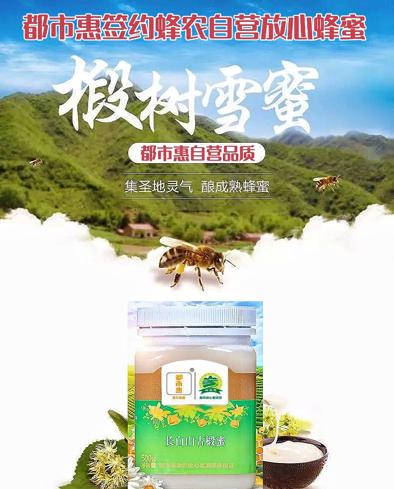 (上图)为正在热销的长白山古椴雪蜜,为都市惠自营的放心蜜,不做工厂浓缩蜜,签约蜂农原浆纯天然保真椴树蜂蜜。