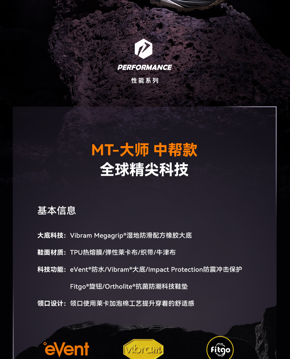 【MT-大师】伯希和中帮登山鞋男女eVent防水Vibram户外防滑徒步鞋
