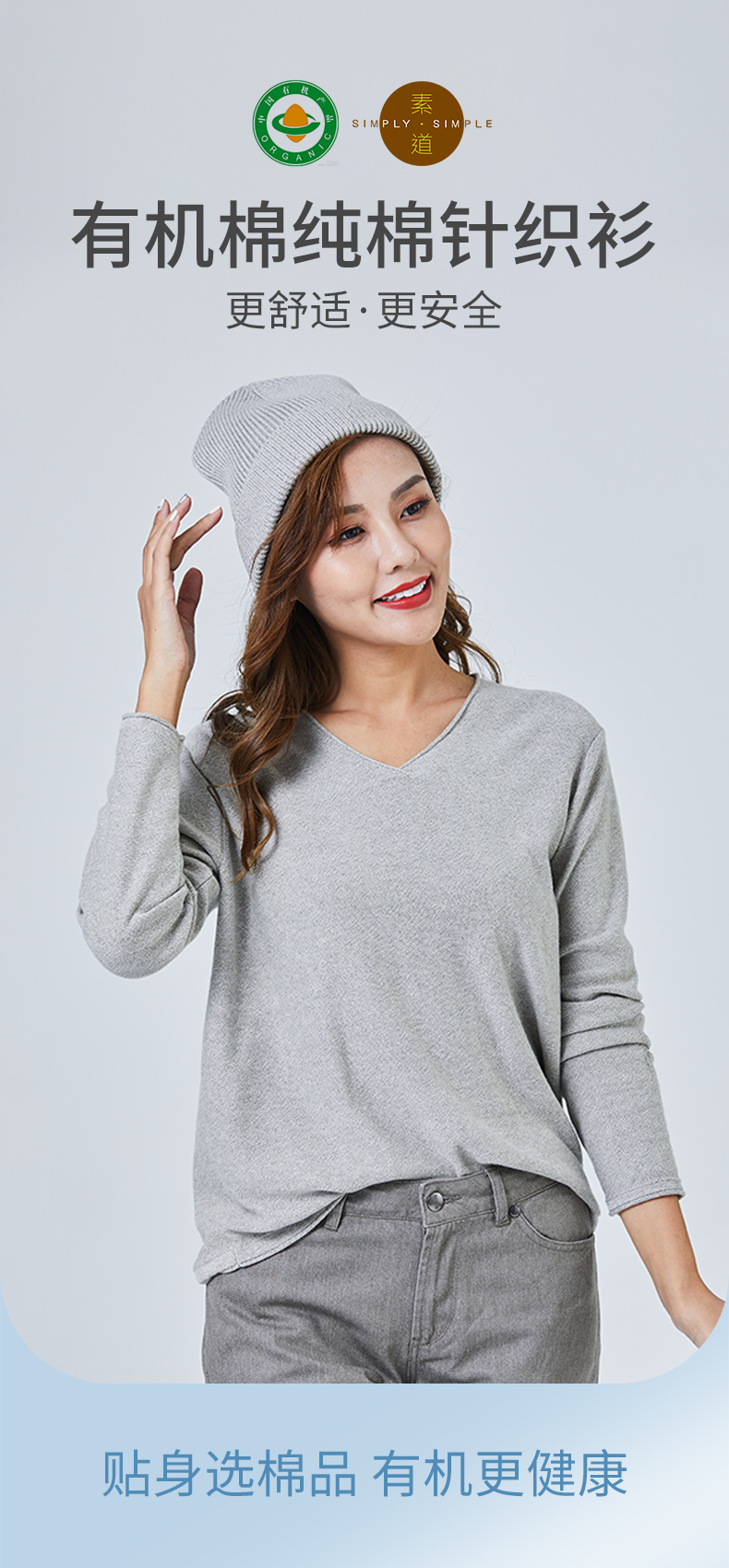 丨有机丨素道彩棉纯棉针织衫 休闲针织圆领衫 长袖打底衫 保暖背心衫 V领衫