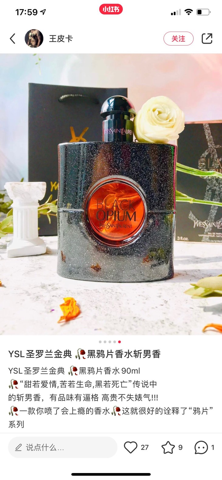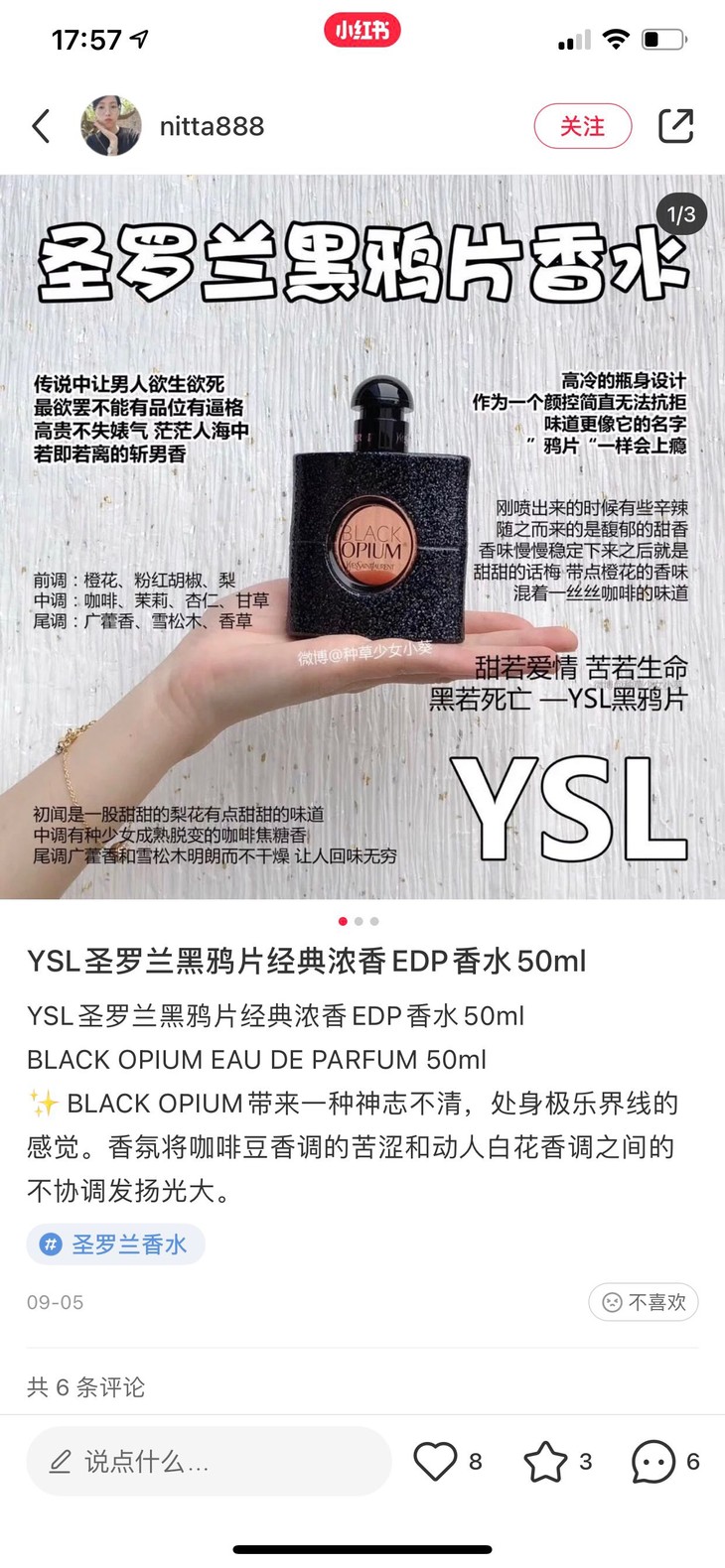 黑鸦片算是圣罗兰最经典香水,EDP也是多款黑鸦片香水中最受欢迎的!
