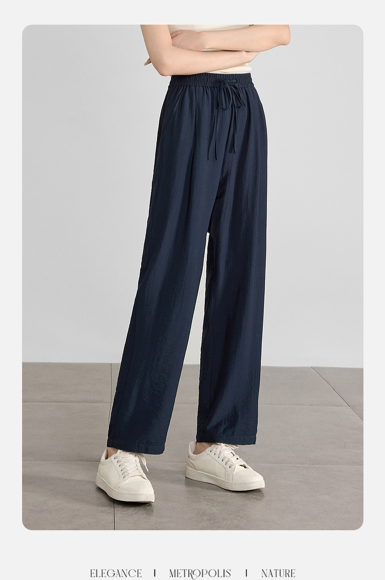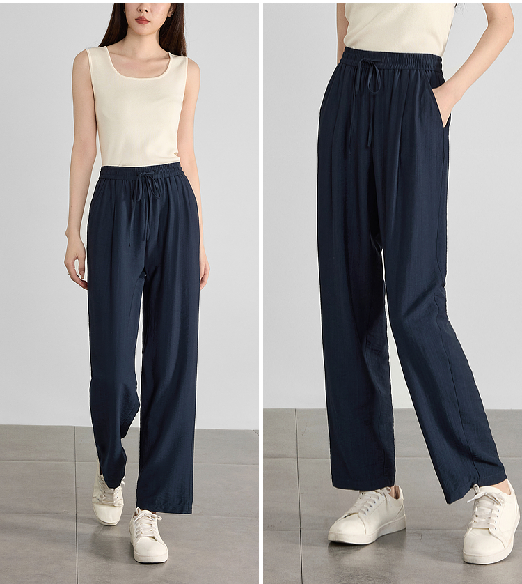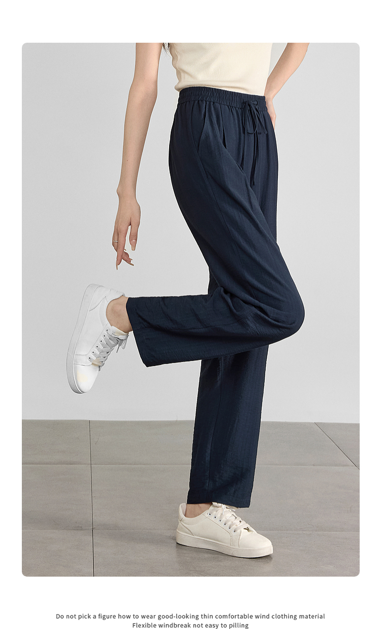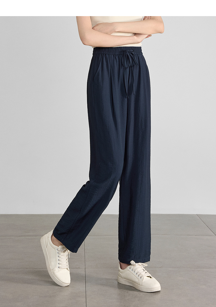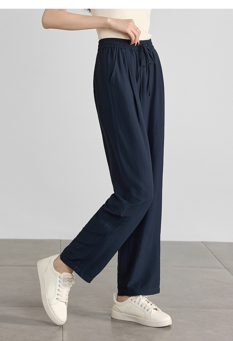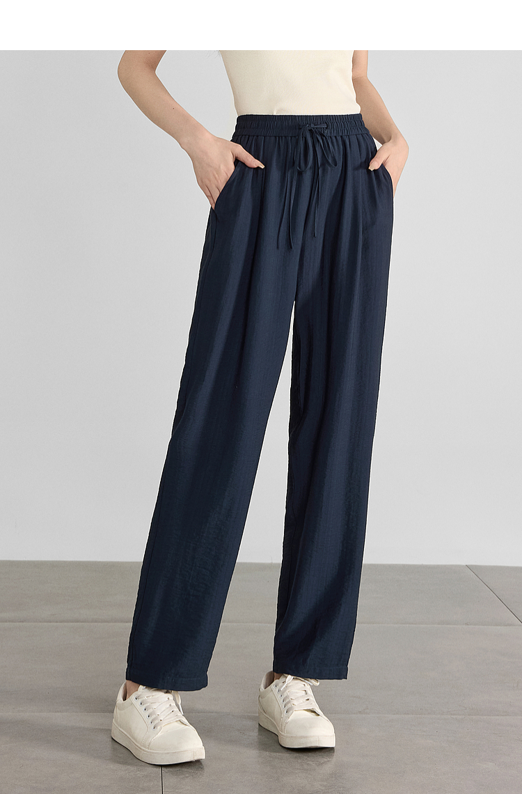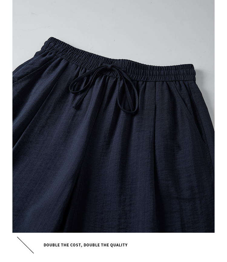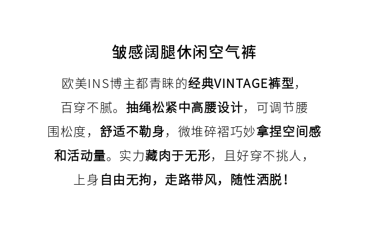 【专属特价】熙世界皱感松紧腰阔腿山本裤薄款夏季新款宽松九分休闲直筒裤子