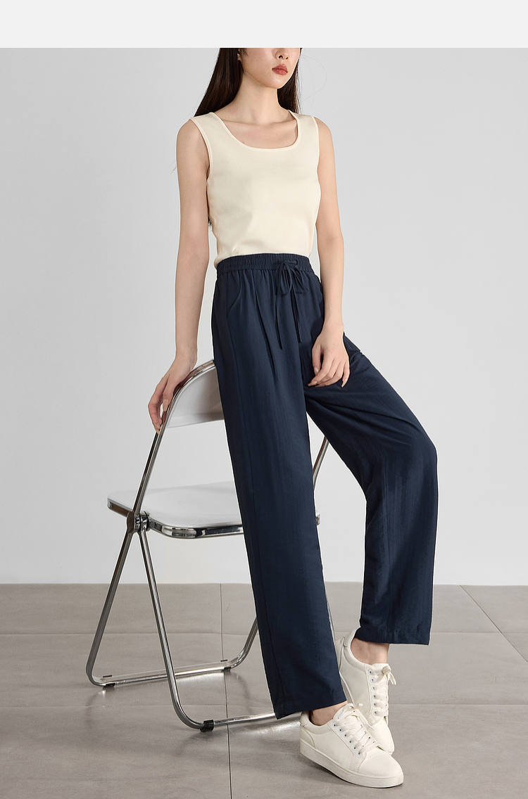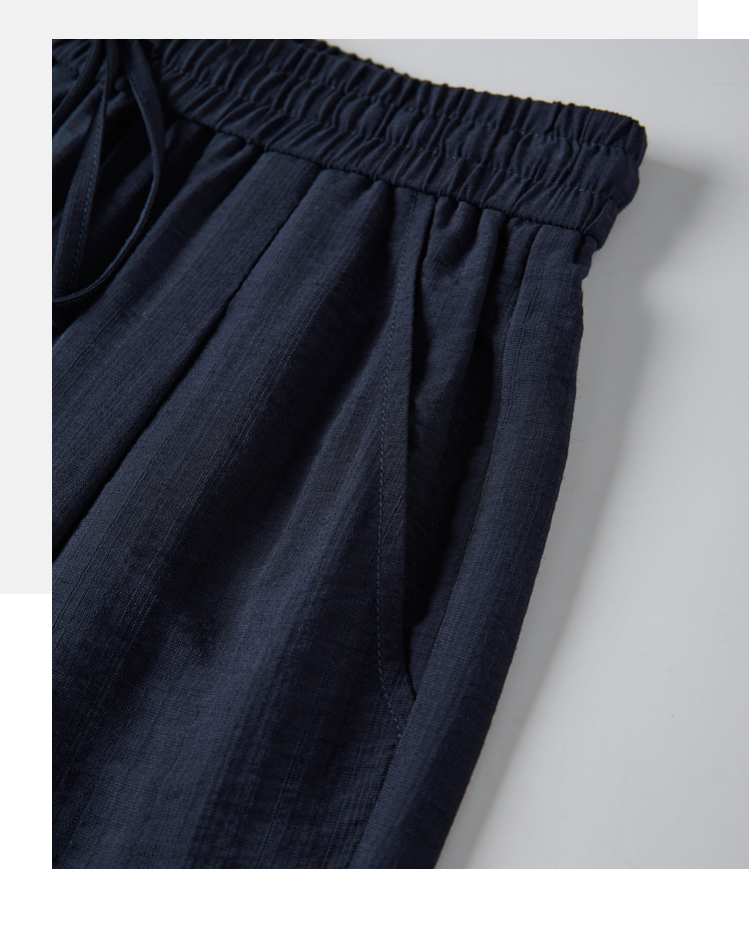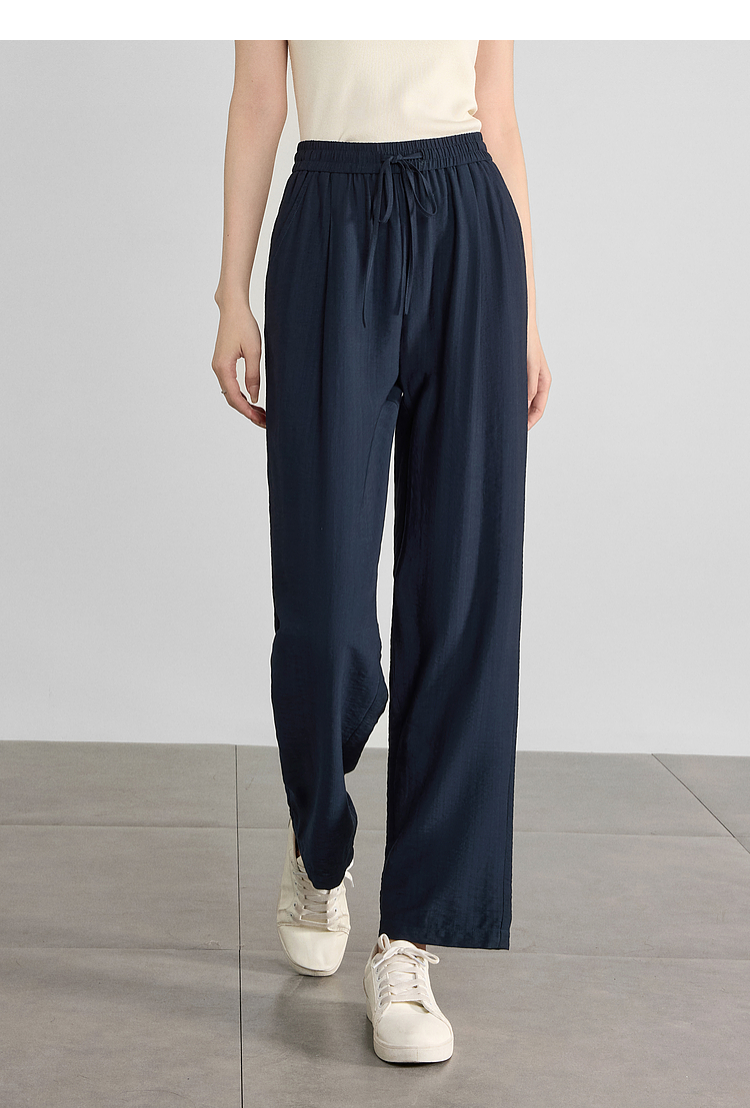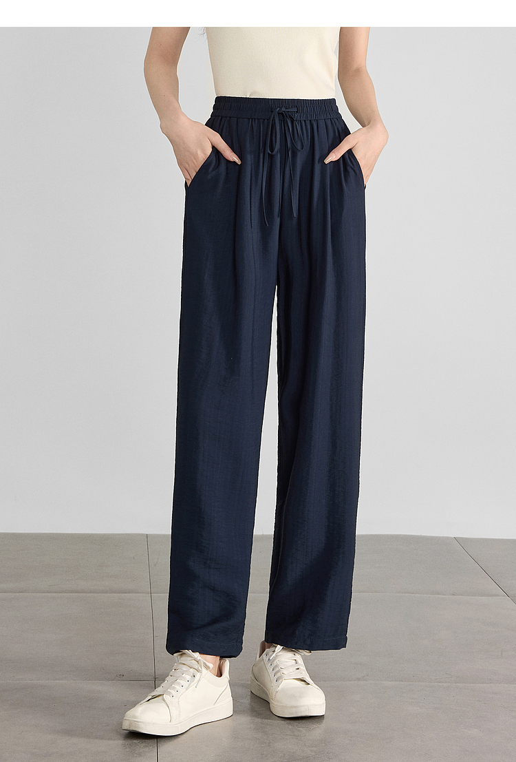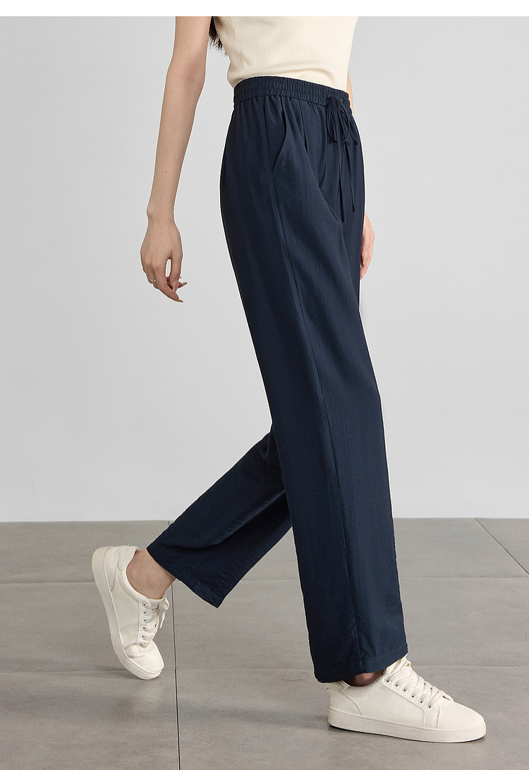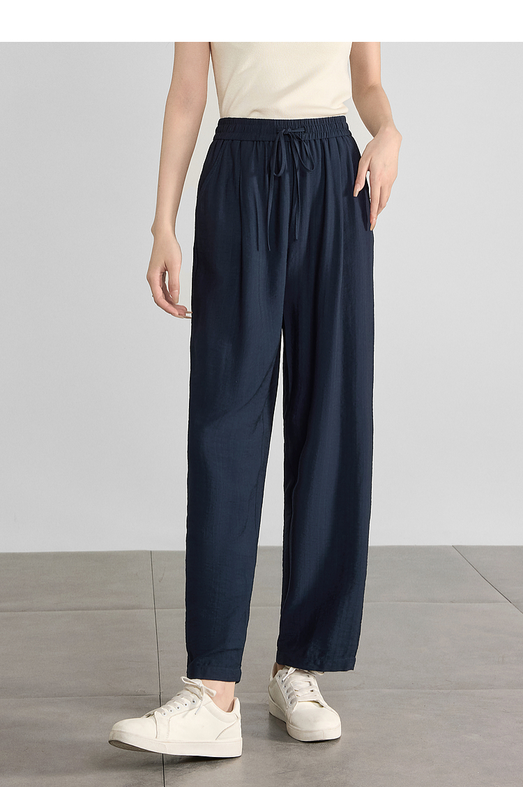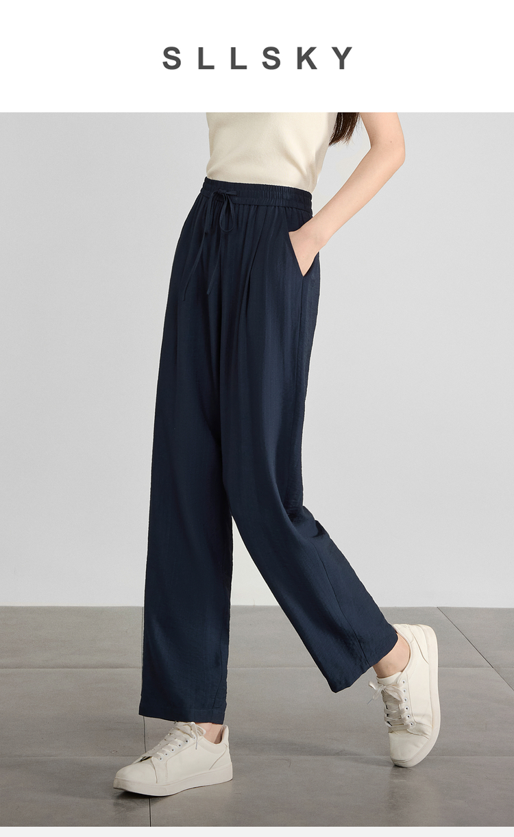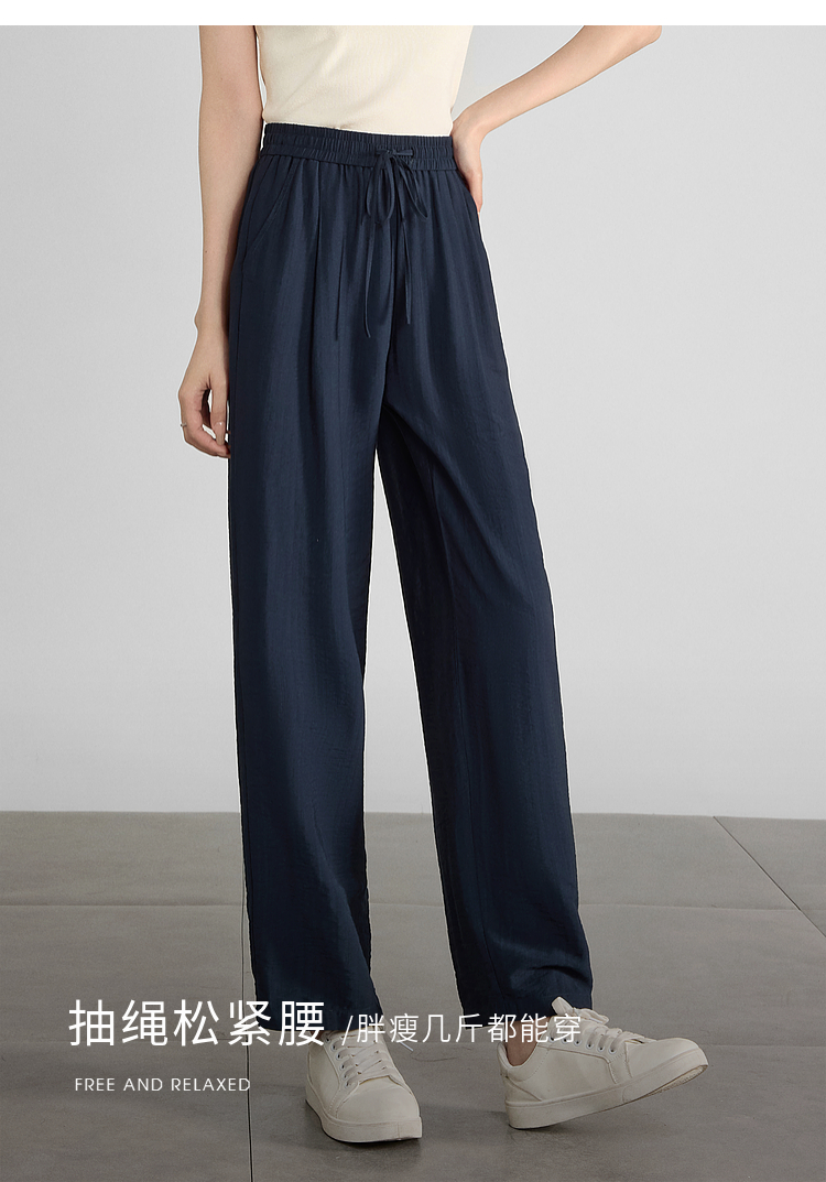 【专属特价】熙世界皱感松紧腰阔腿山本裤薄款夏季新款宽松九分休闲直筒裤子